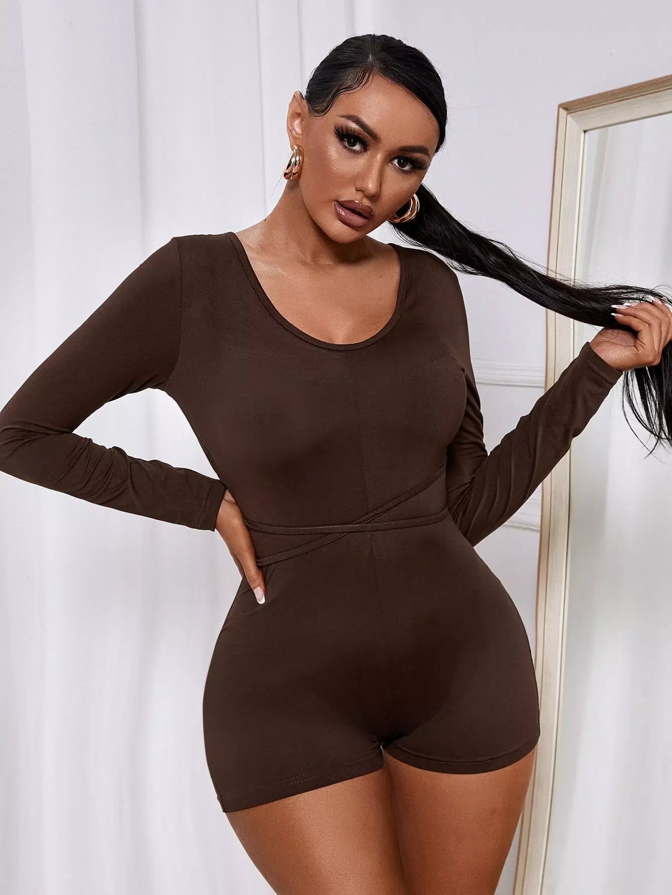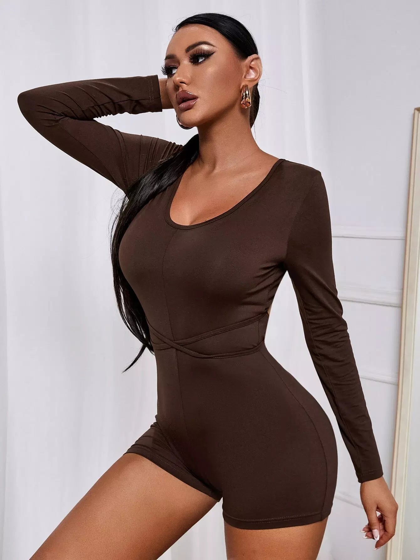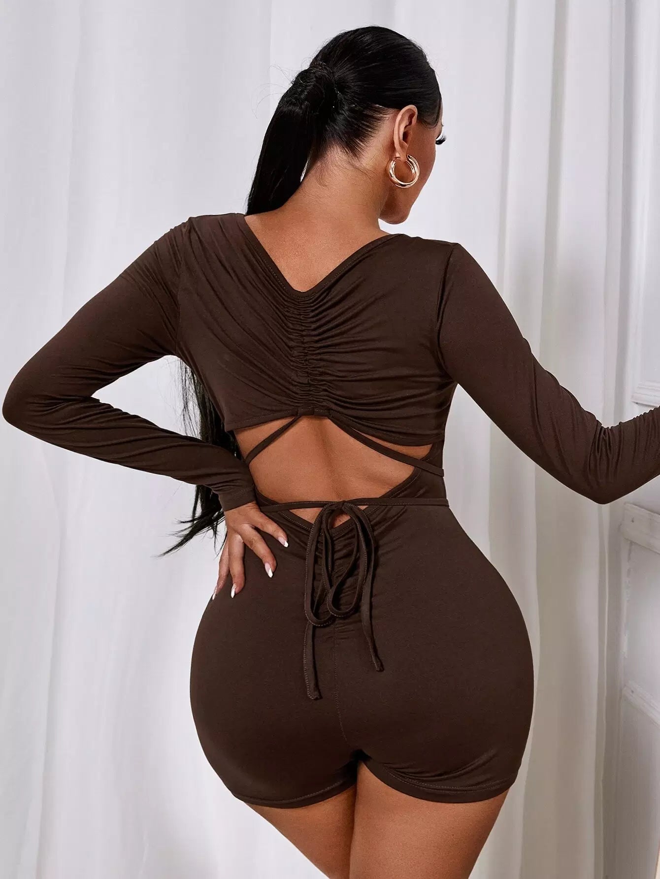 Crisscross Tie Back Cut Out Unitard Romper