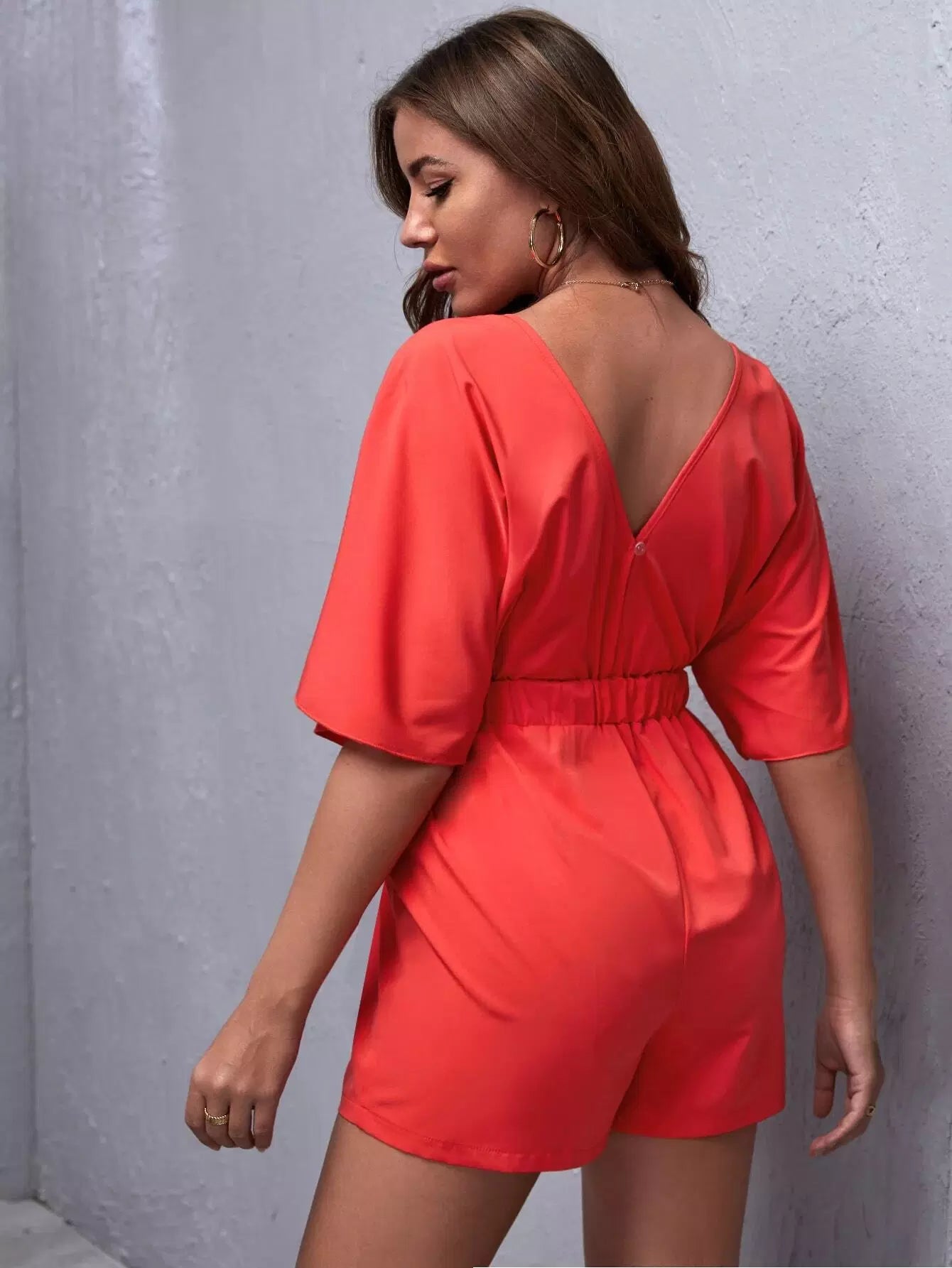 Cut-out Batwing Sleeve Fold Pleat Romper