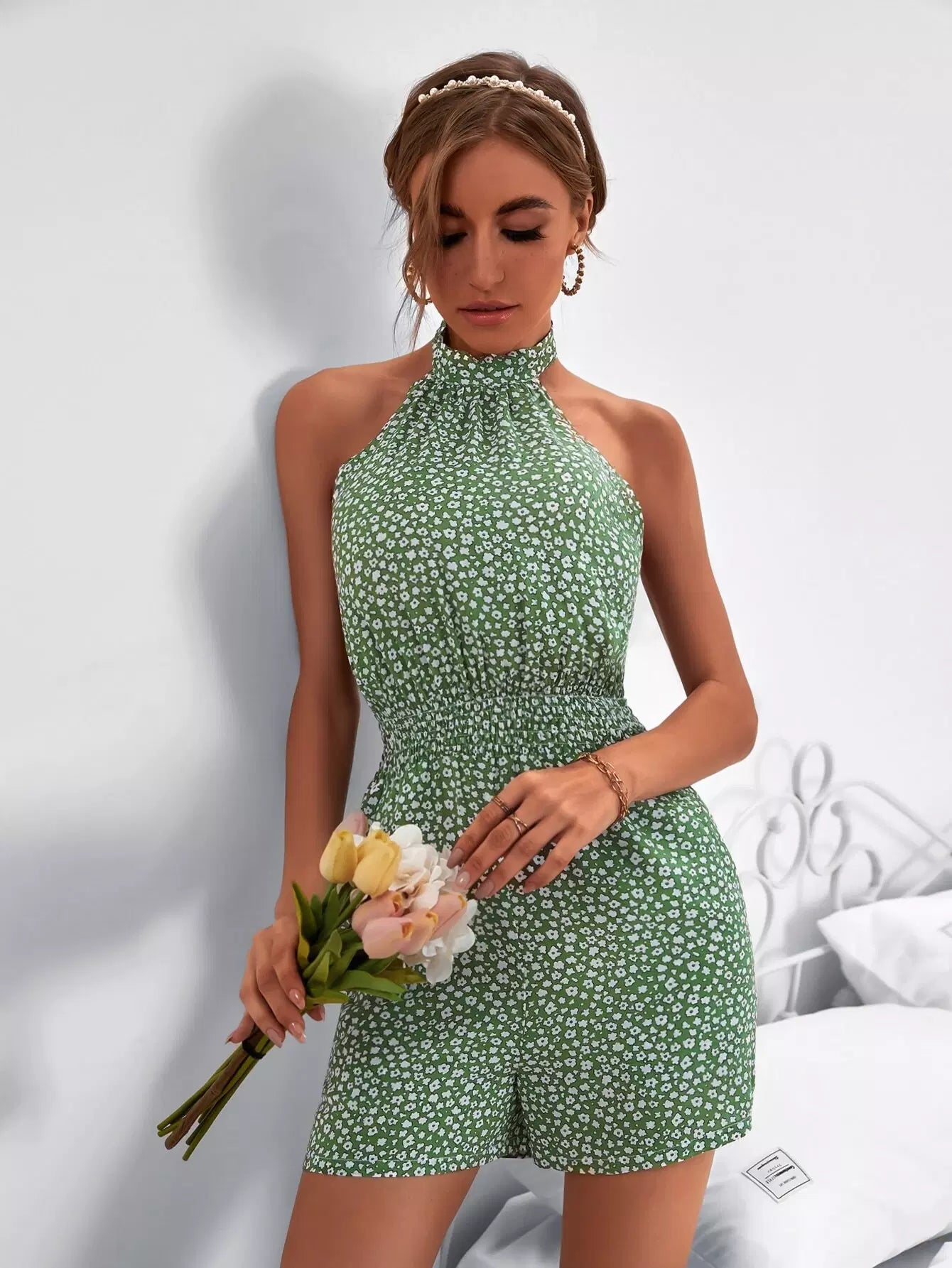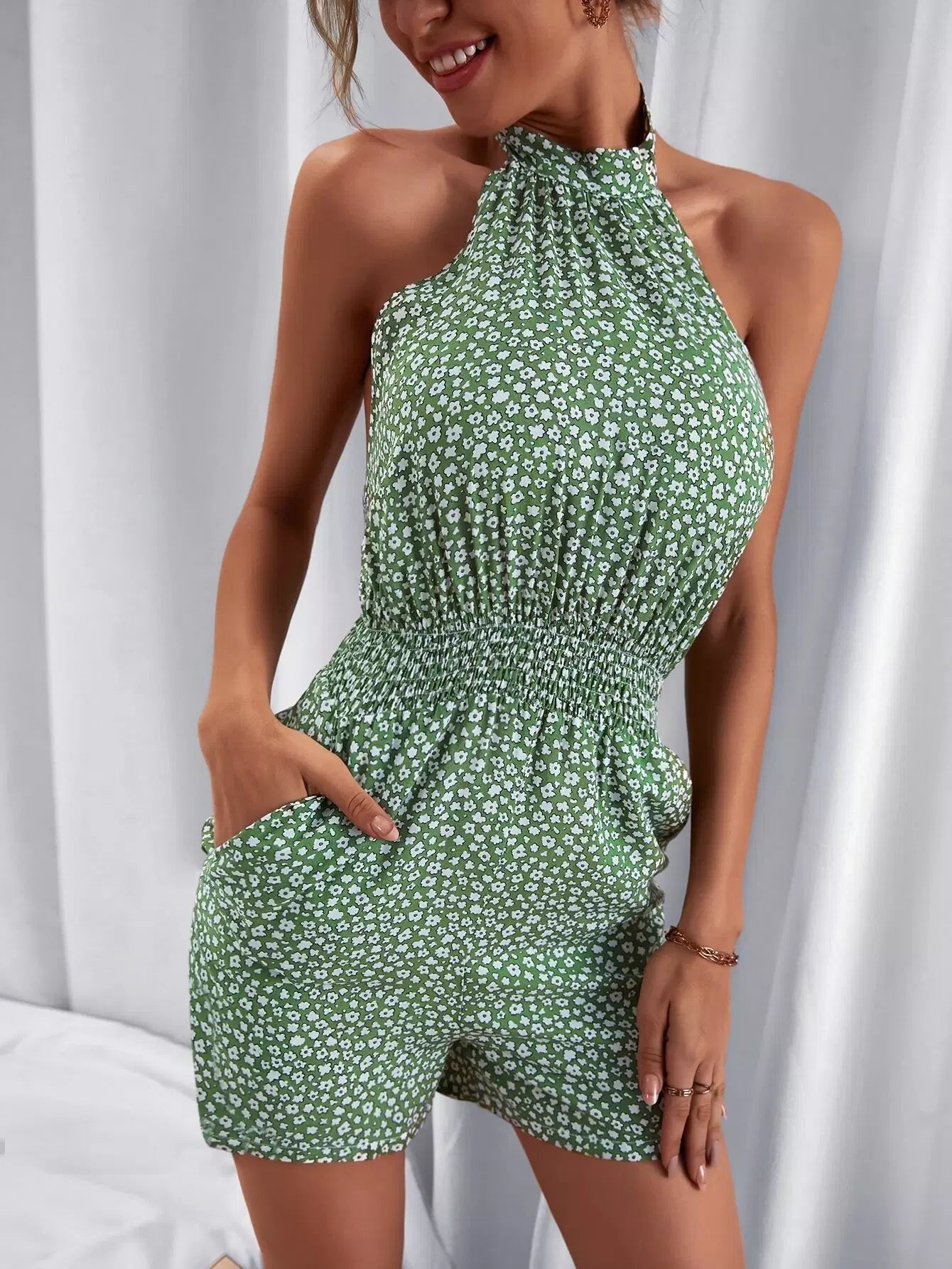 Ditsy Floral Tie Back Halter Romper