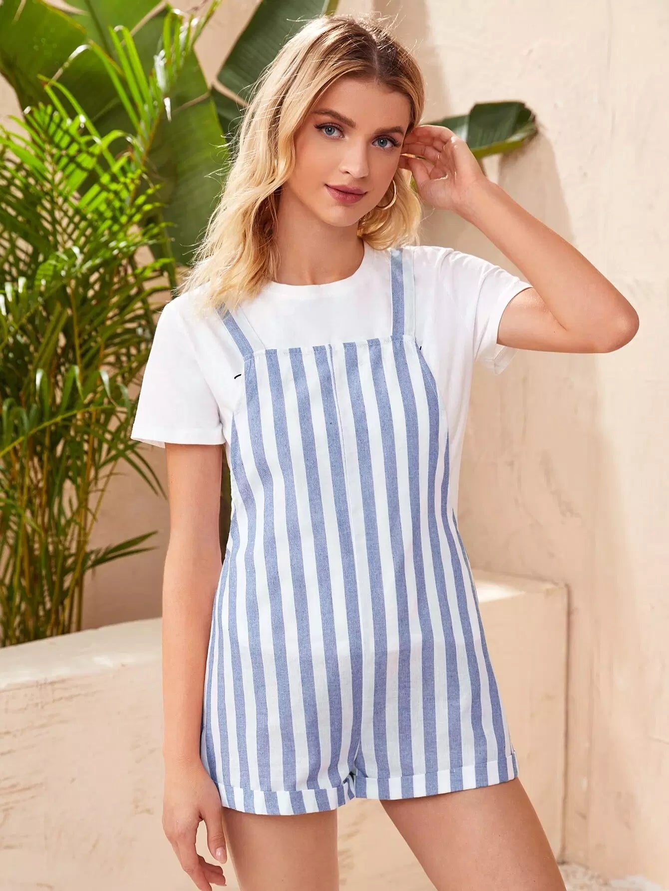 Low Armhole Striped Pinafore Romper