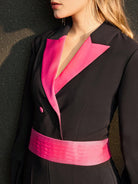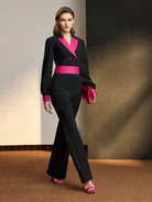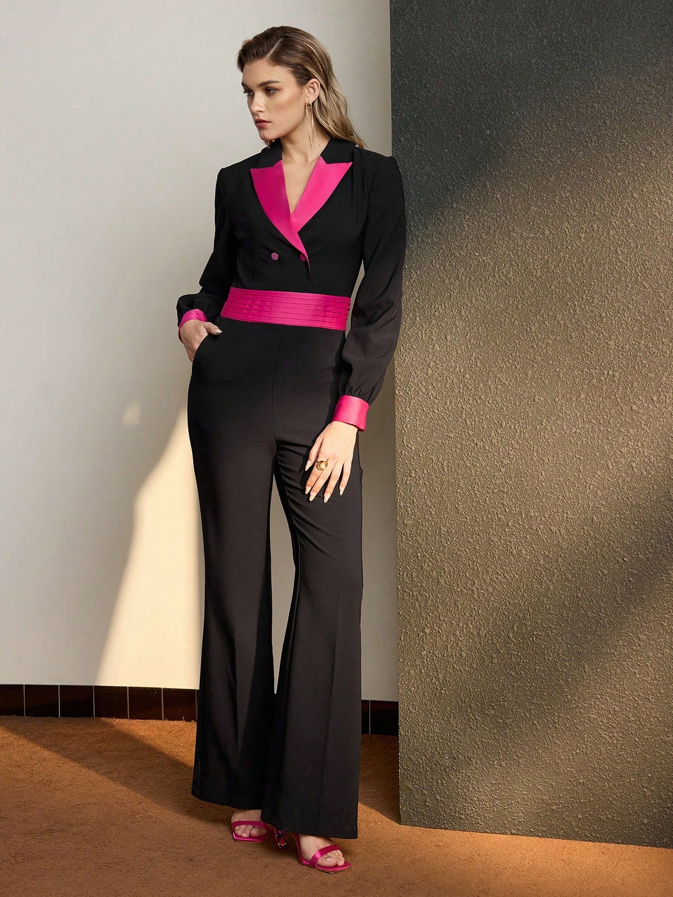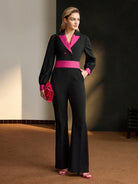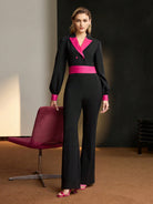 women MOTF Soirï؟½za TWO TONE PEAK COLLAR LANTERN SLEEVE RUCHED WAIST JUMPSUIT