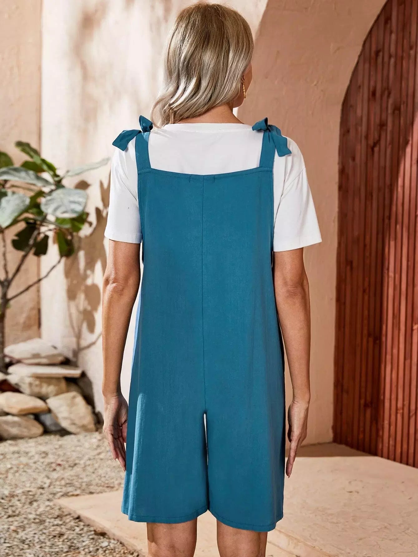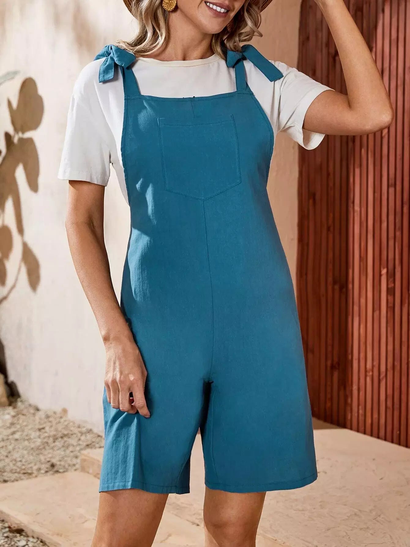 Pocket Front Tie Shoulder Overall Romper