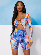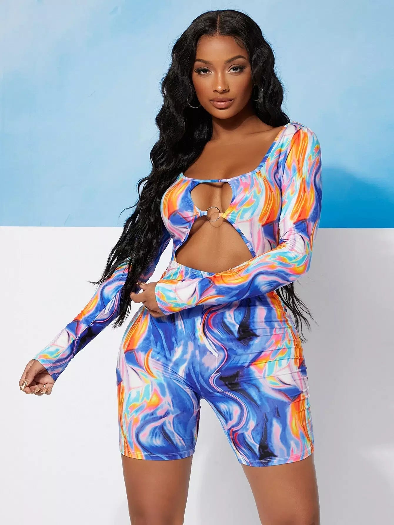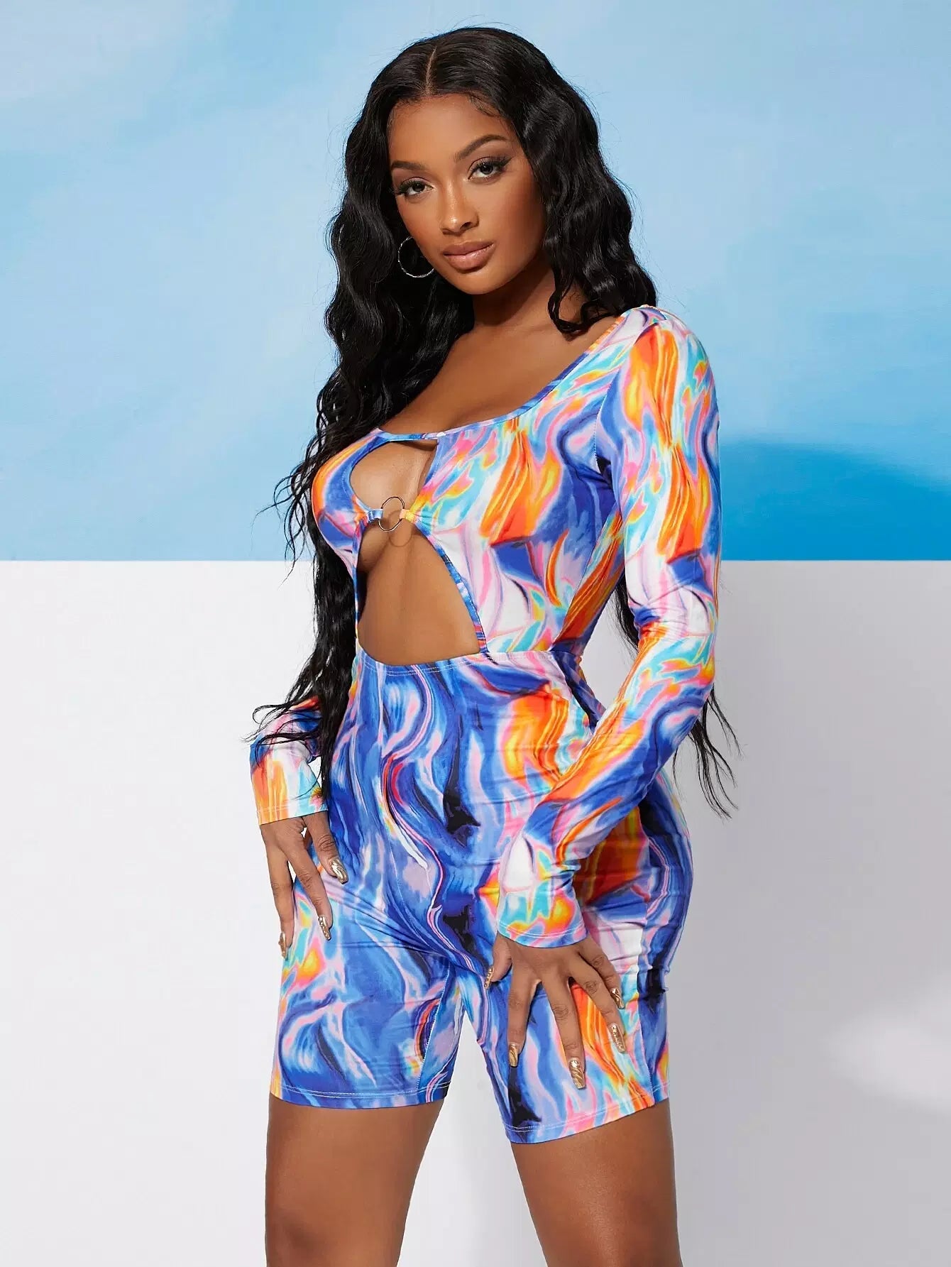 Scoop Neck Graphic Print Cut Out Bodycon Romper