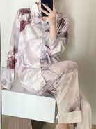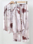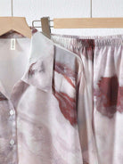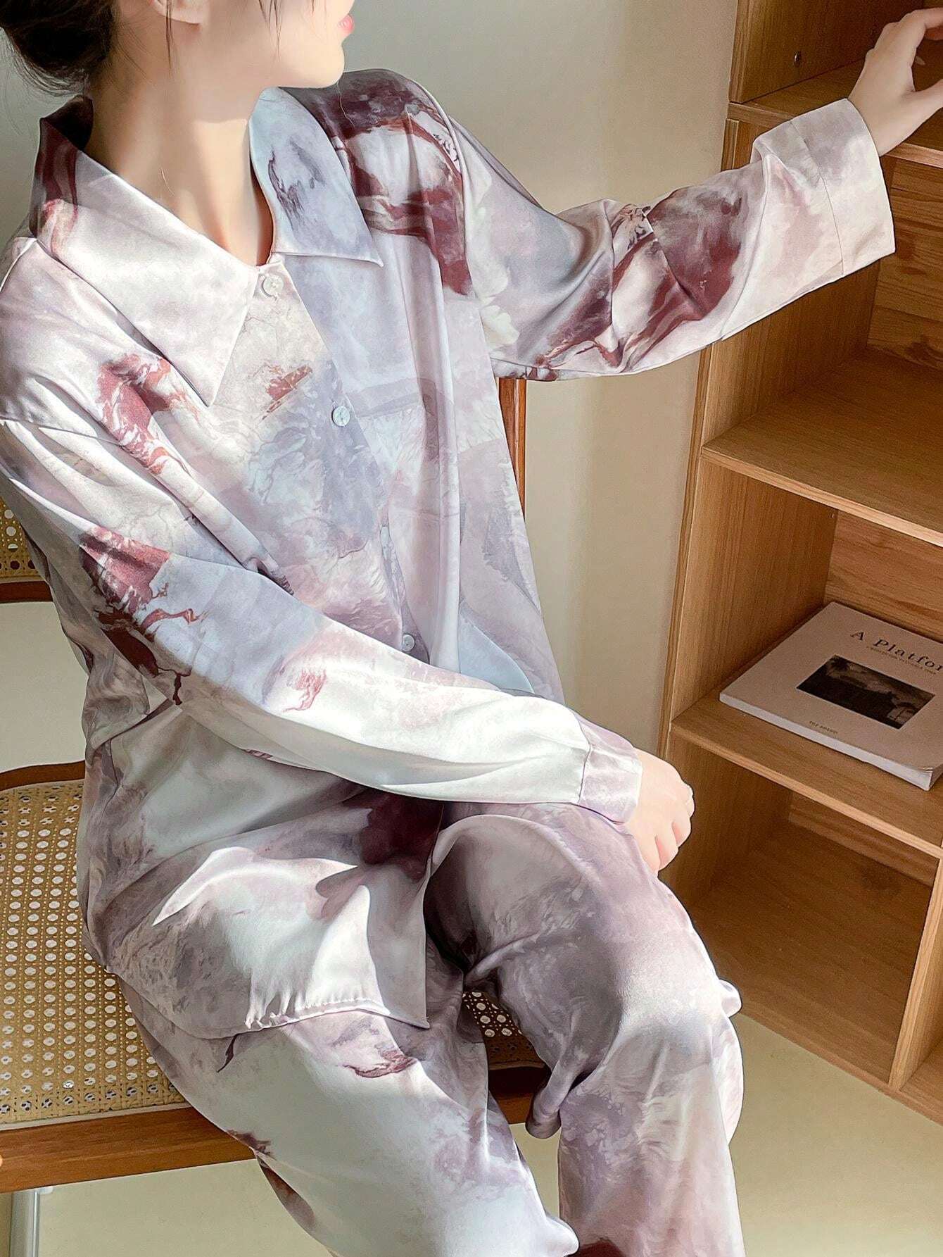 women 2pcs/Set Women's Long Sleeve Turn-Down Collar Pajamas Set With Sunset Pattern