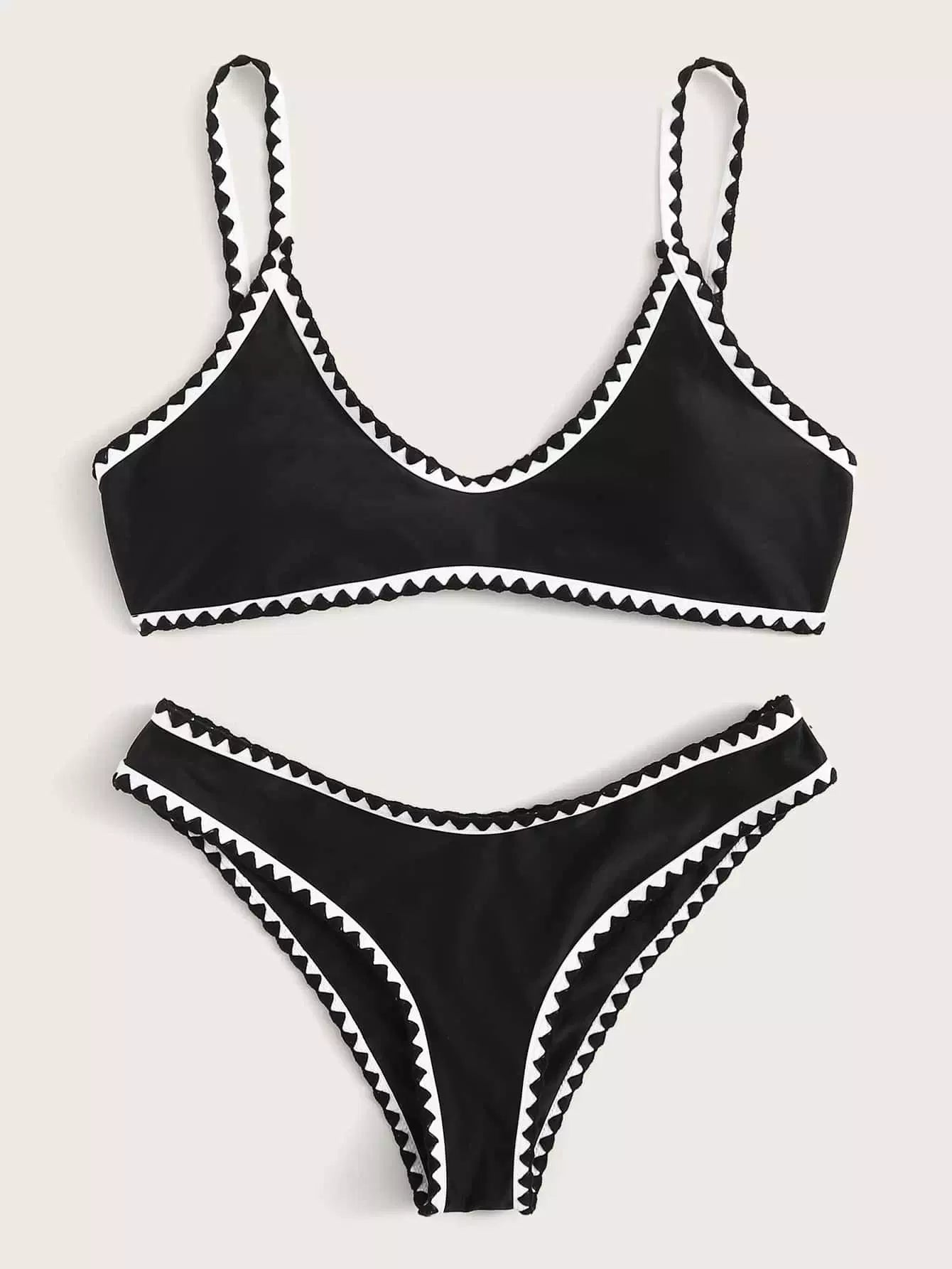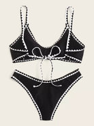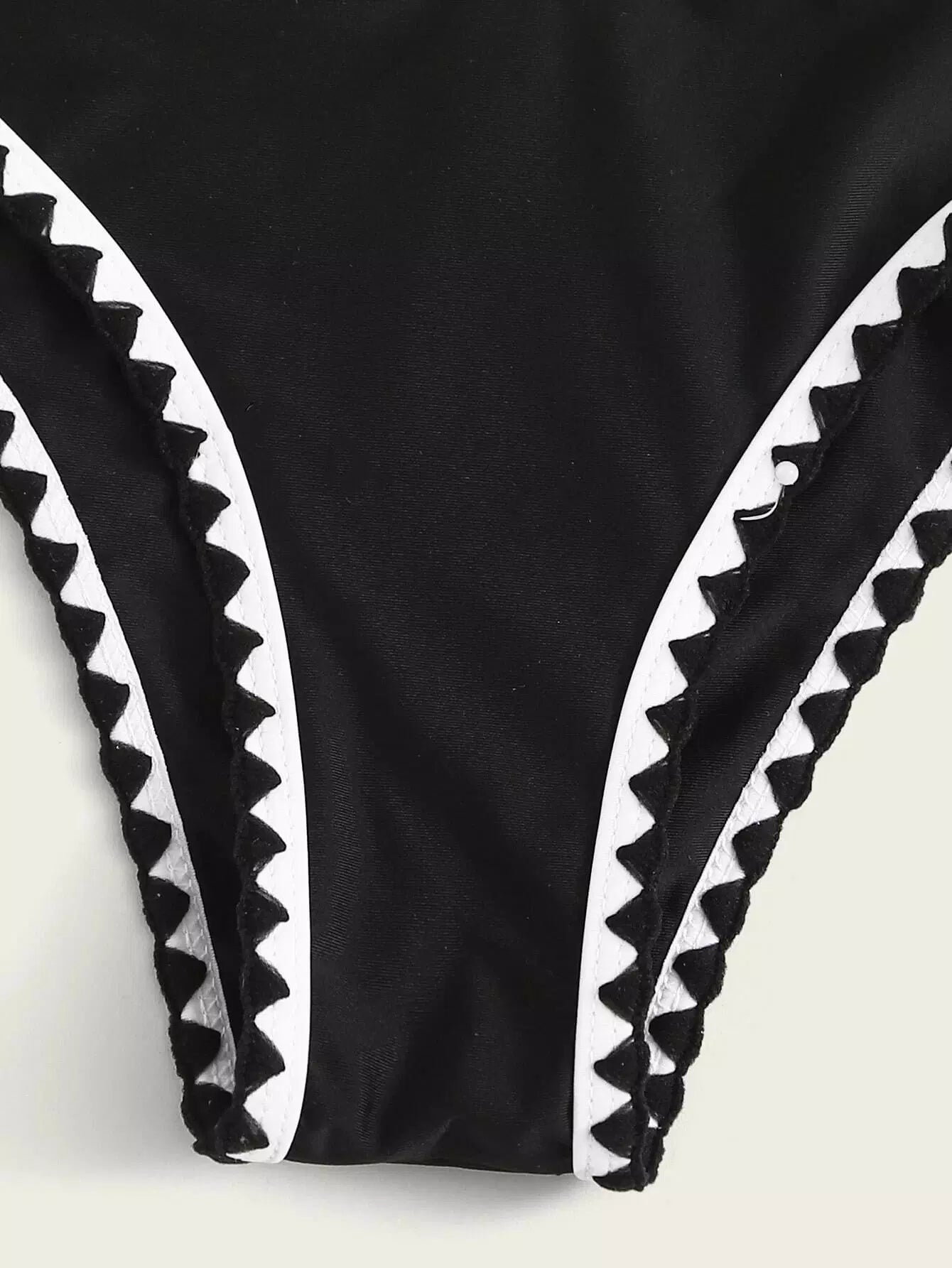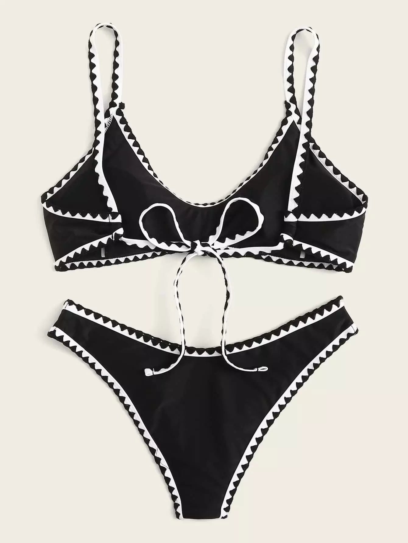 Women - Contrast Binding Tie Back High Cut Bikini Swimsuit