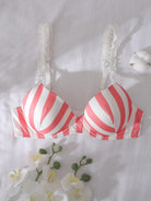 Dream Adore Striped Patchwork Molded Cup Underwire Lace Trim Refreshing Cute Women Bra
