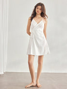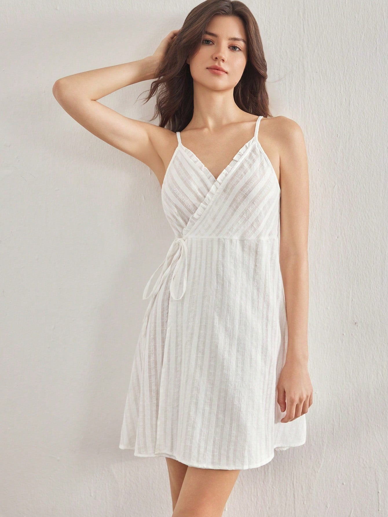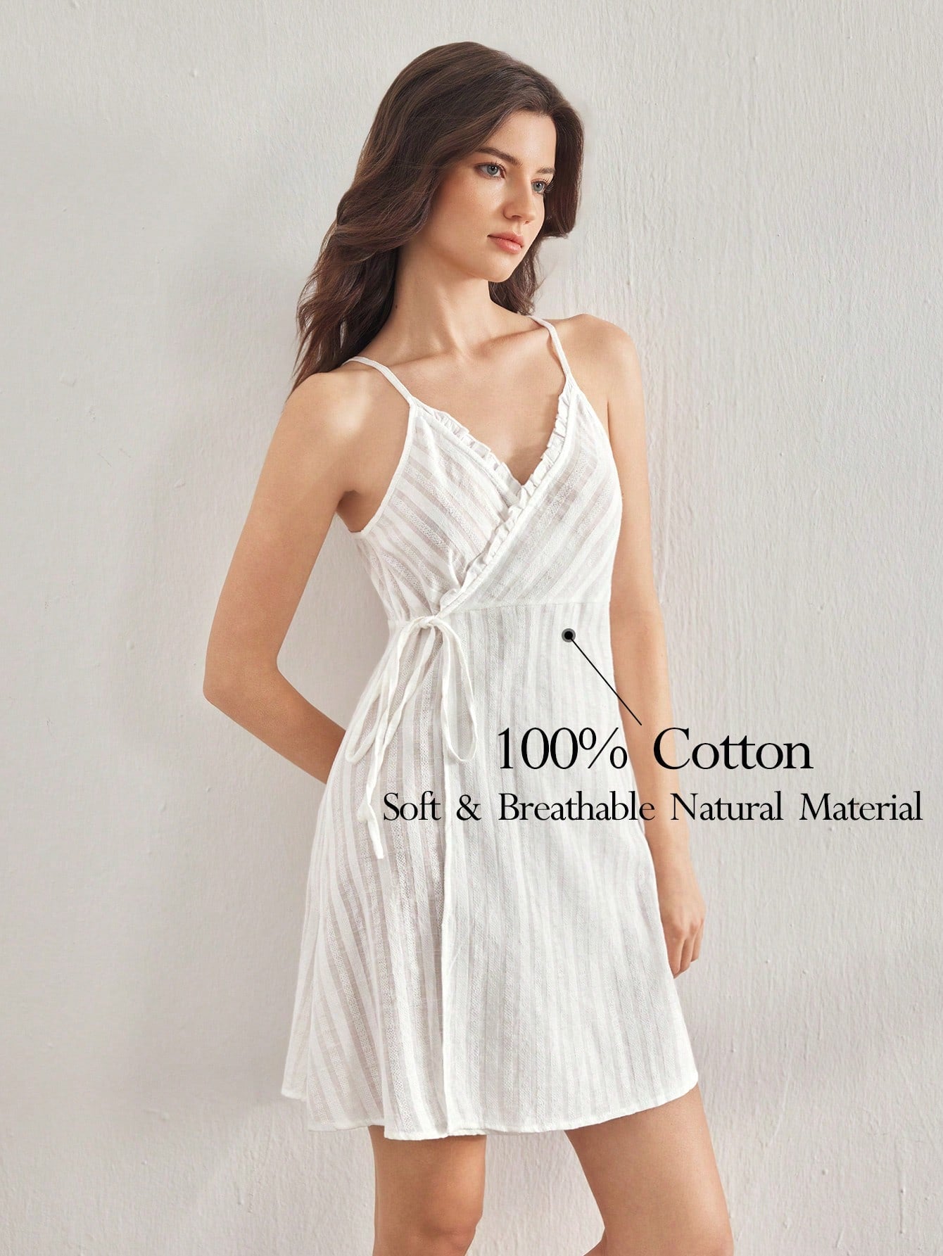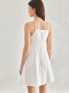 Ocili Leisure 100% Cotton Comfortable Striped Textured Camisole Mini Slip Dress With Side Tie For Women
