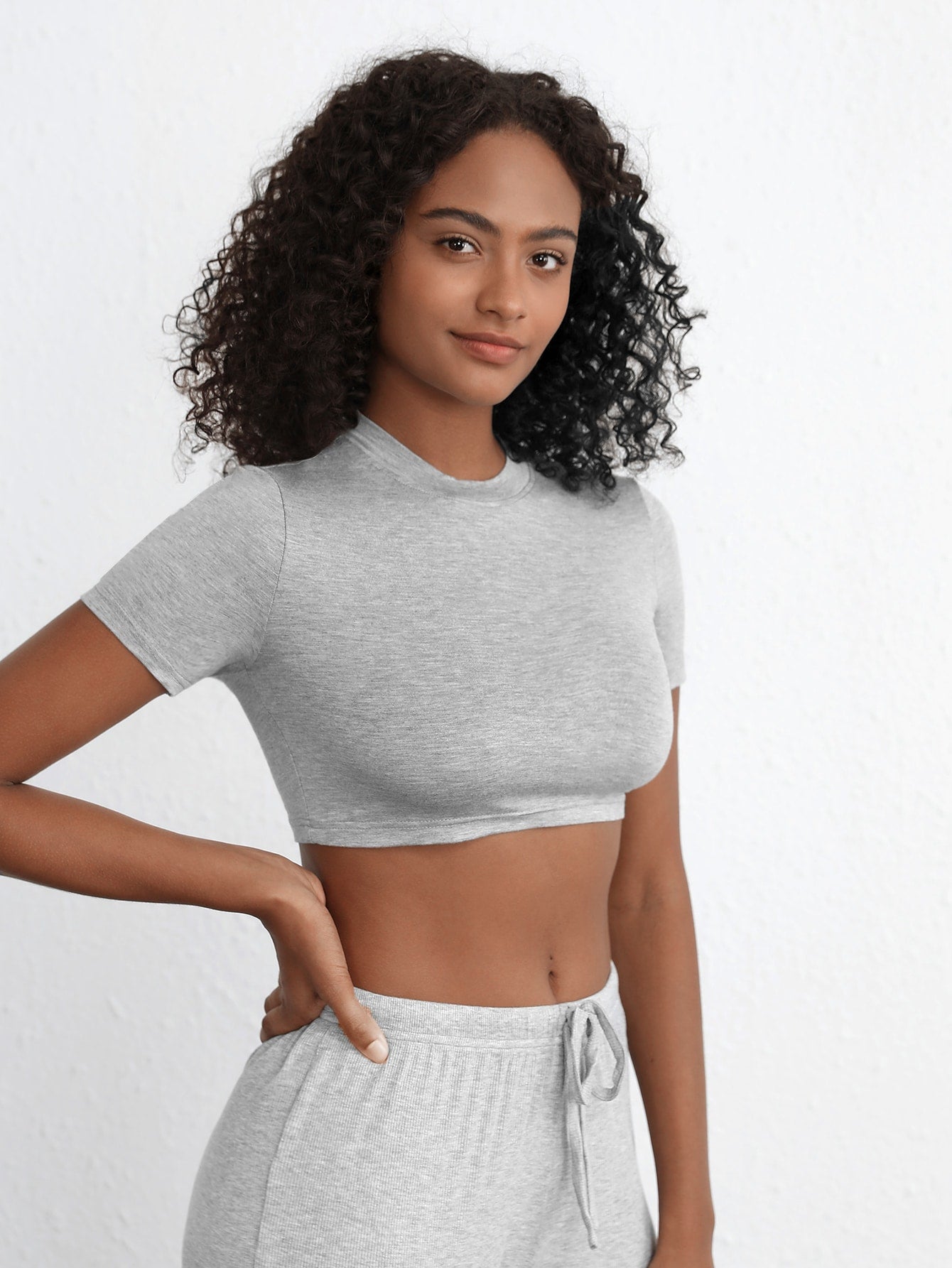 Ocili Leisure Smooth & Comfy Black Crew Neck T-Shirt Top - Melange Gray