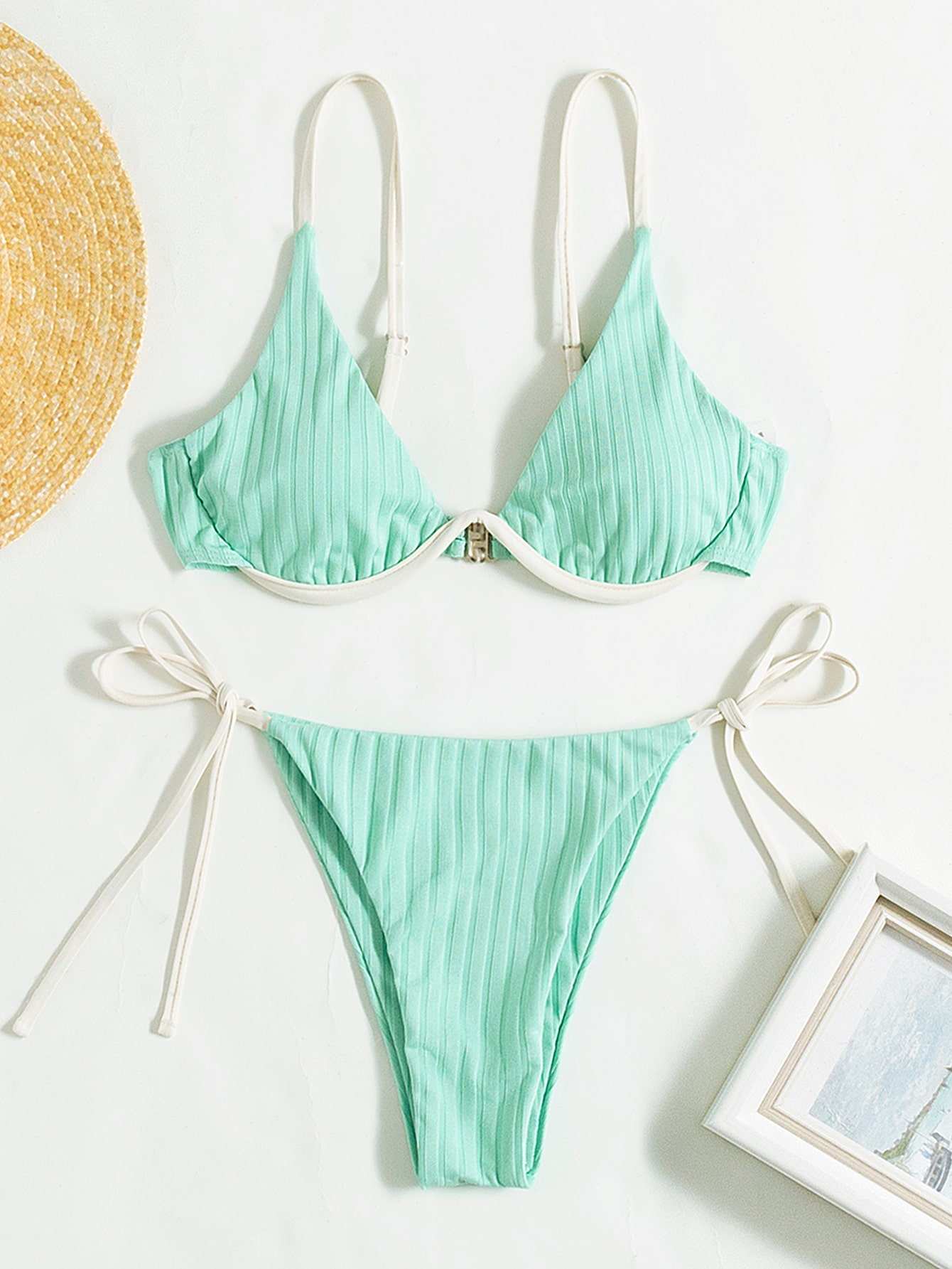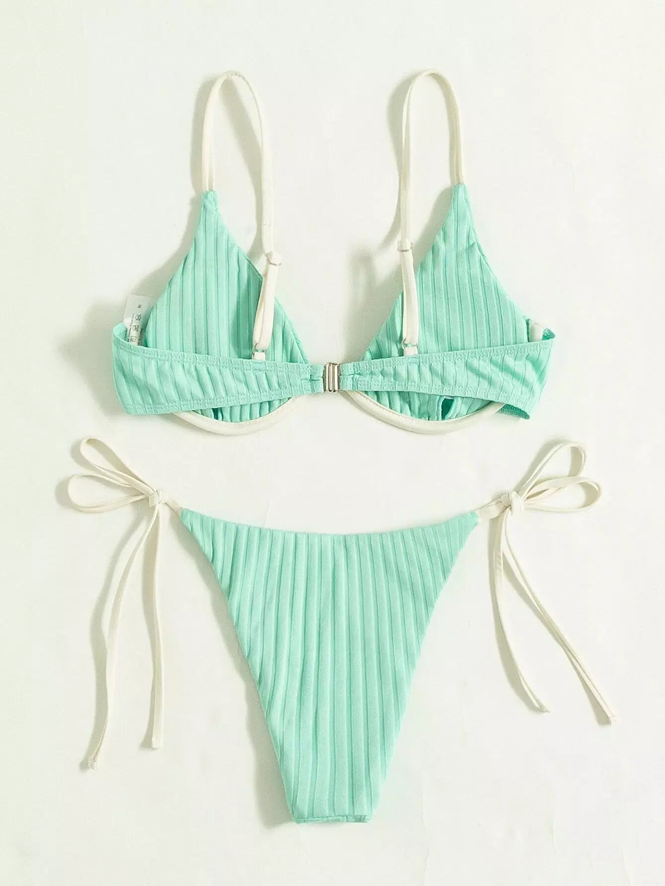 Plain Tie Side Push Up Bikini Swimsuit