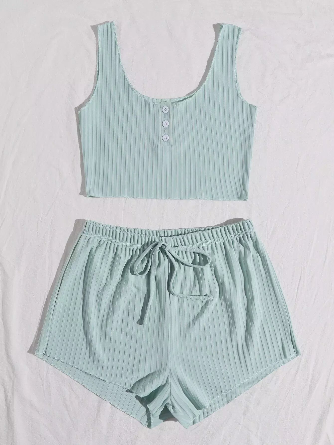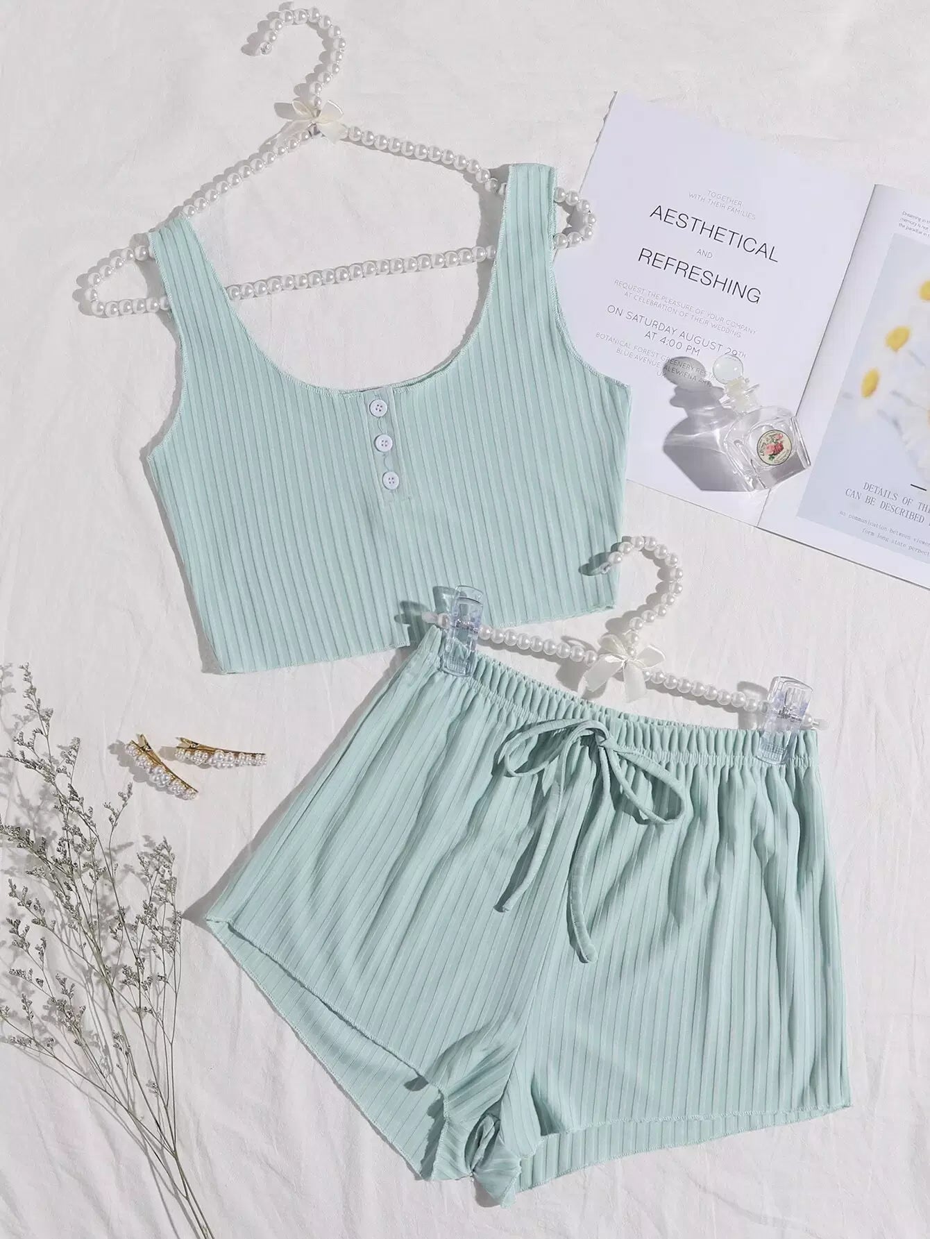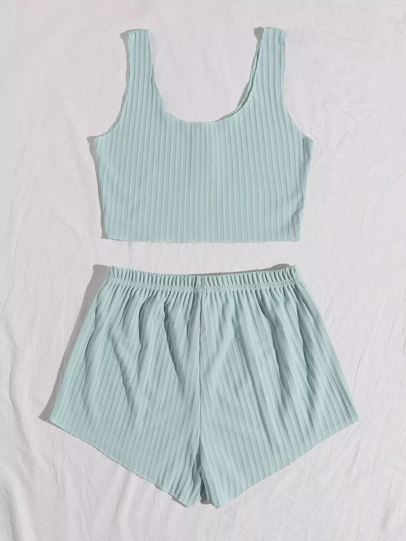 Rib Knit Crop Tank Top & Shorts Lounge Set