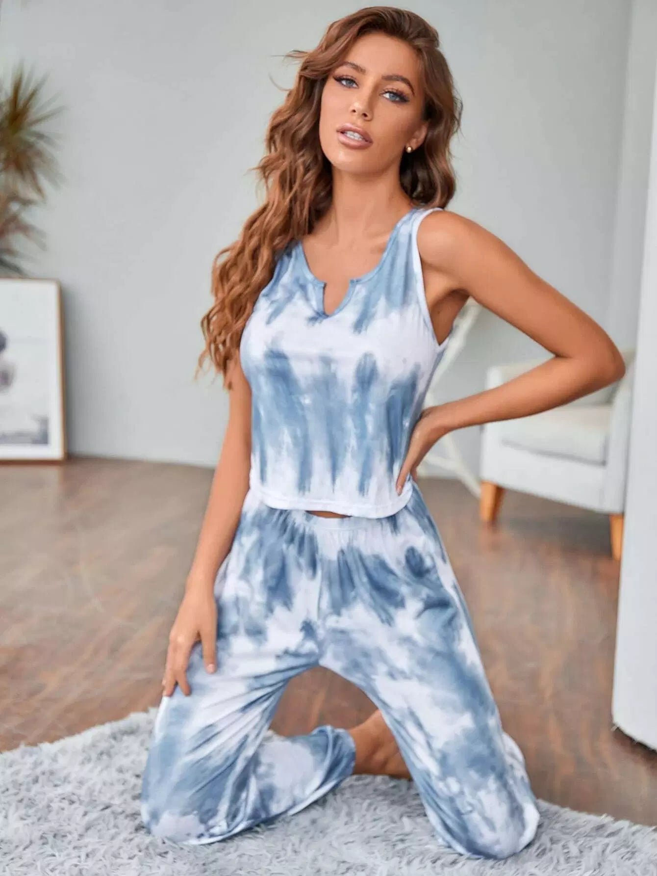 Tie Dye Notch Neck Tank Top & Pants PJ Set