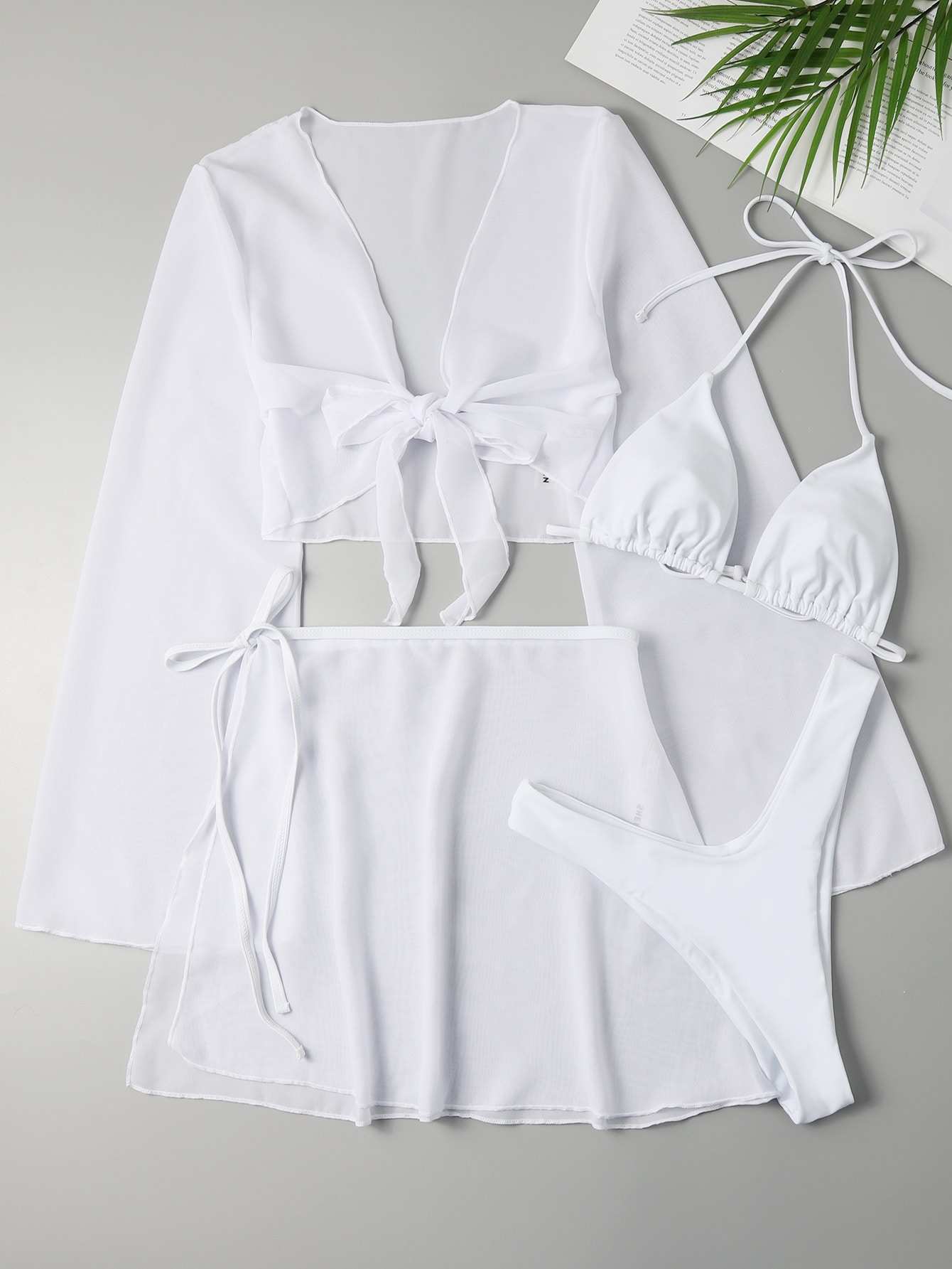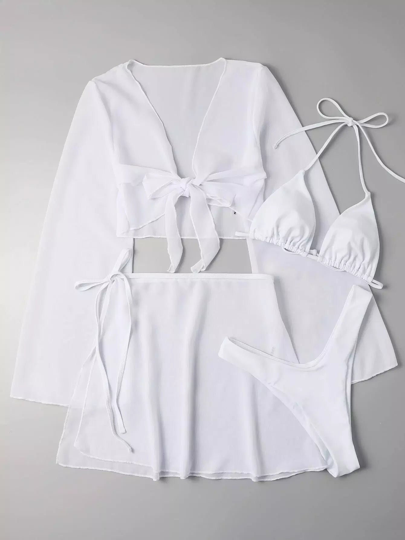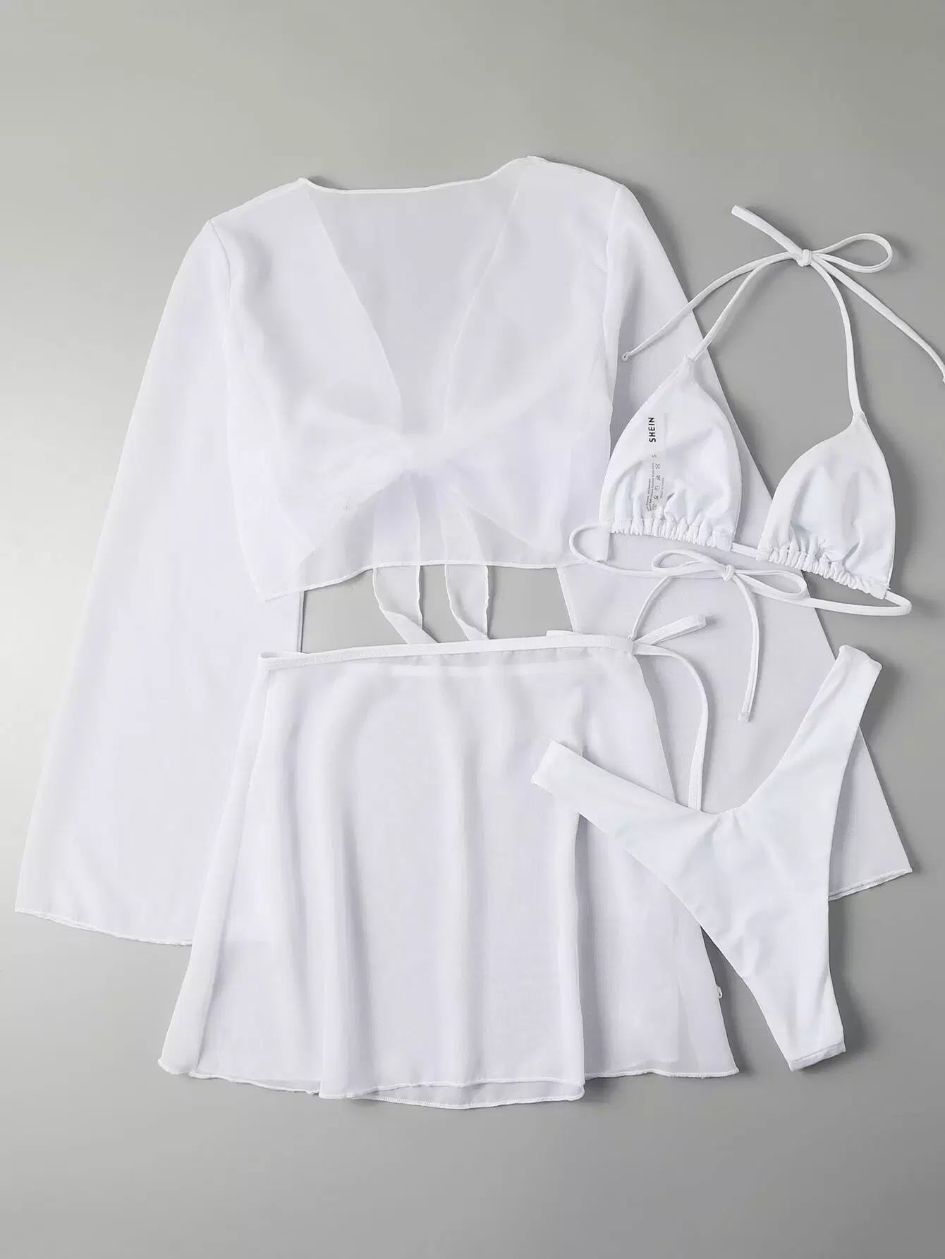 4pack Halter Bikini Swimsuit & Mesh Cover Up