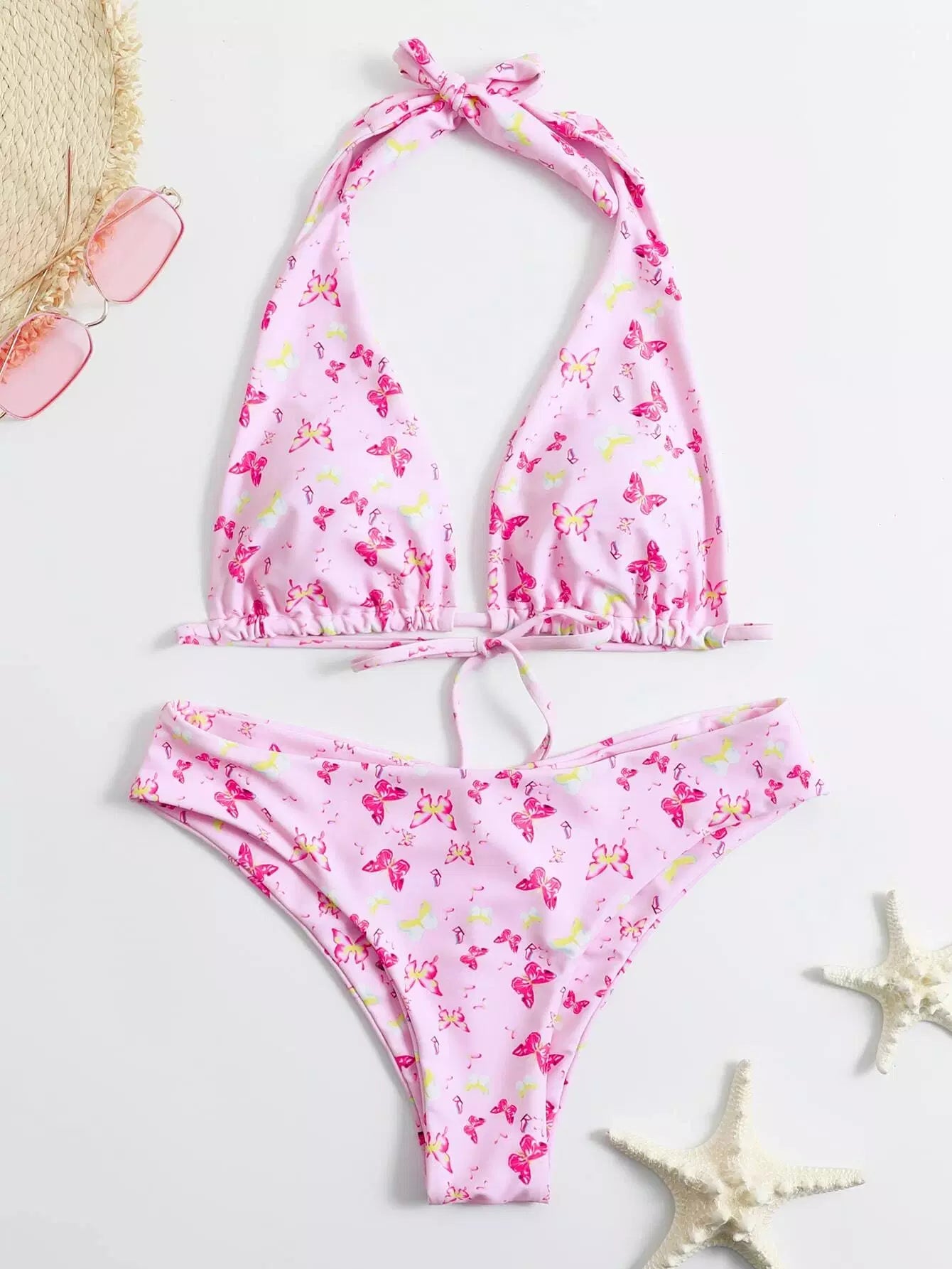 Butterfly Print Halter Bikini Swimsuit