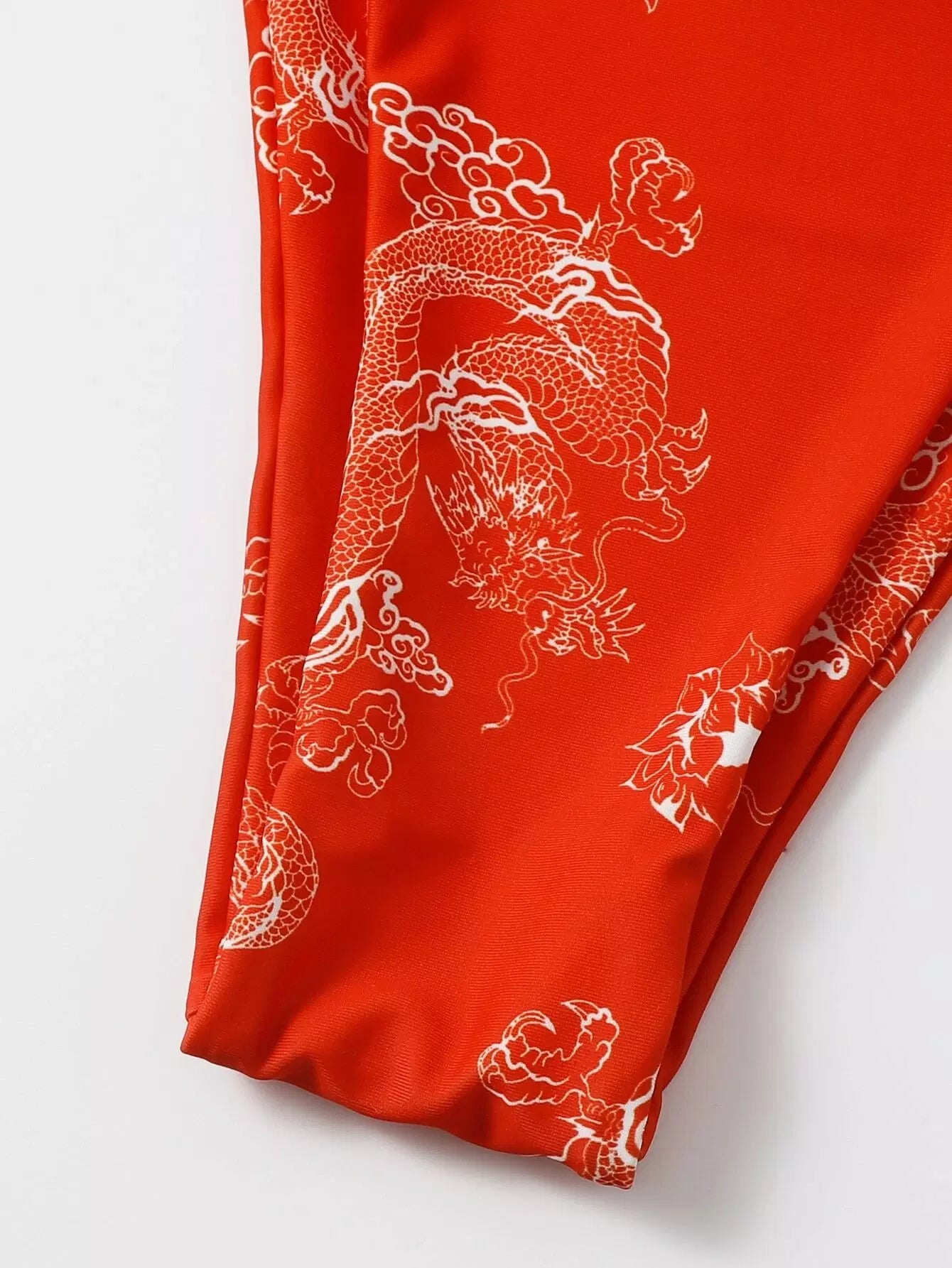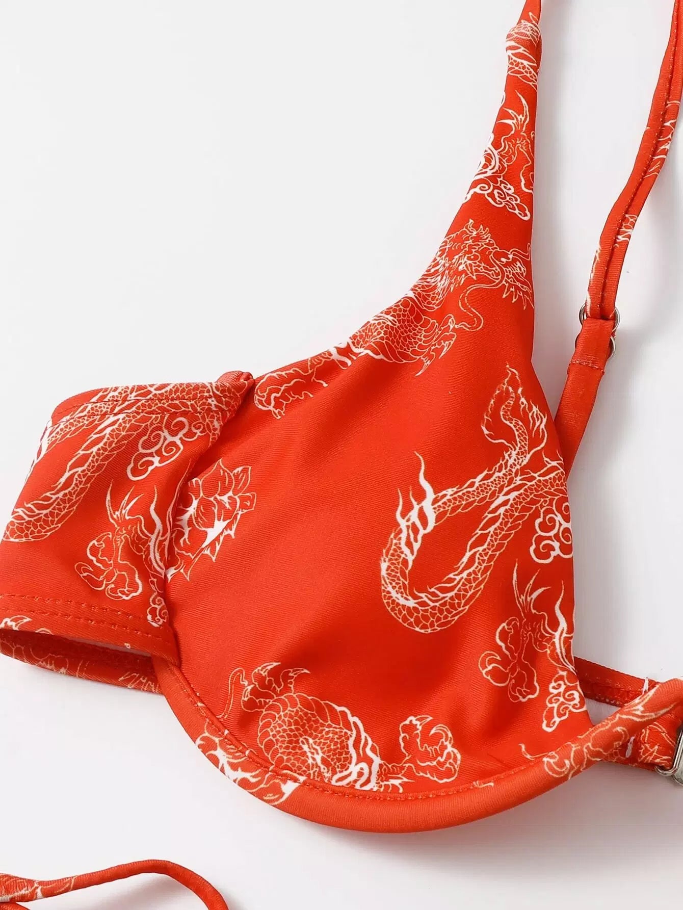 Chinese Dragon Underwire Tie Side Bikini Swimsuit