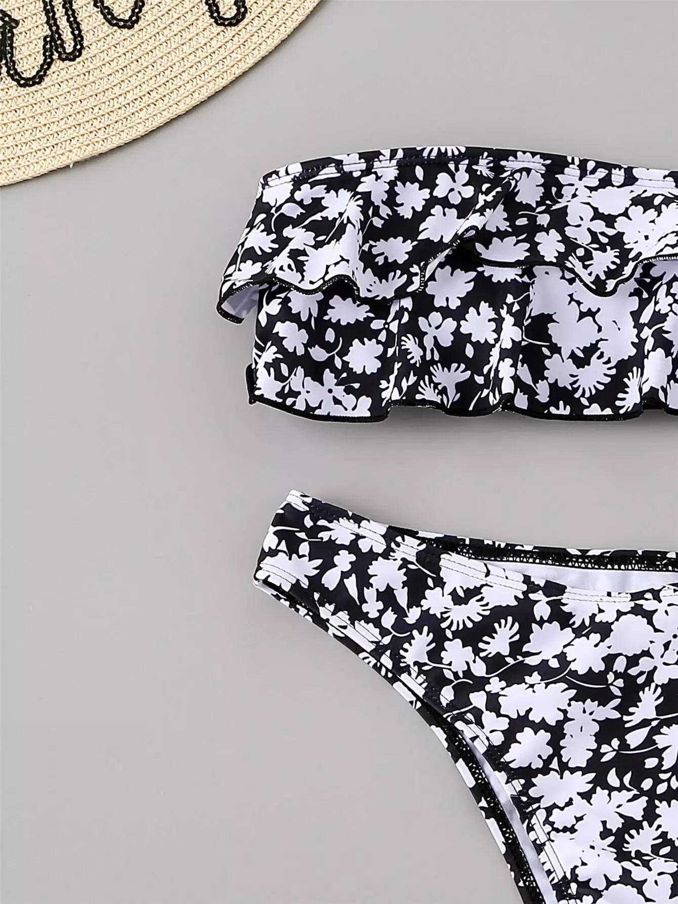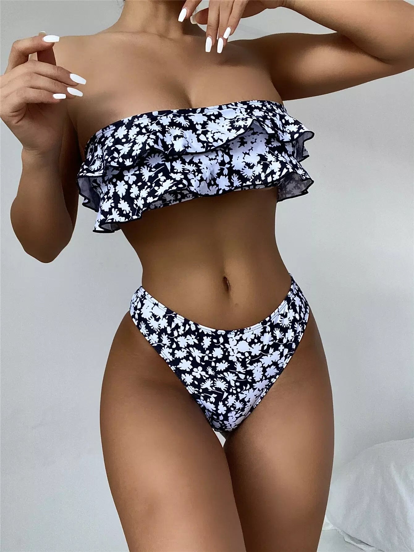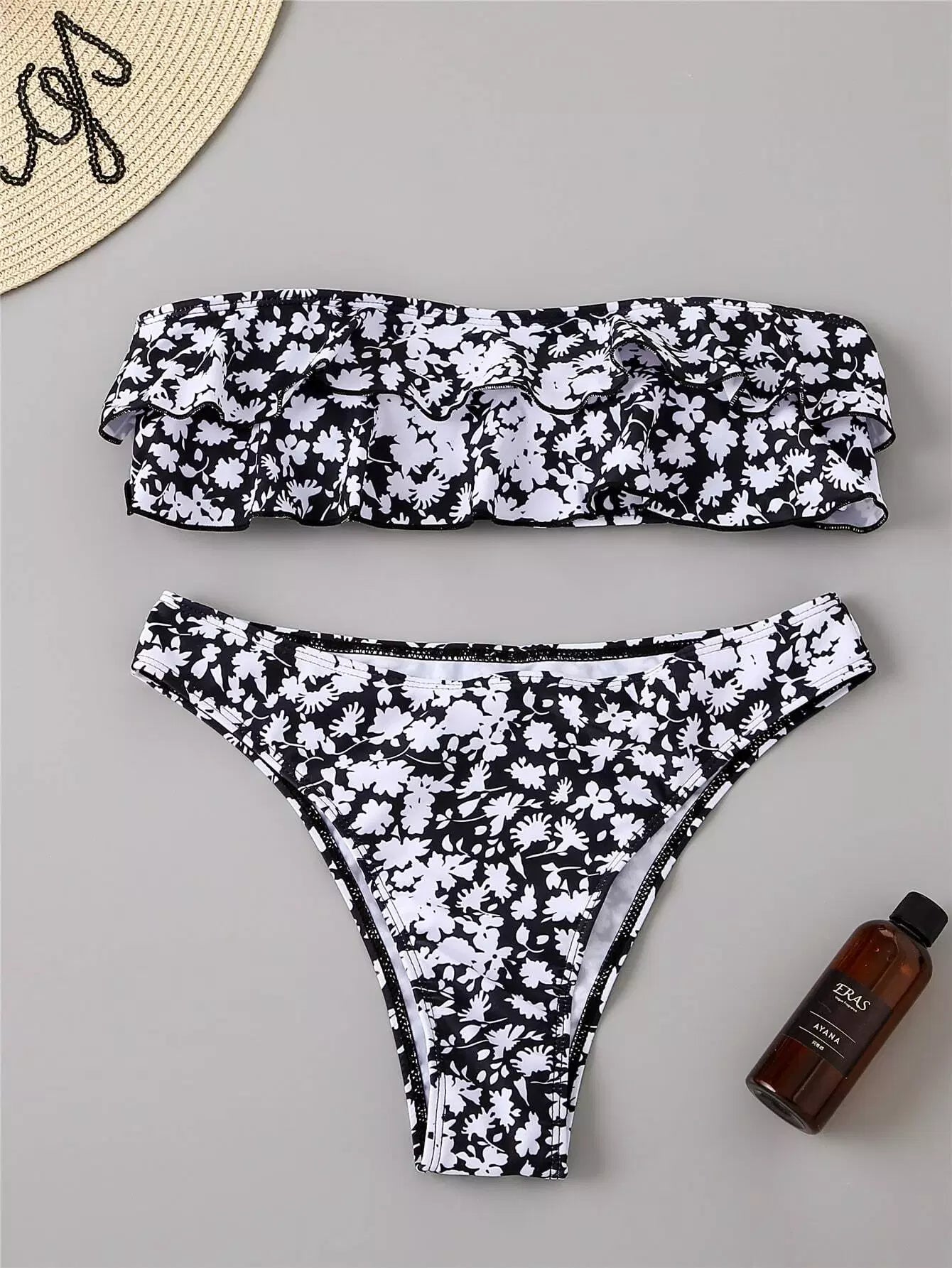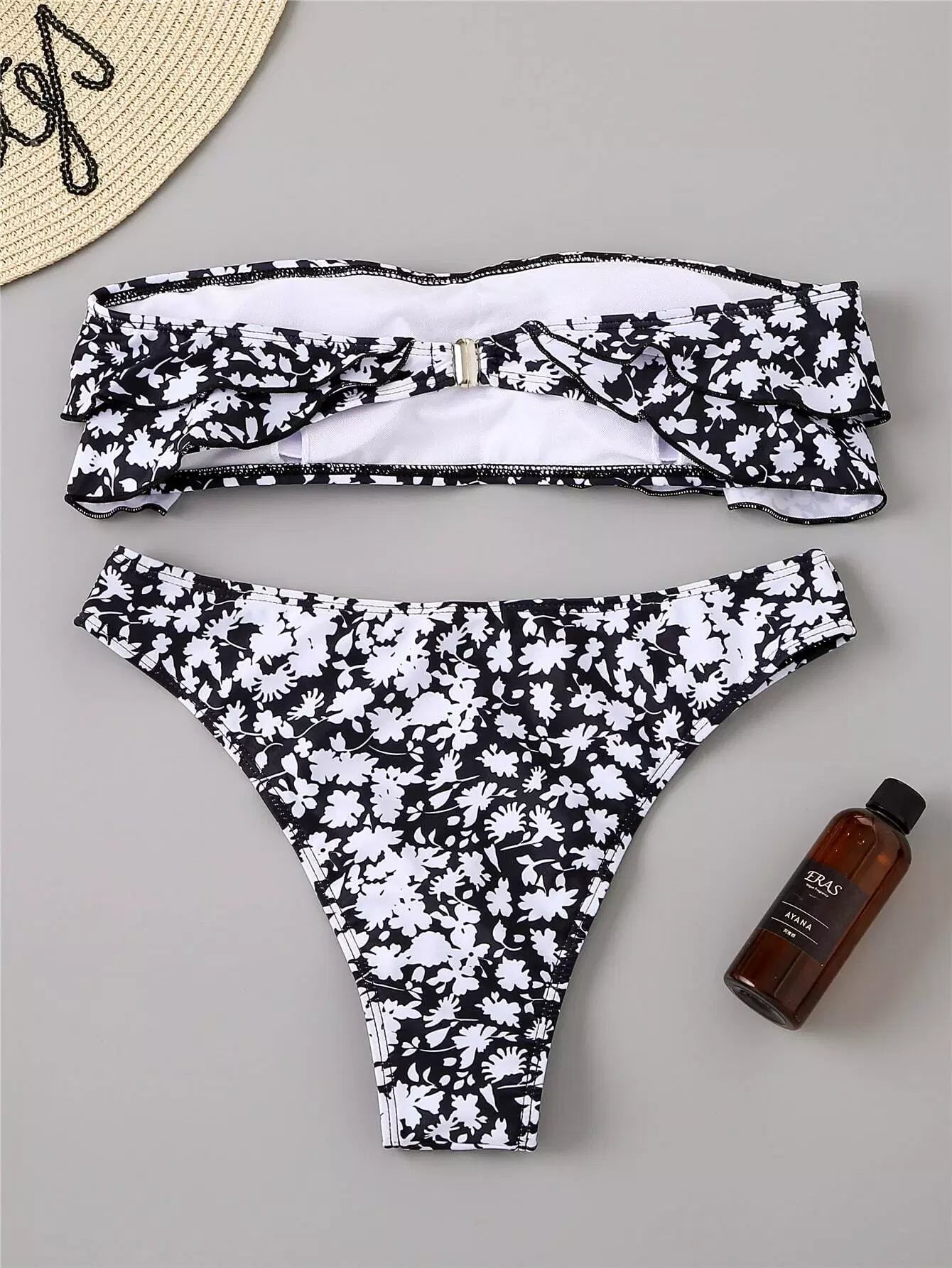Ditsy Floral Print Ruffle Bikini Swimsuit