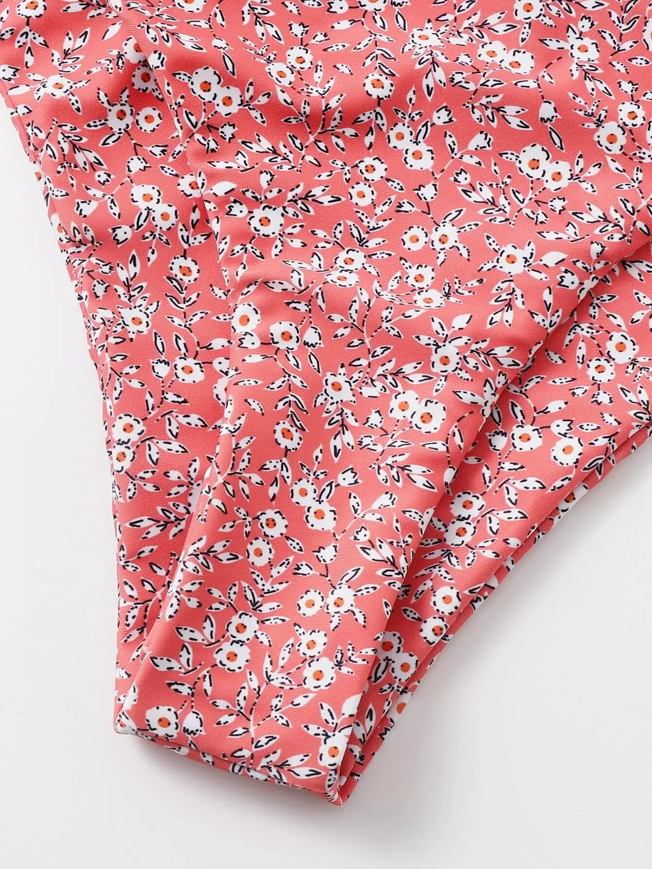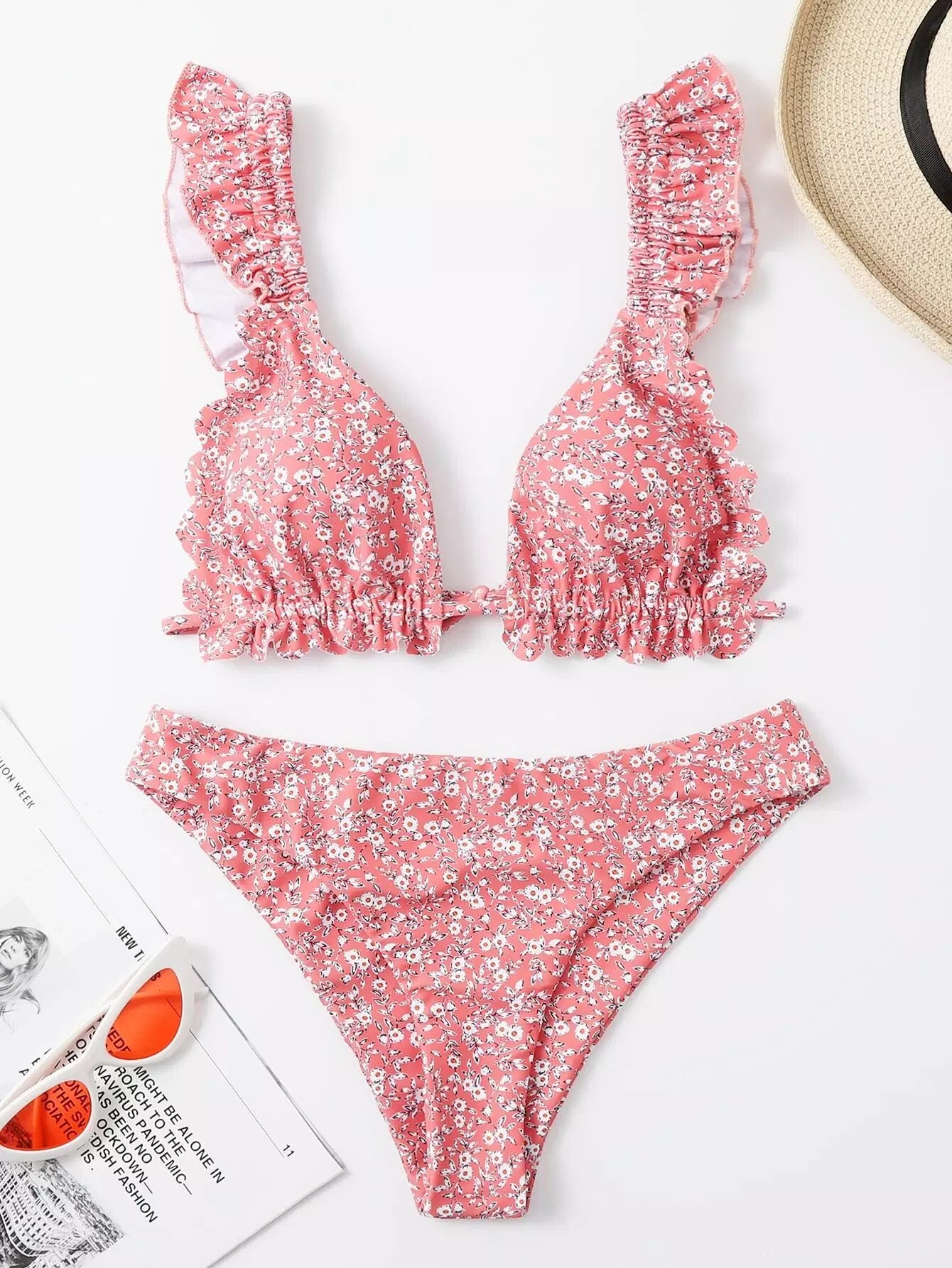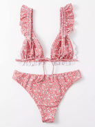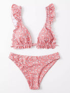 Ditsy Floral Ruffle Trim Triangle Bikini Swimsuit