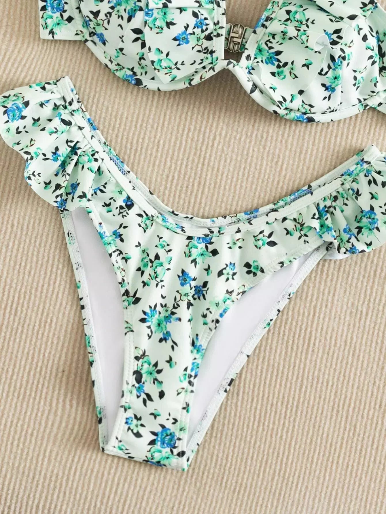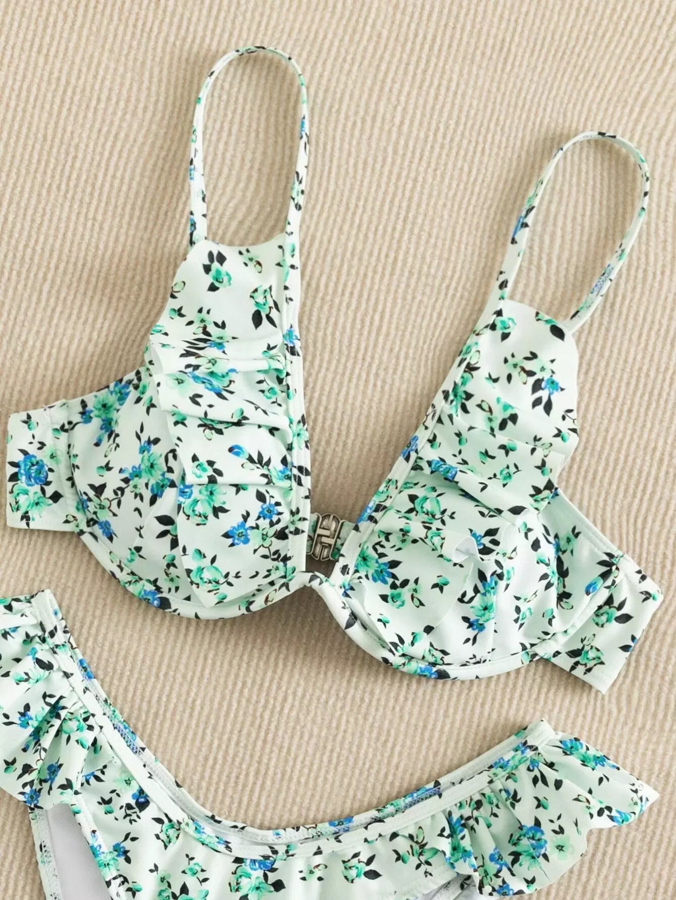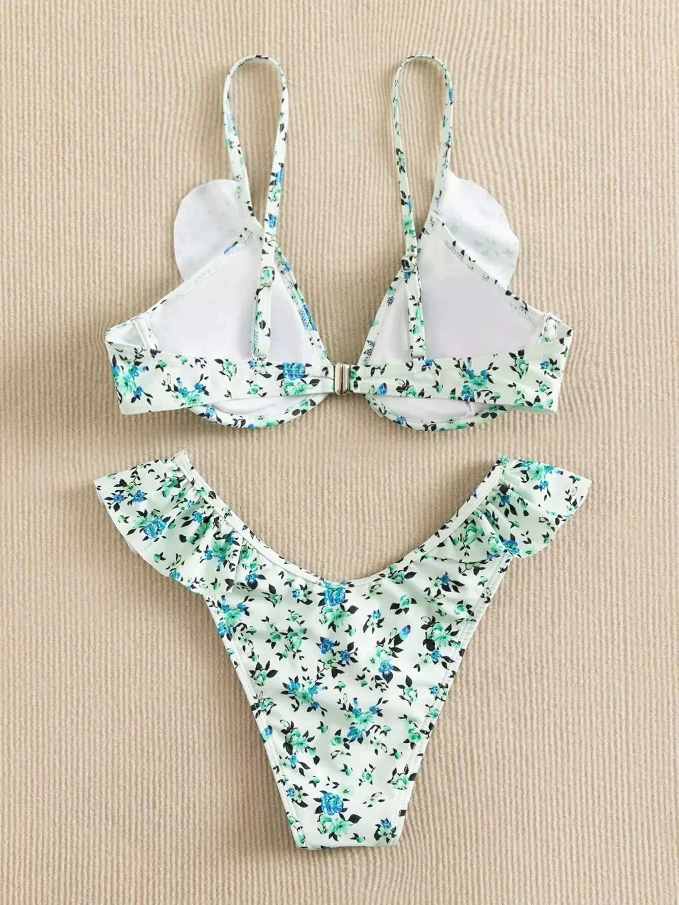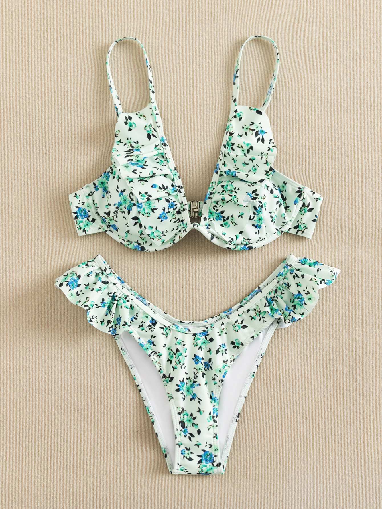 Ditsy Floral Ruffle Underwire Bikini Swimsuit