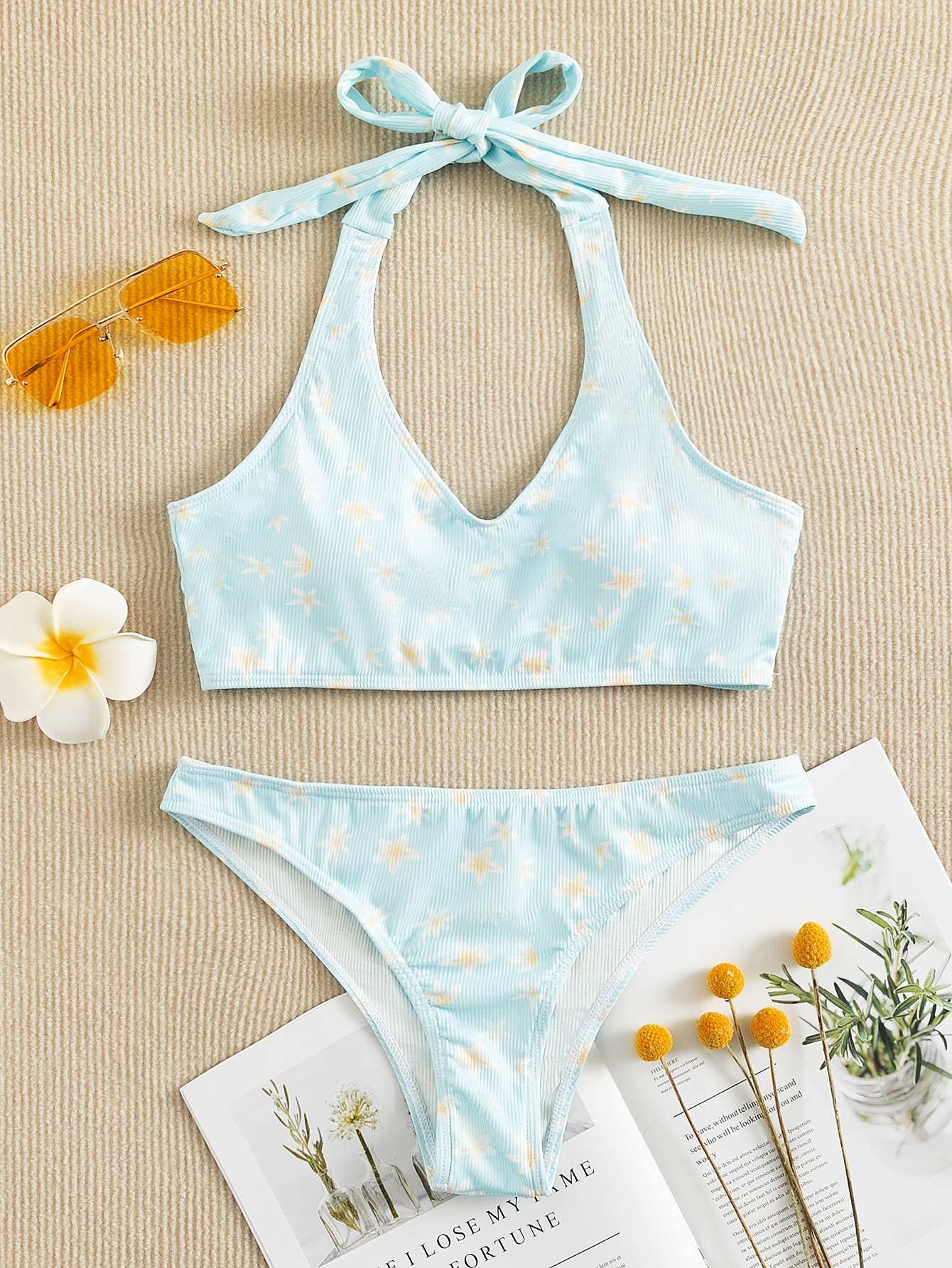 Floral Rib Bikini Swimsuit