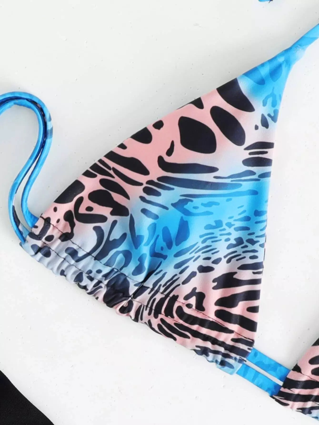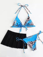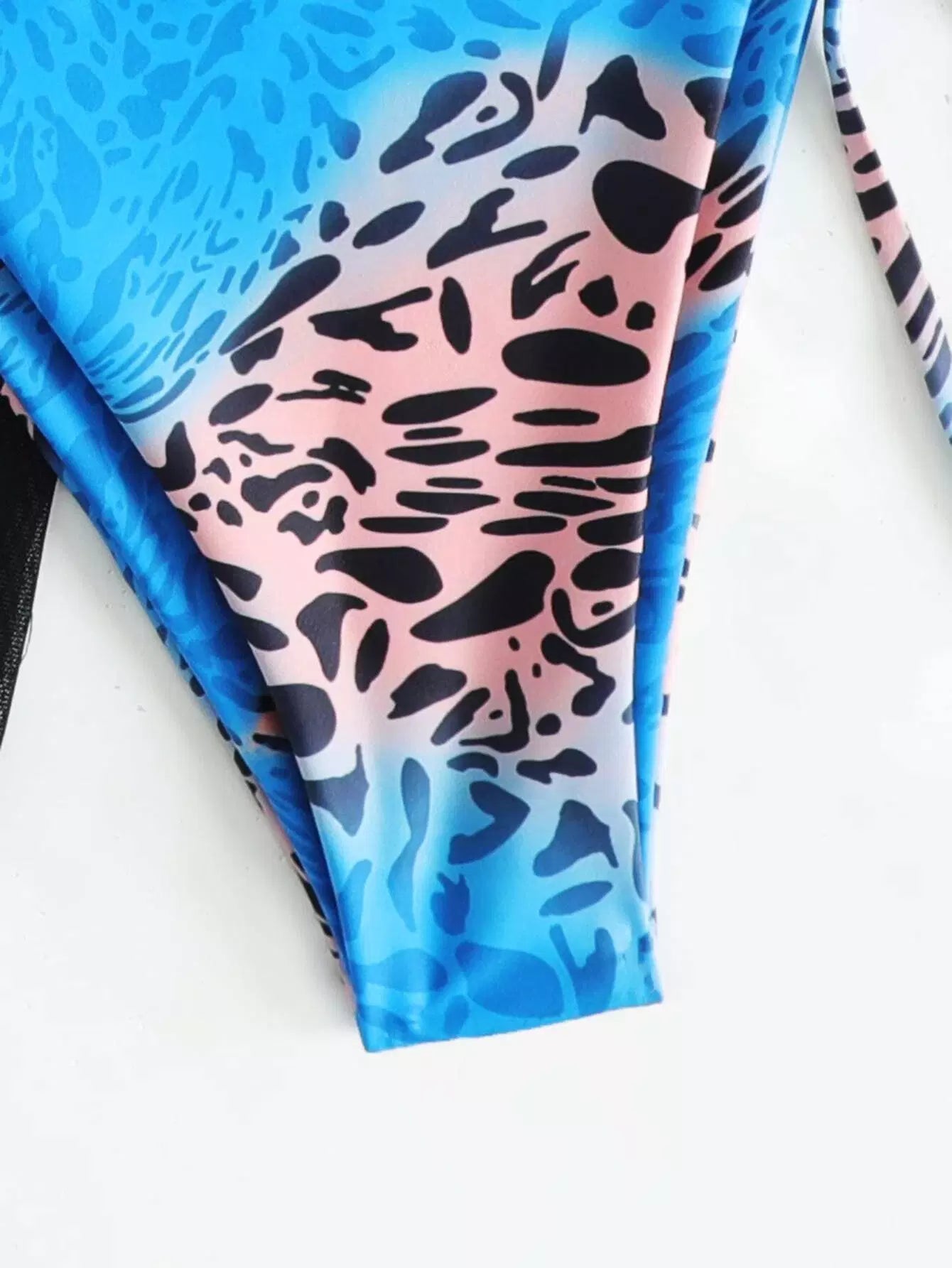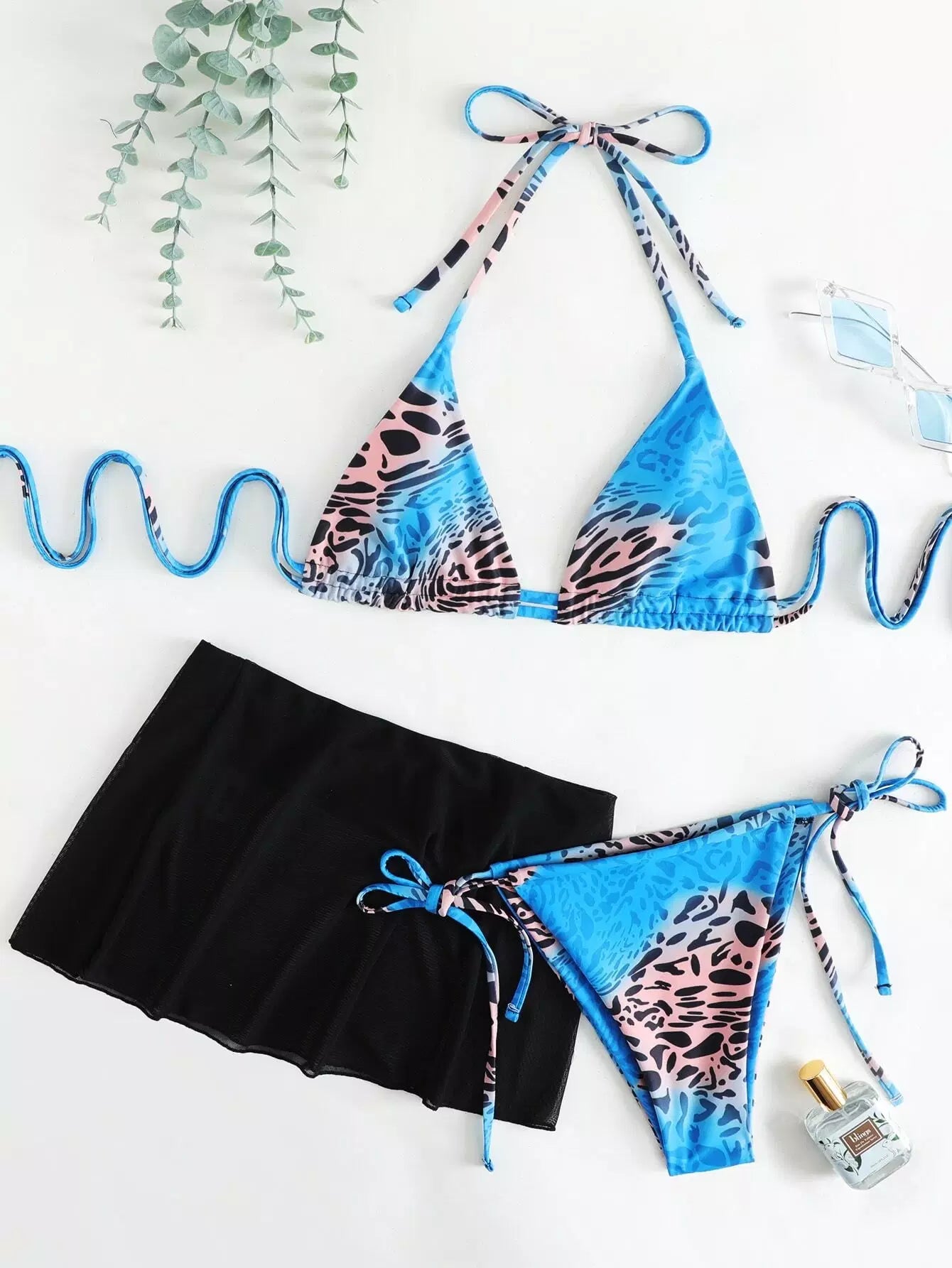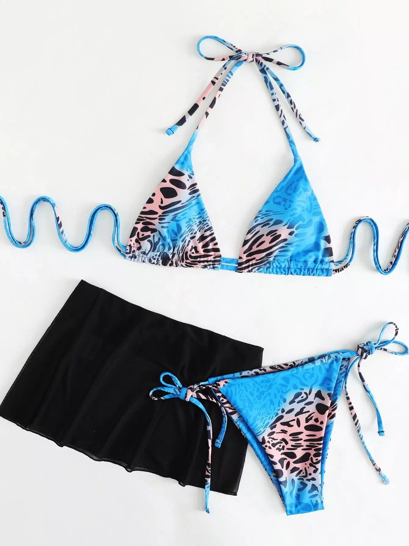 Leopard Triangle Thong Bikini Swimsuit & Beach Skirt