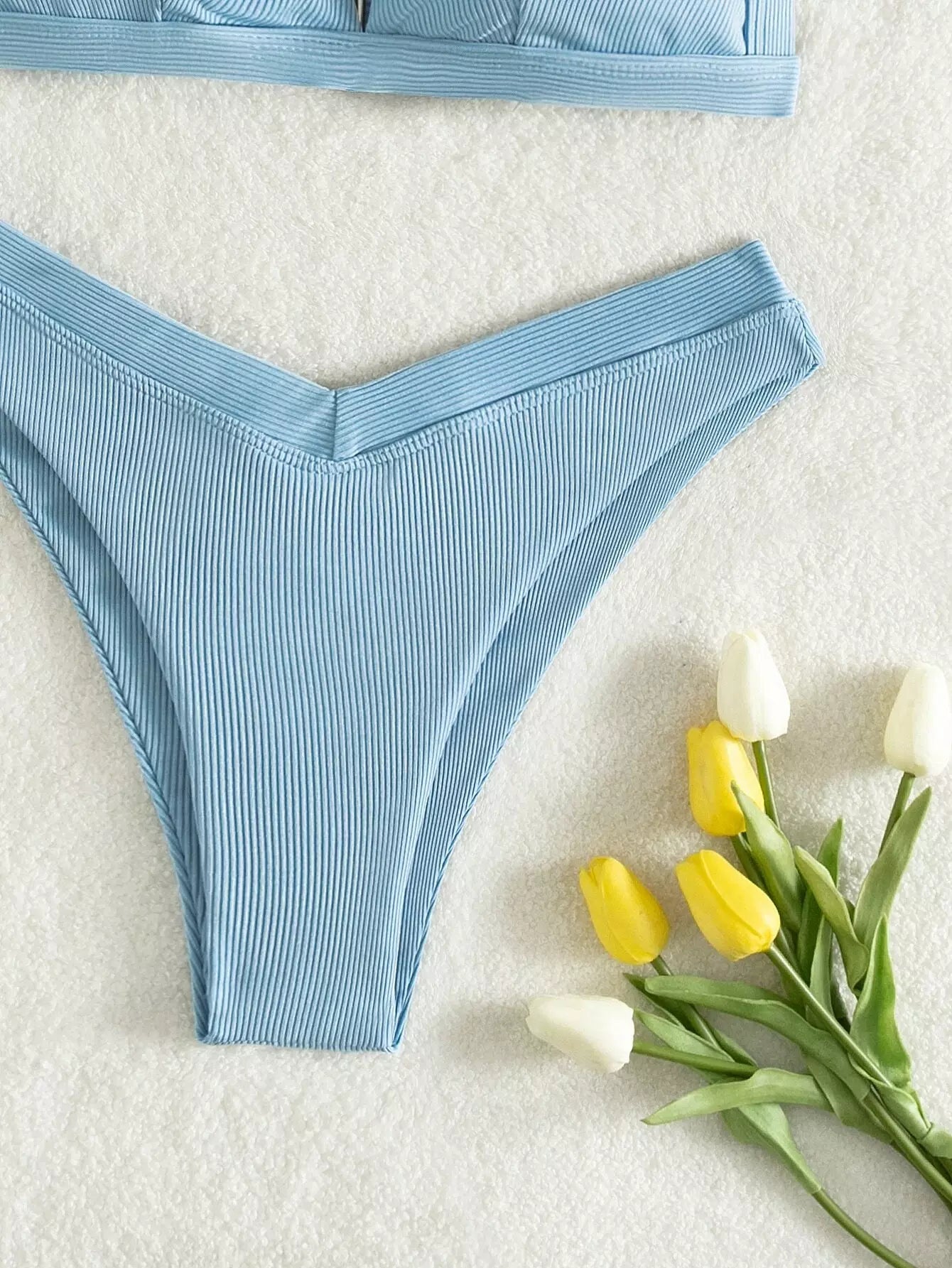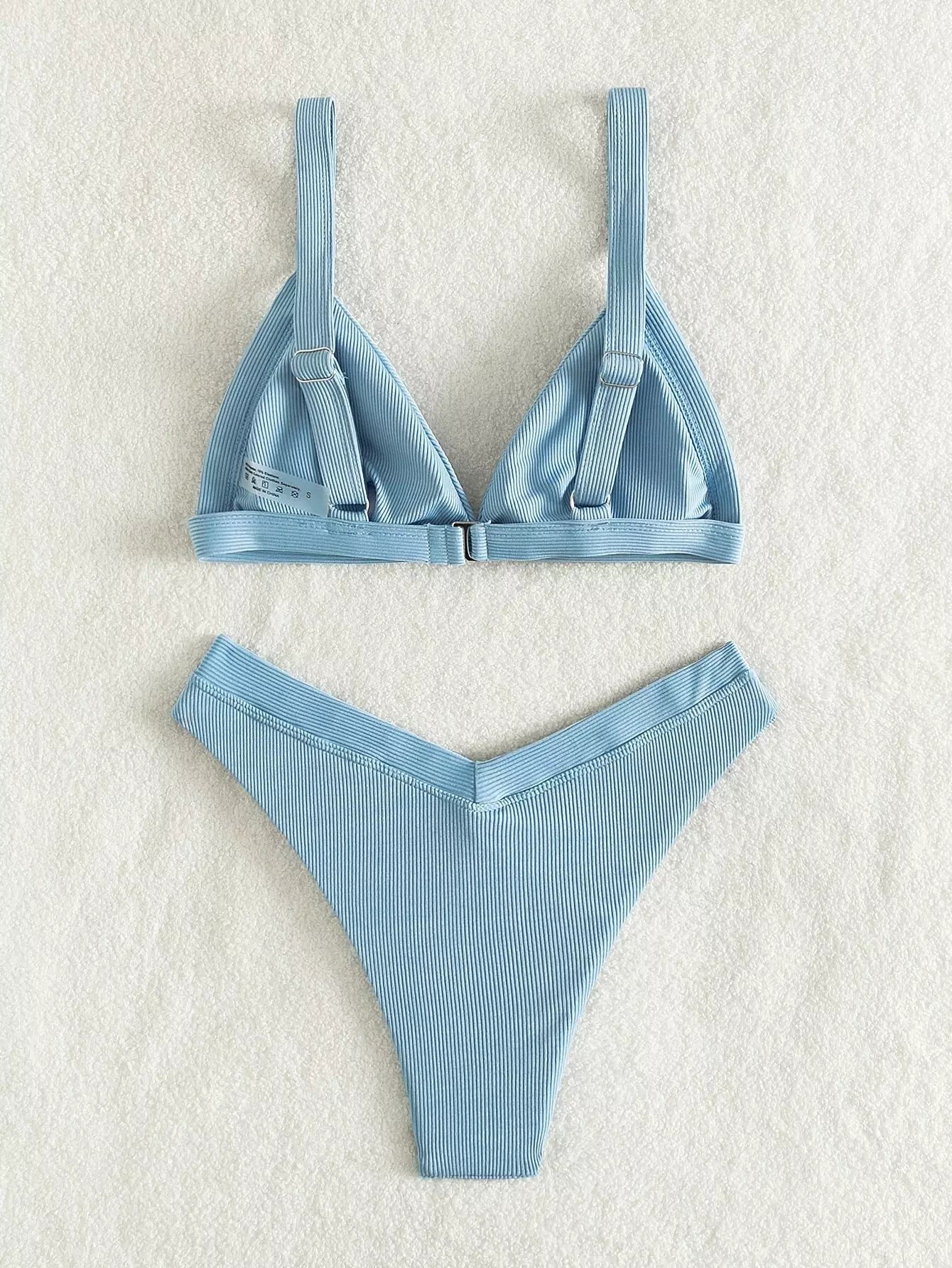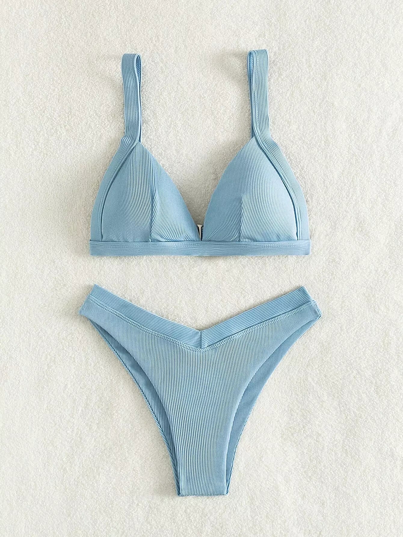Rib Triangle High Cut Bikini Swimsuit