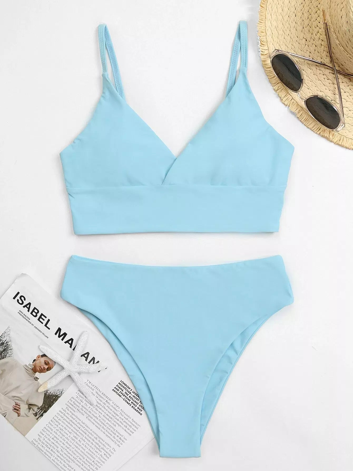 Solid High Waisted Bikini Swimsuit