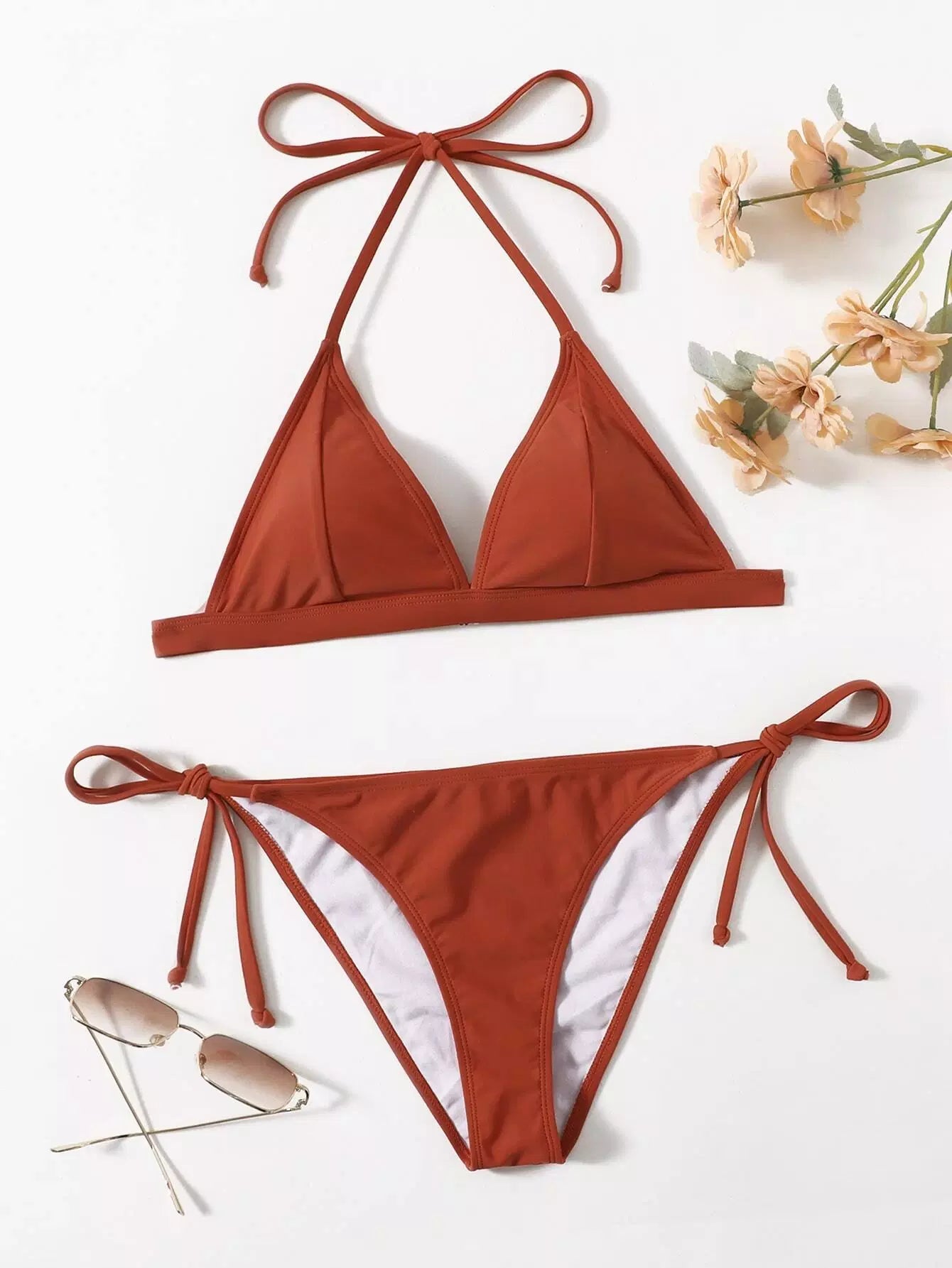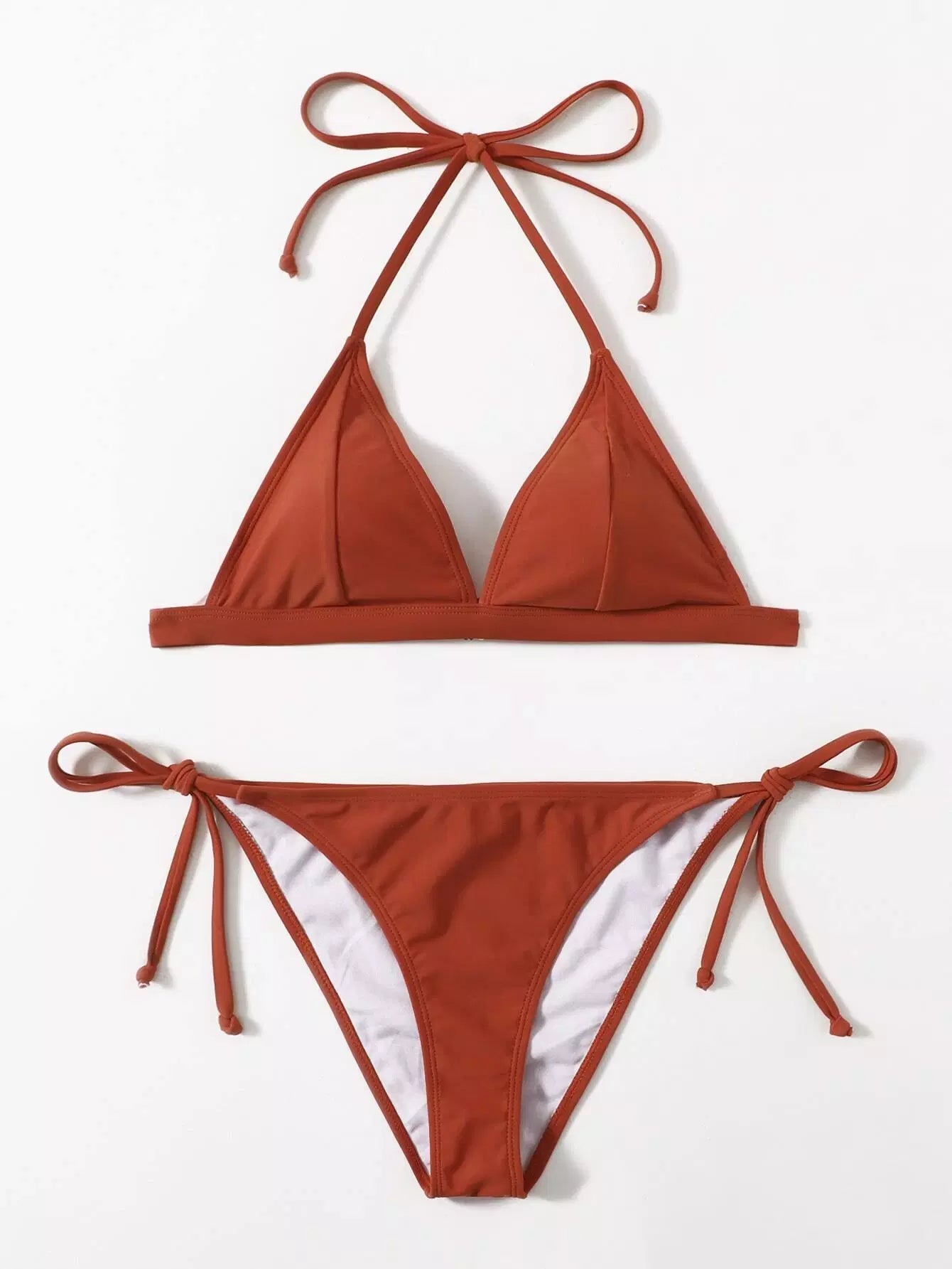 Solid Triangle Tie Side Bikini Swimsuit