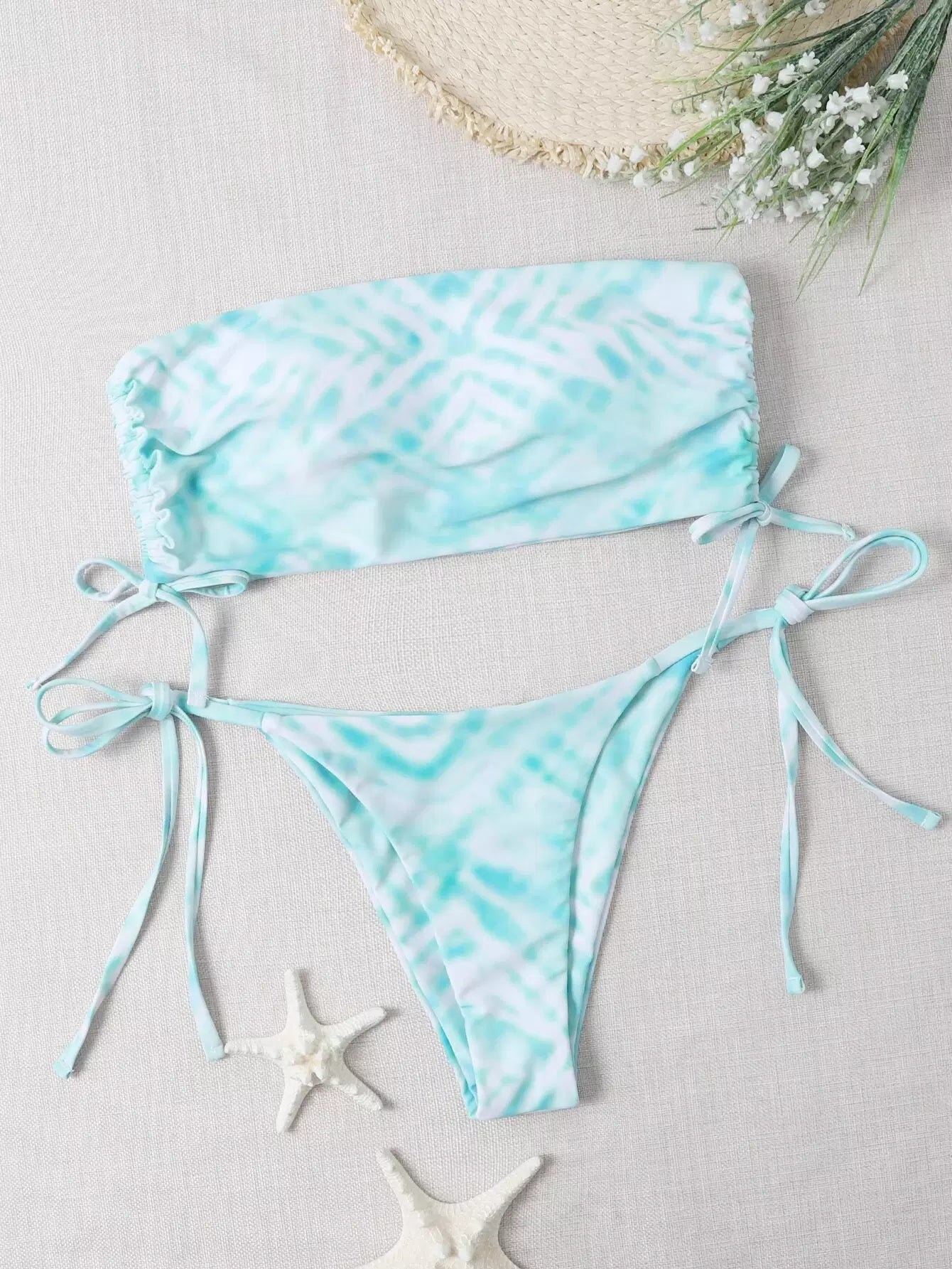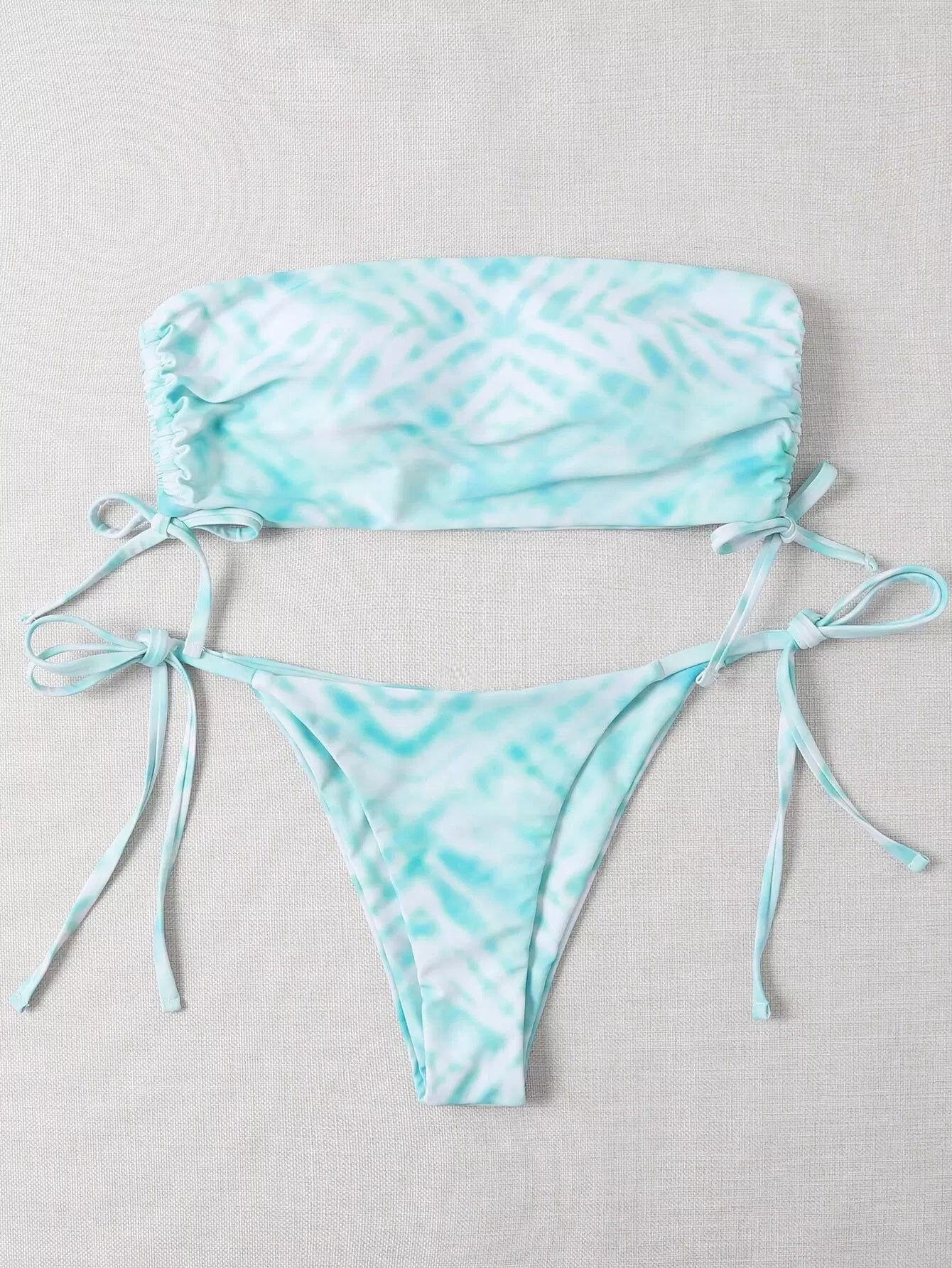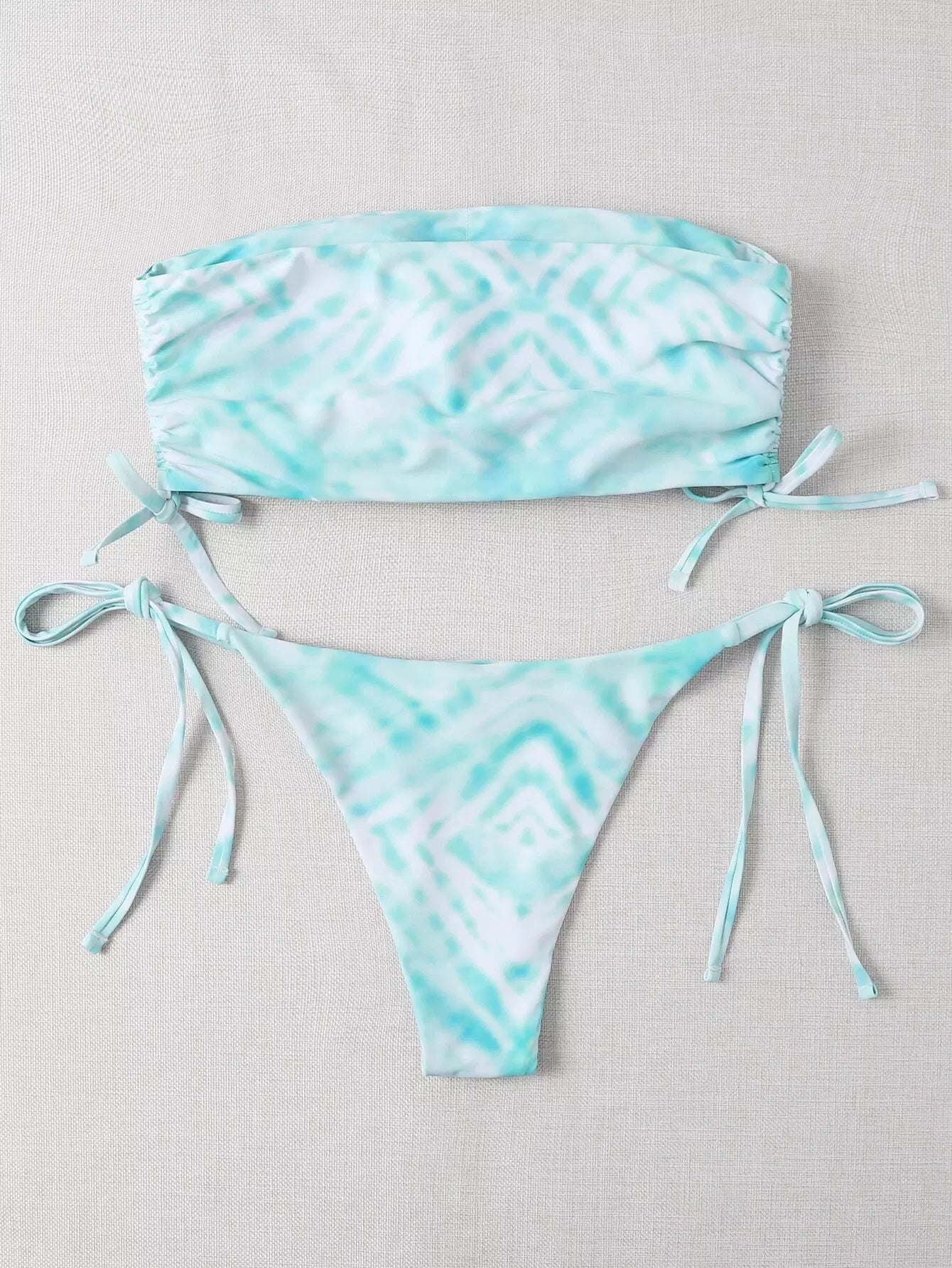 Tie Dye Bandeau Thong Bikini Swimsuit