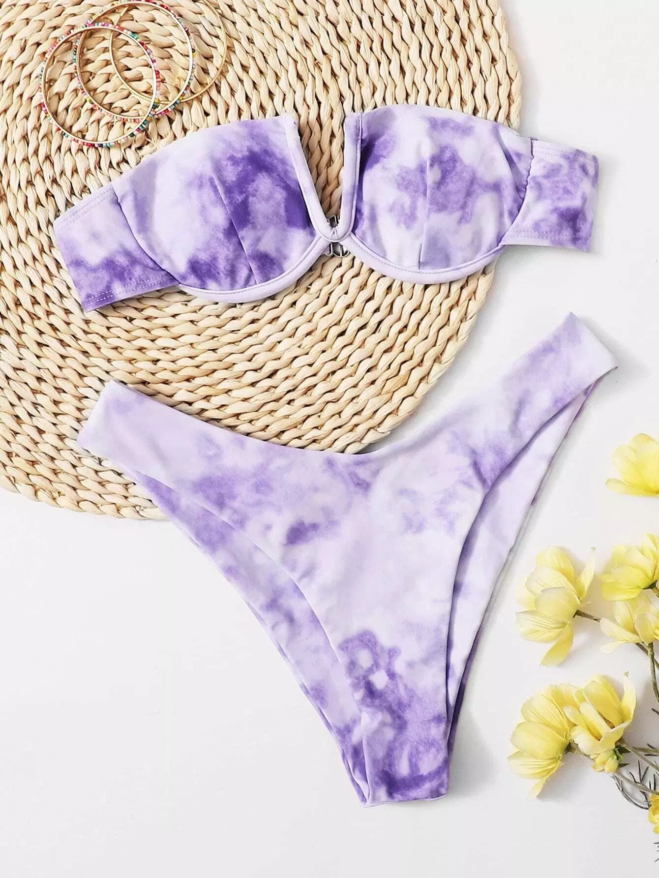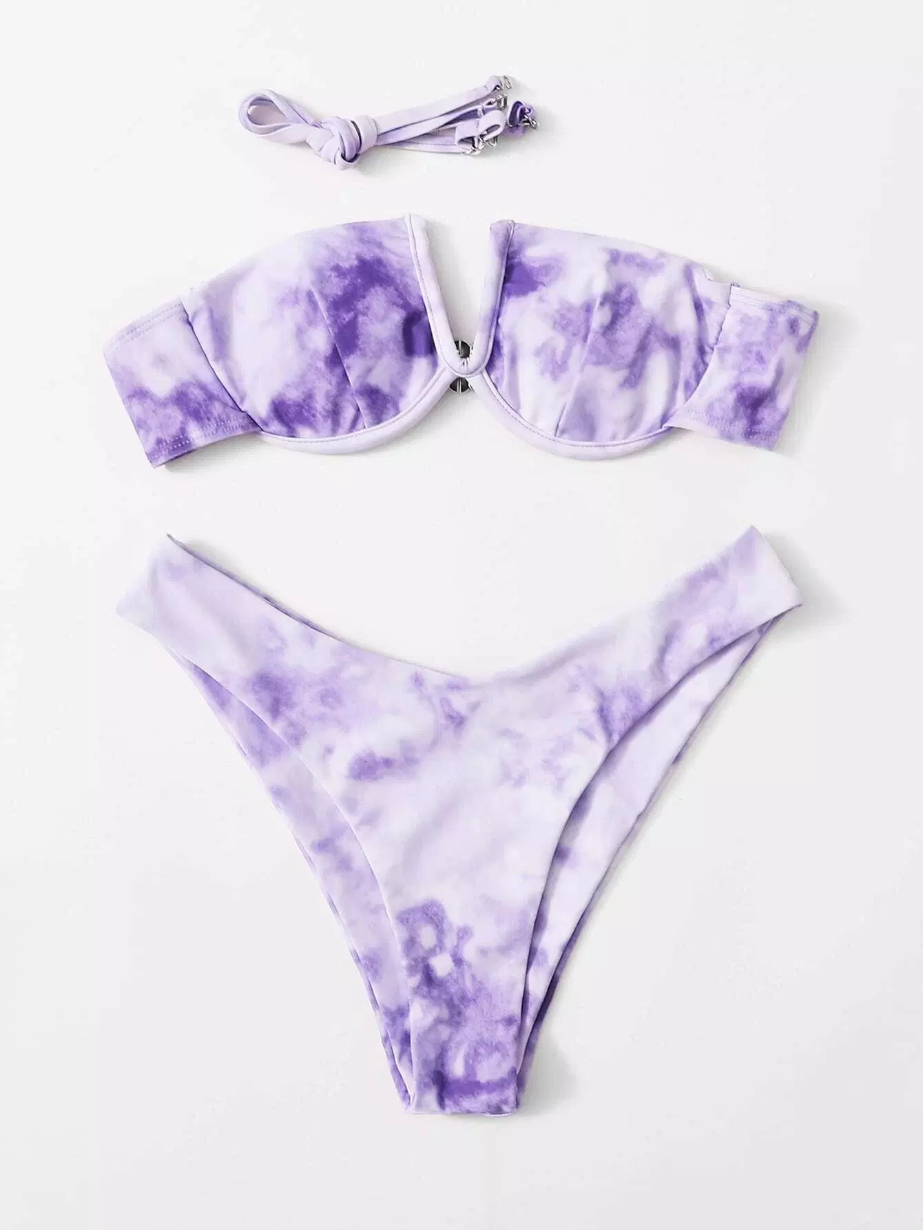 Women - Tie Dye V Wired Underwire High Cut Bikini Swimsuit