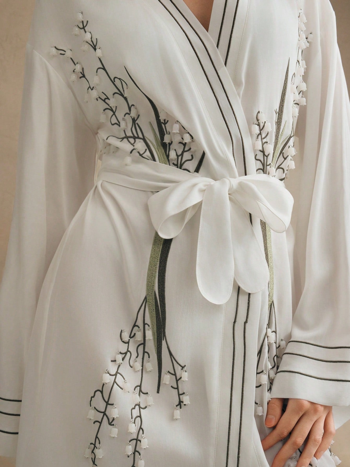 Anewsta White Embroidered Handmade Beaded New Style Dress