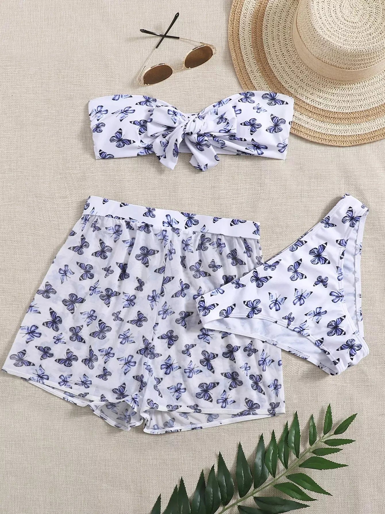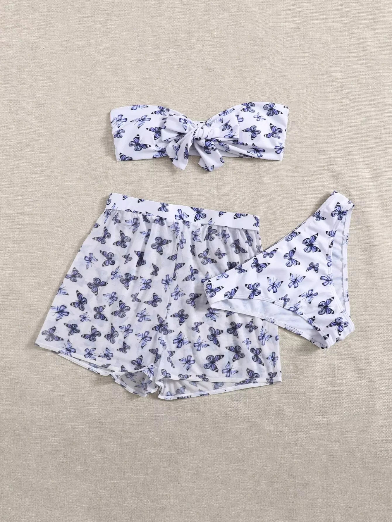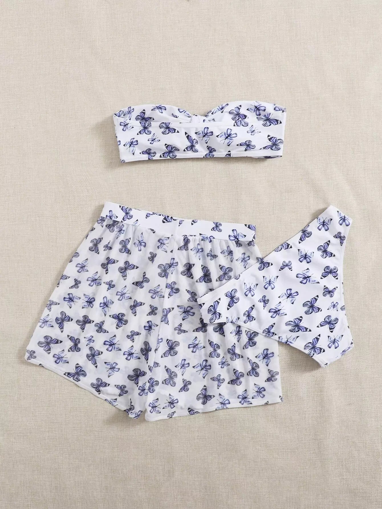 3pack Butterfly Pattern Bandeau Bikini Swimsuit