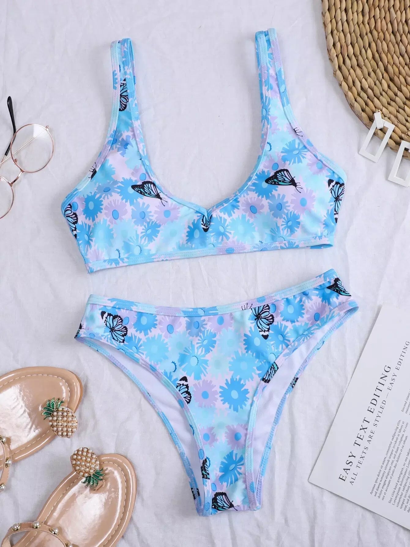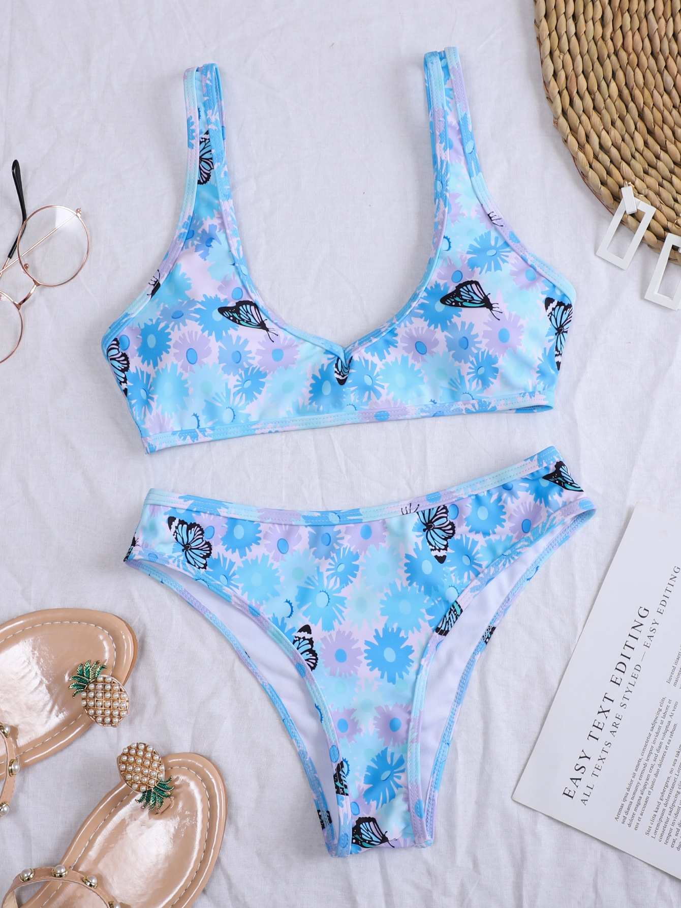 Women - Floral & Butterfly Print Bikini Swimsuit