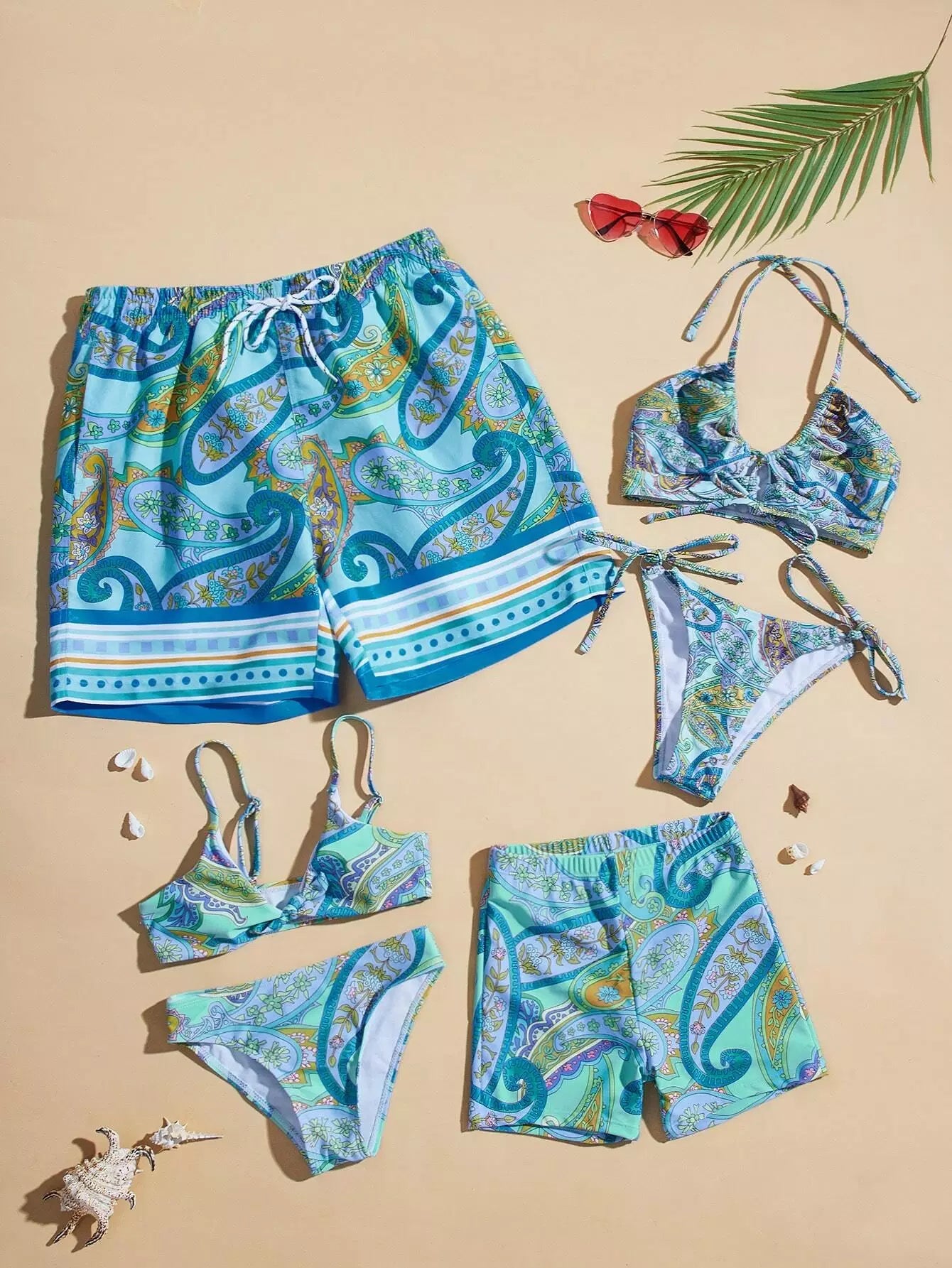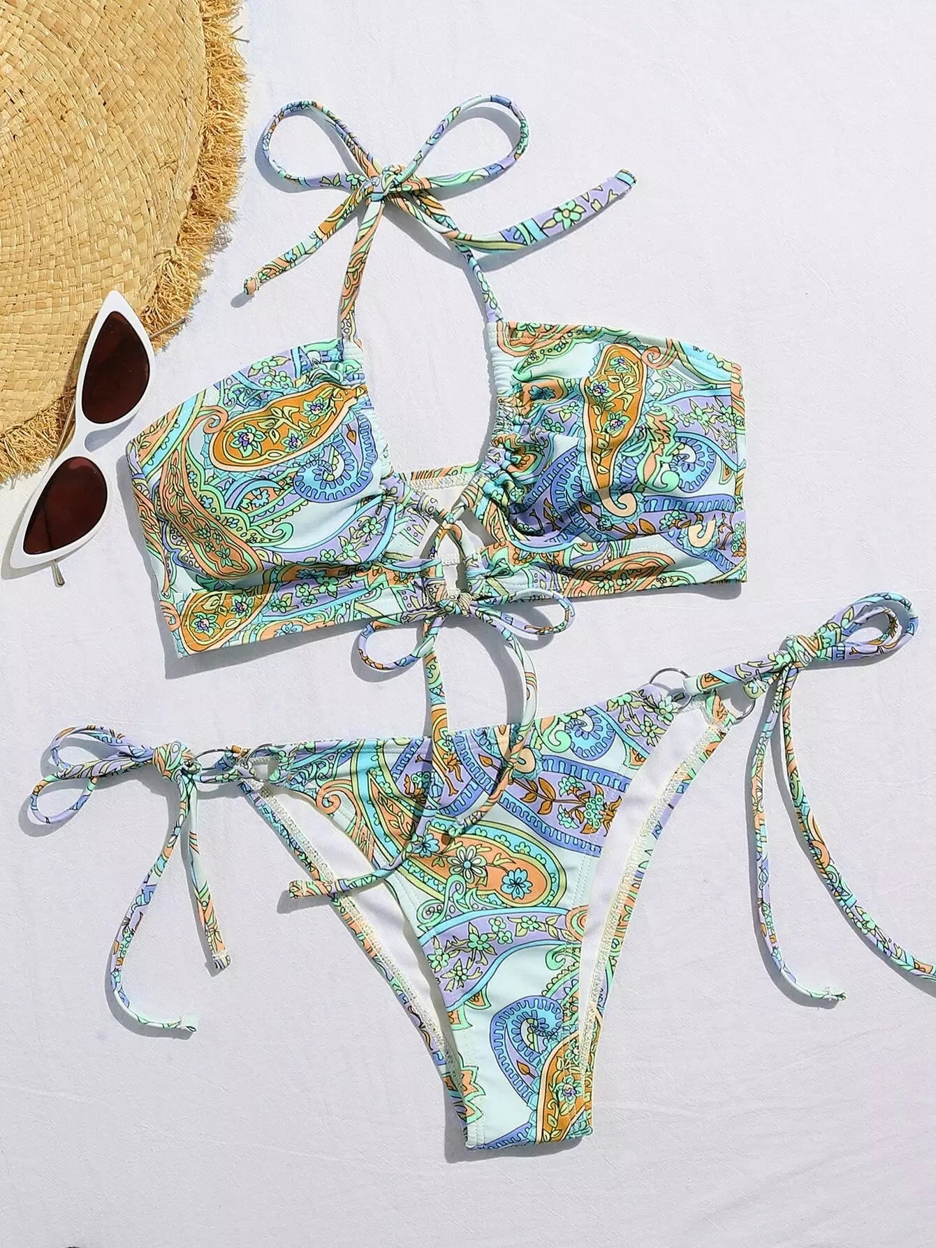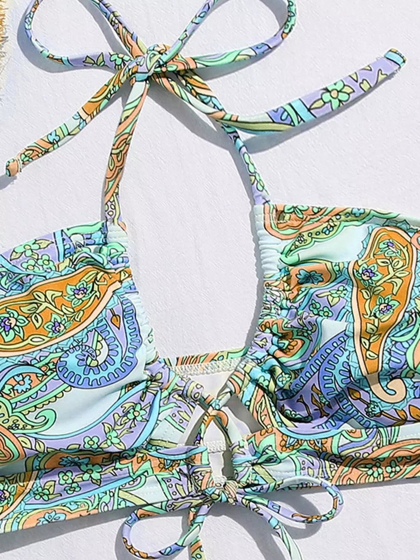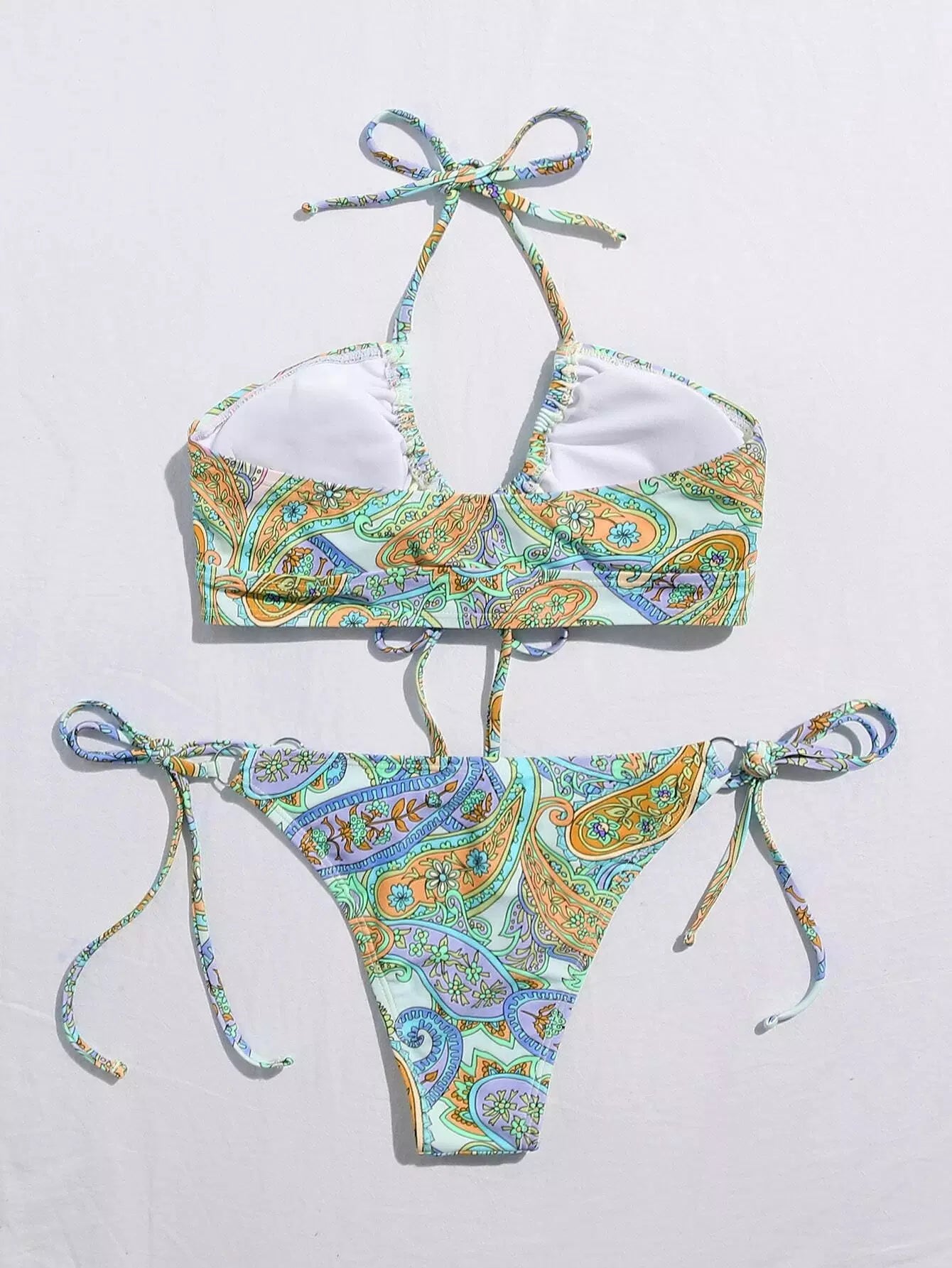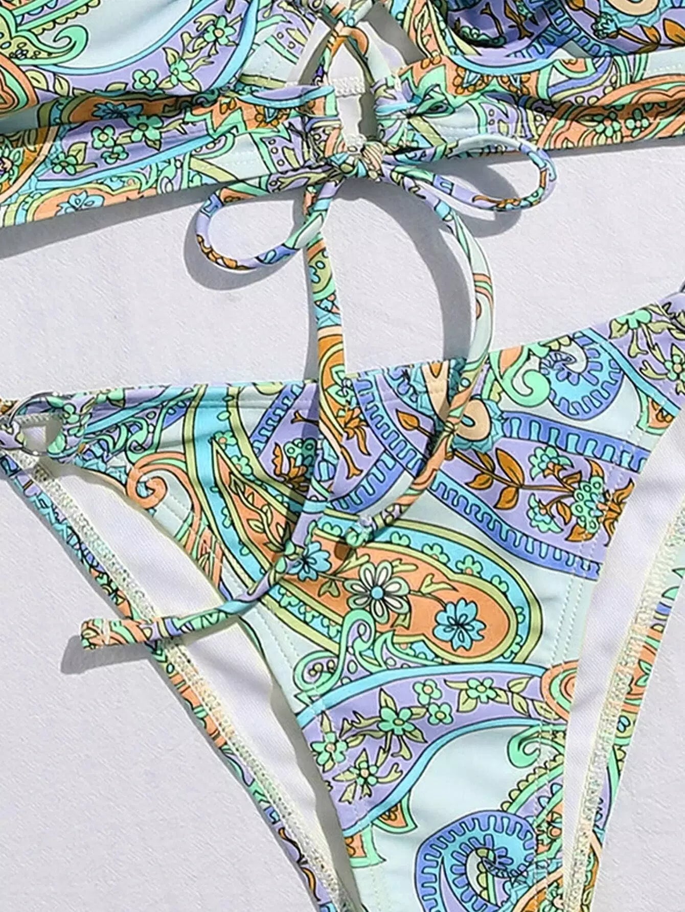 Women - Paisley Print Halter Thong Bikini Swimsuit