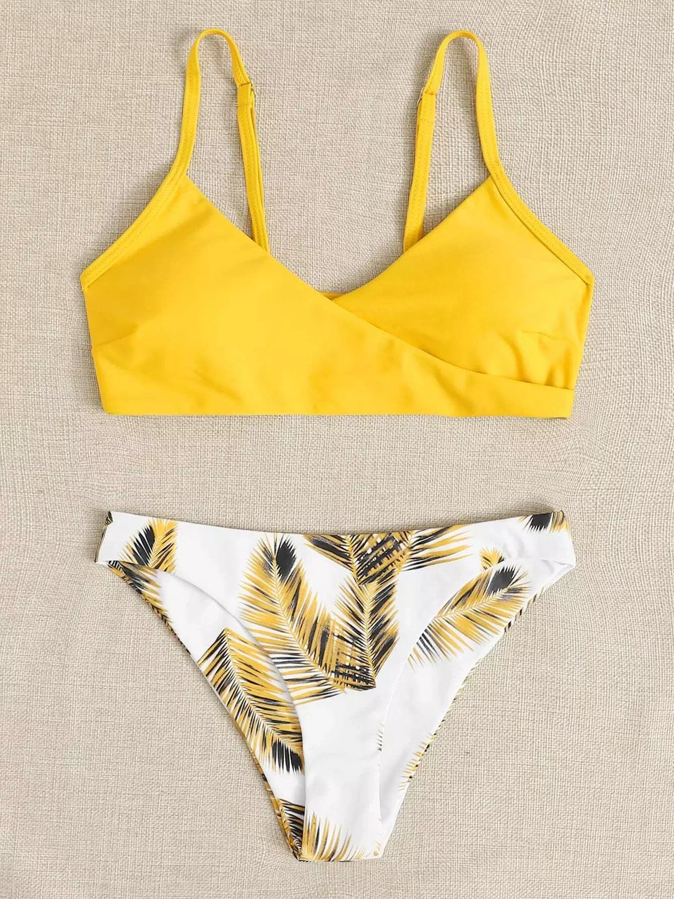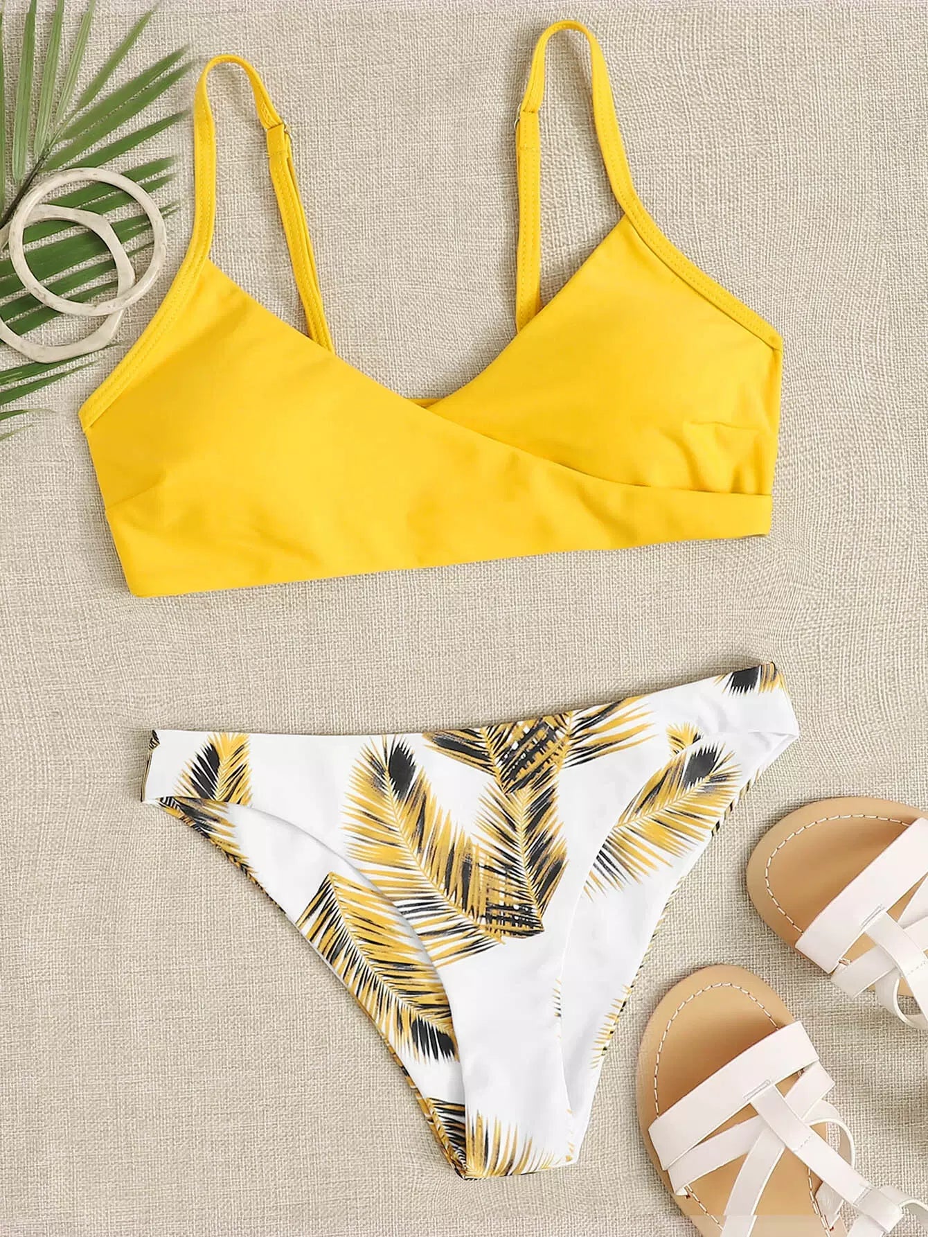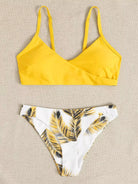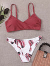 Palm Print Adjustable Strap Bikini Swimsuit