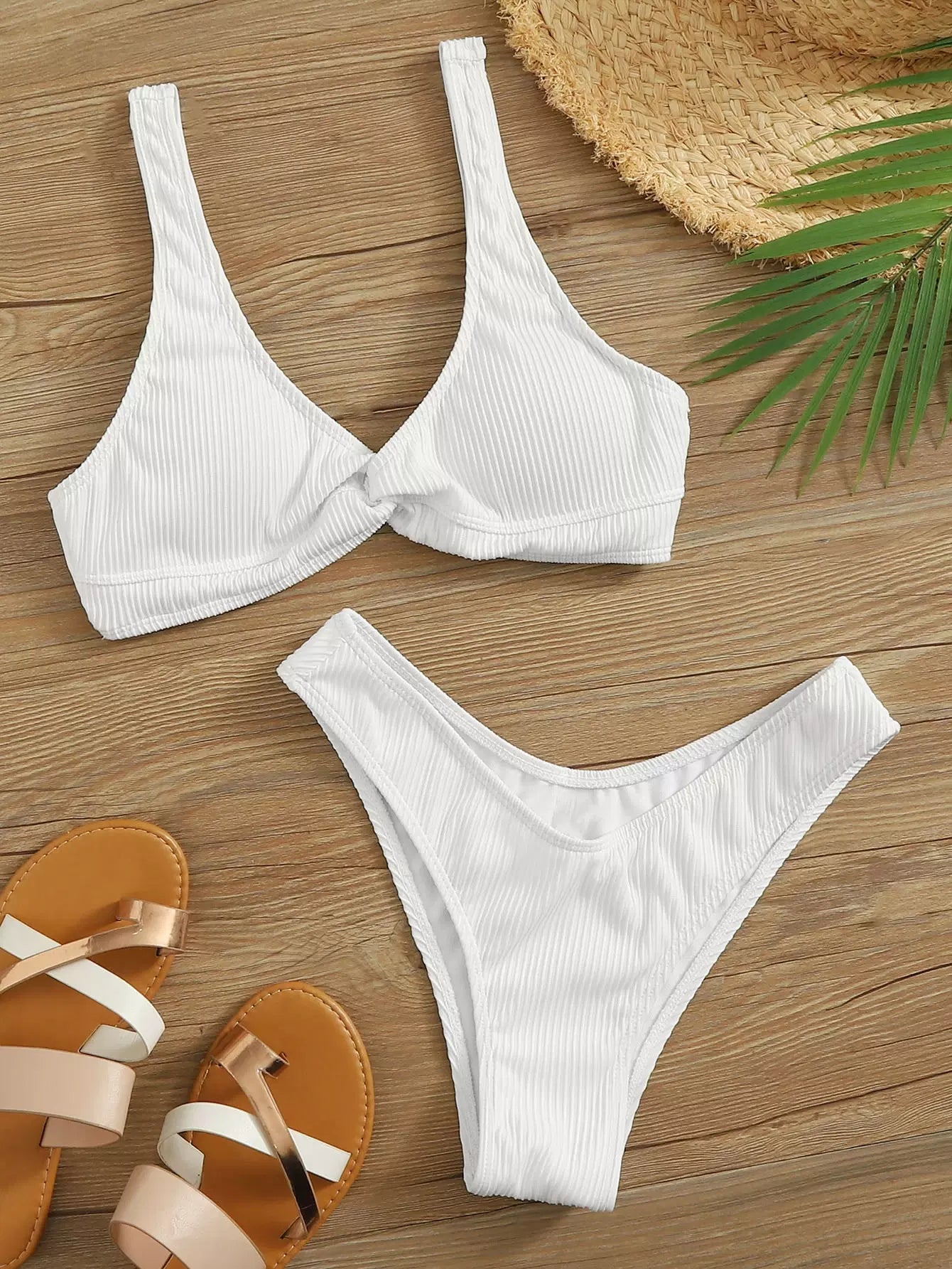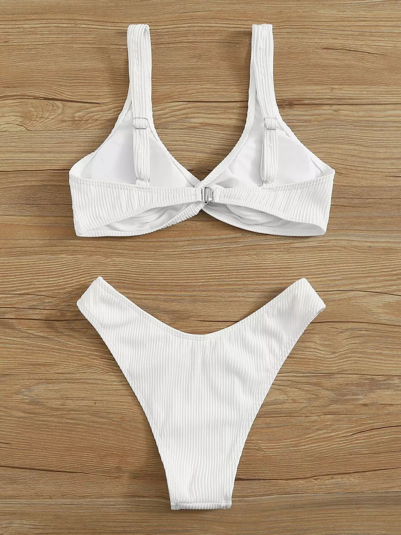 Women - Rib Twist Front High Cut Bikini Swimsuit