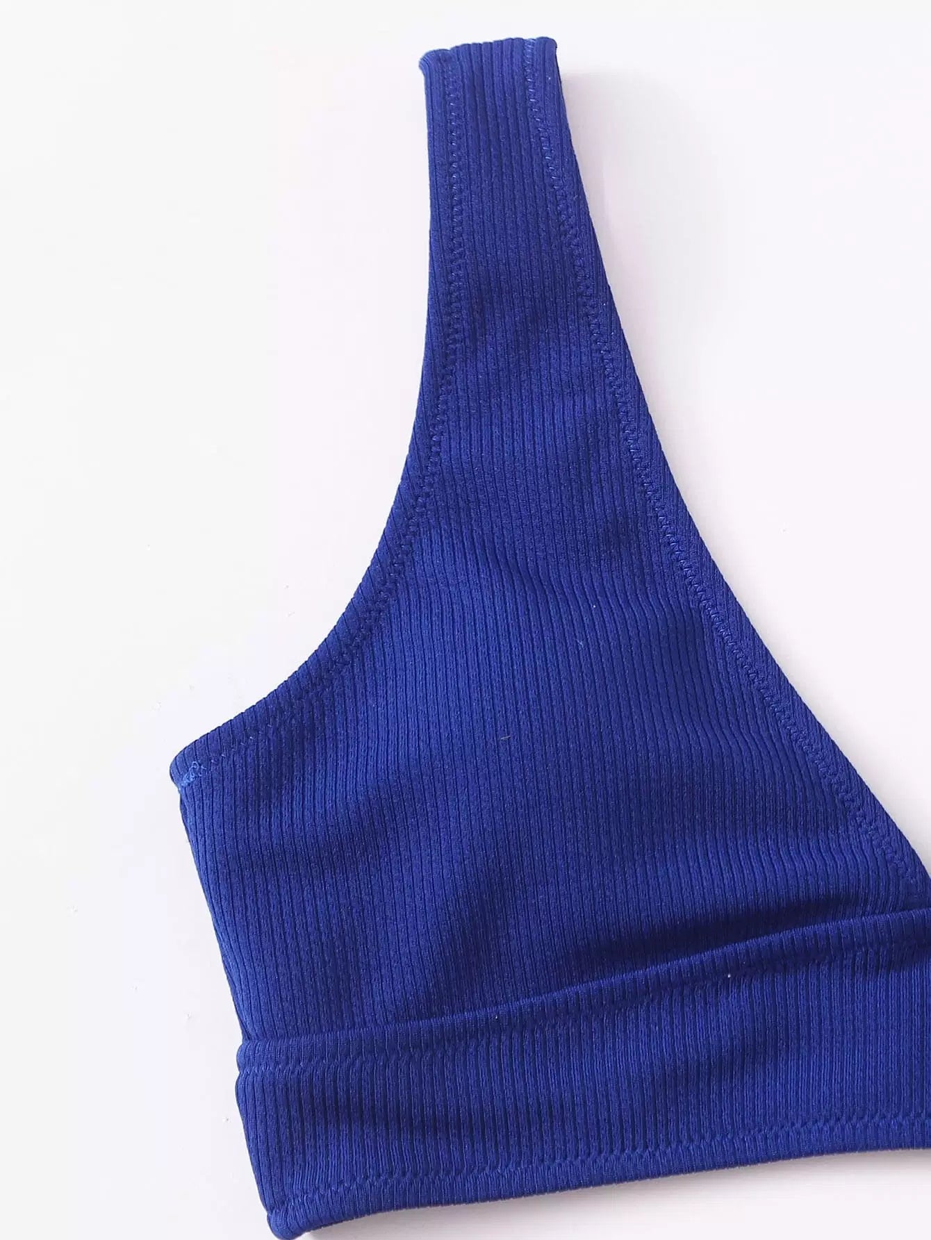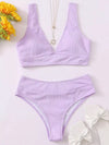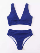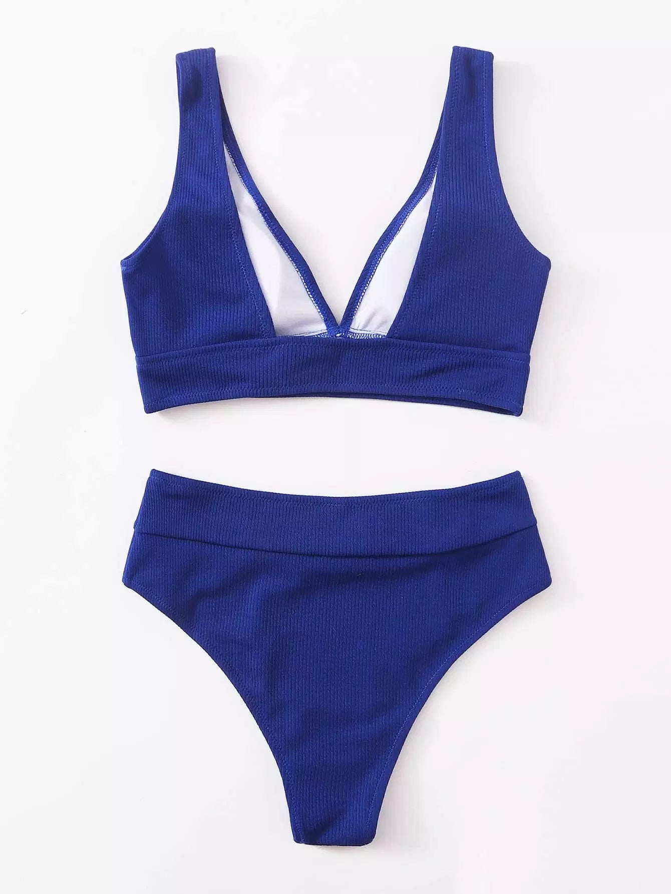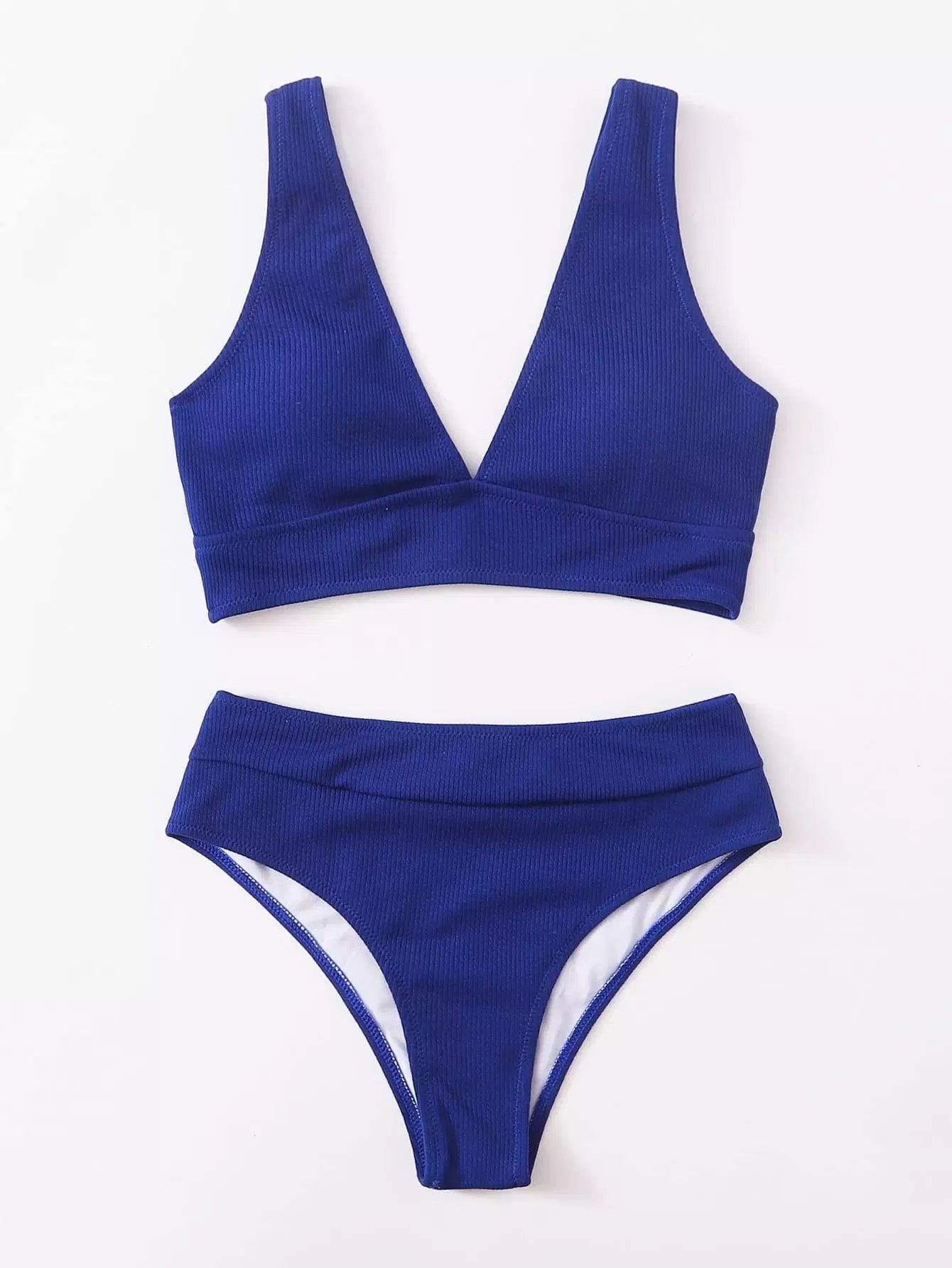 Women - Rib V Neck High Waisted Bikini Swimsuit
