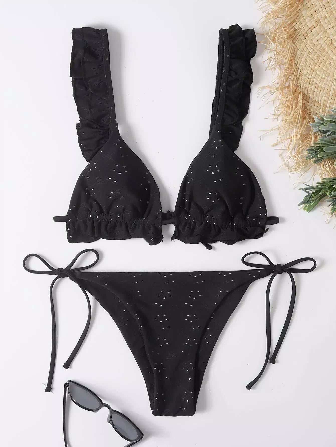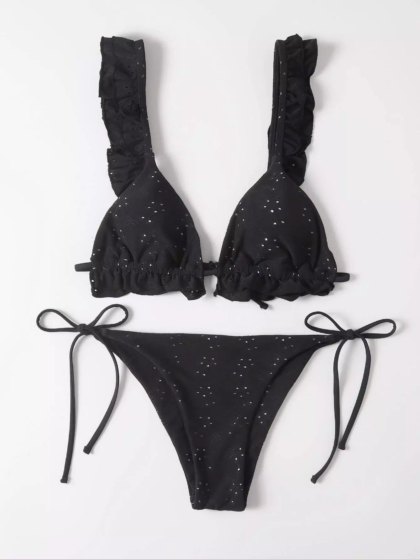 Schiffy Ruffle Triangle Tie Side Bikini Swimsuit