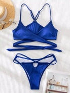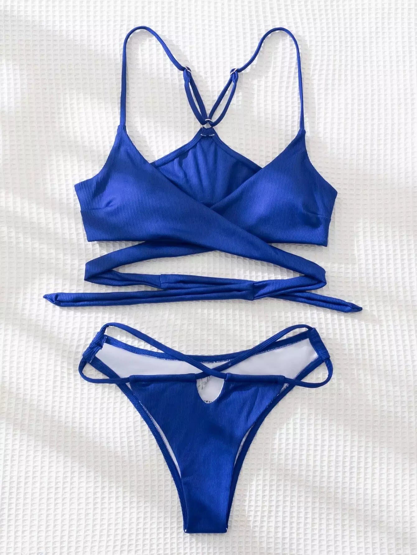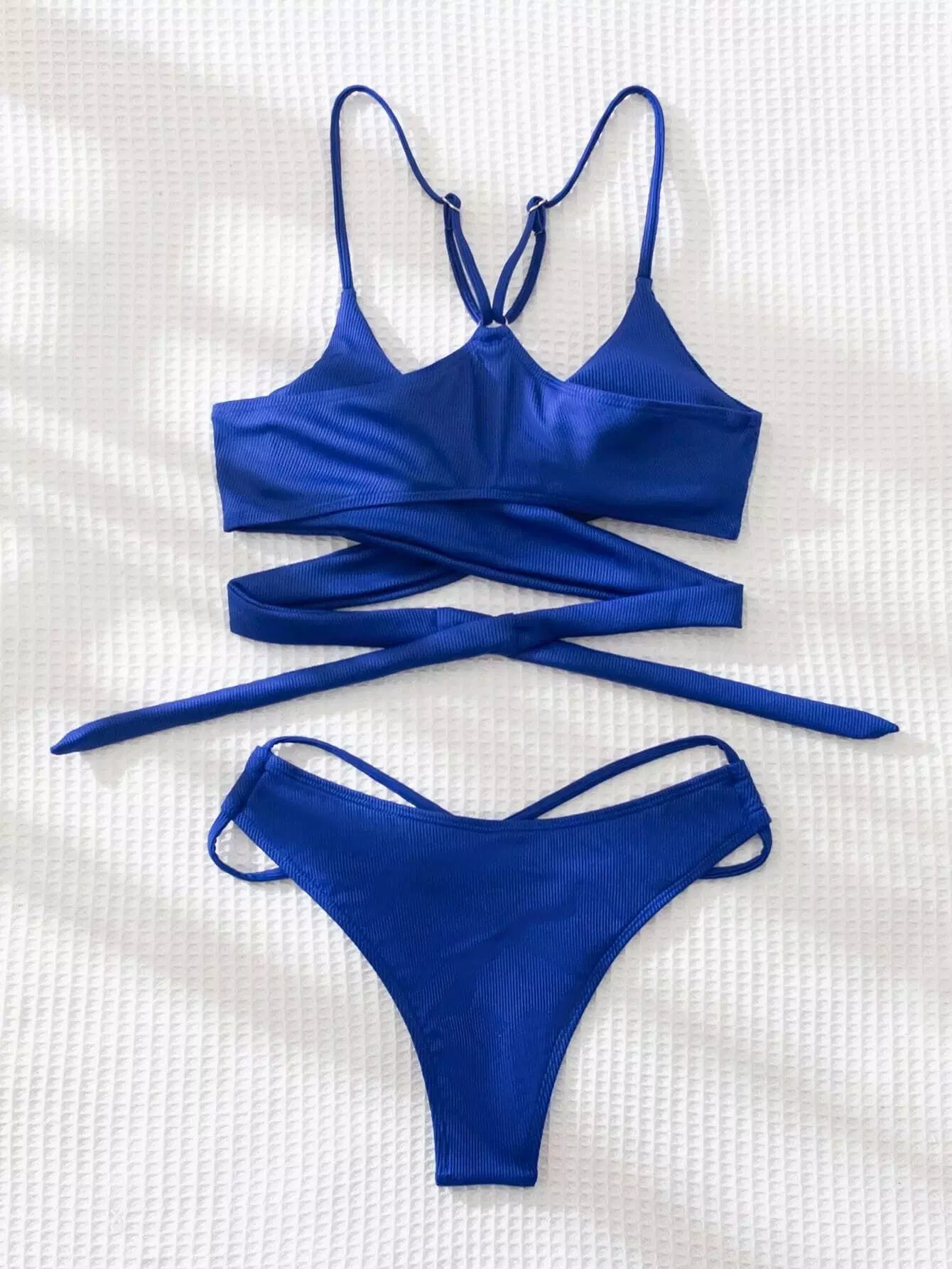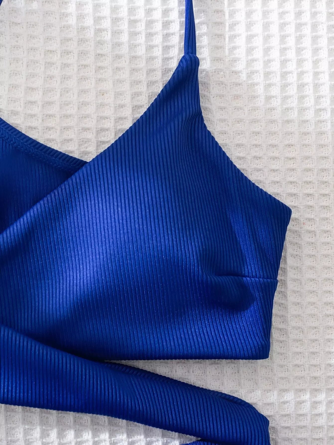 Solid Rib Wrap Bikini Swimsuit