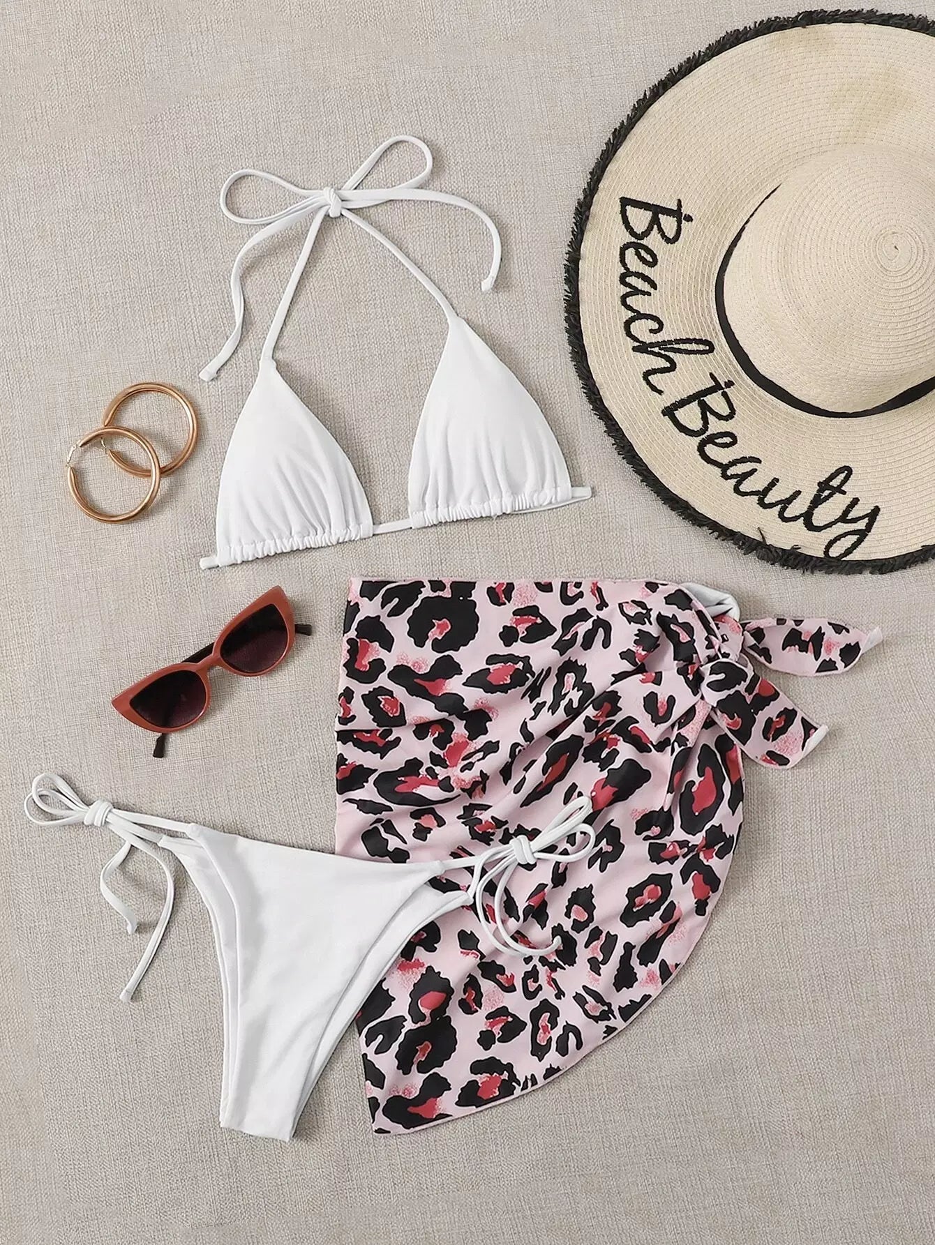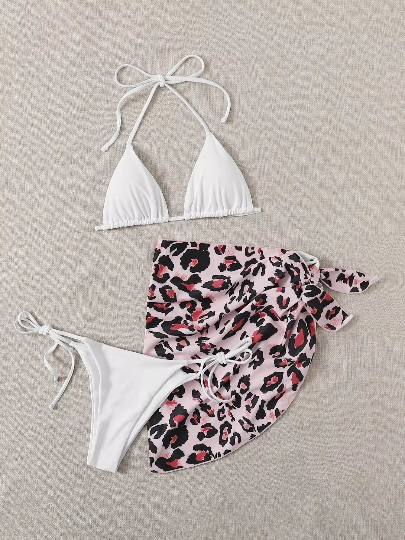 3pack Triangle Bikini Swimsuit & Beach Skirt