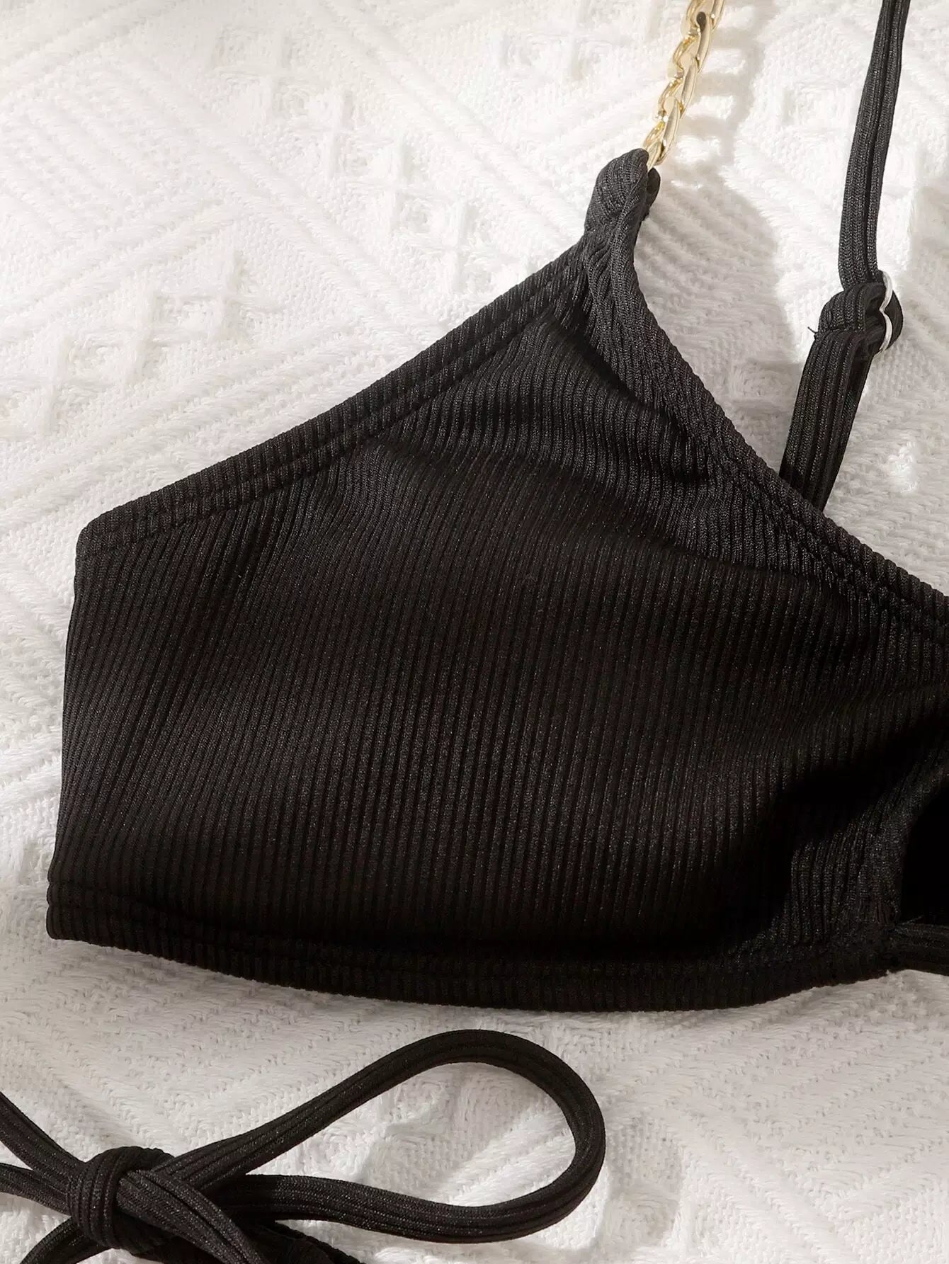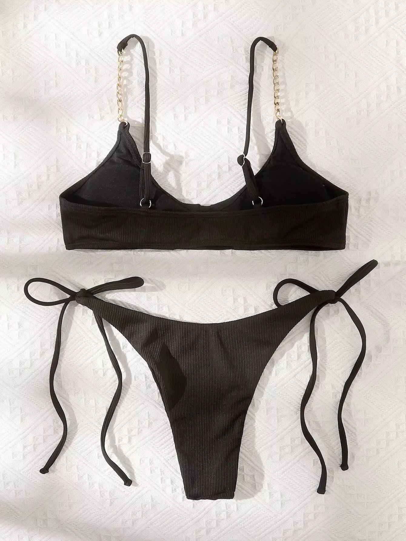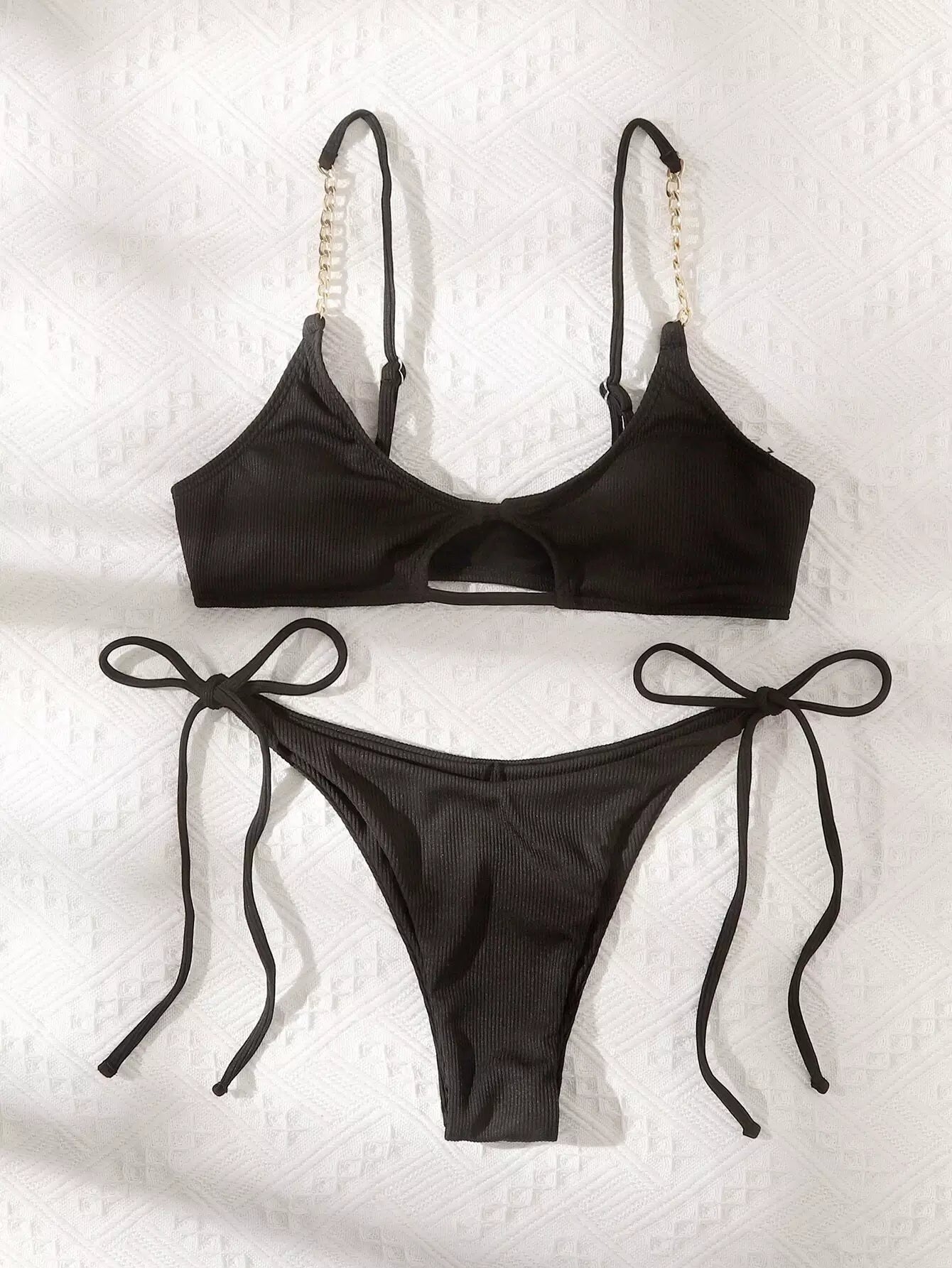 Cut-out Chain Strap Tie Side Bikini Swimsuit