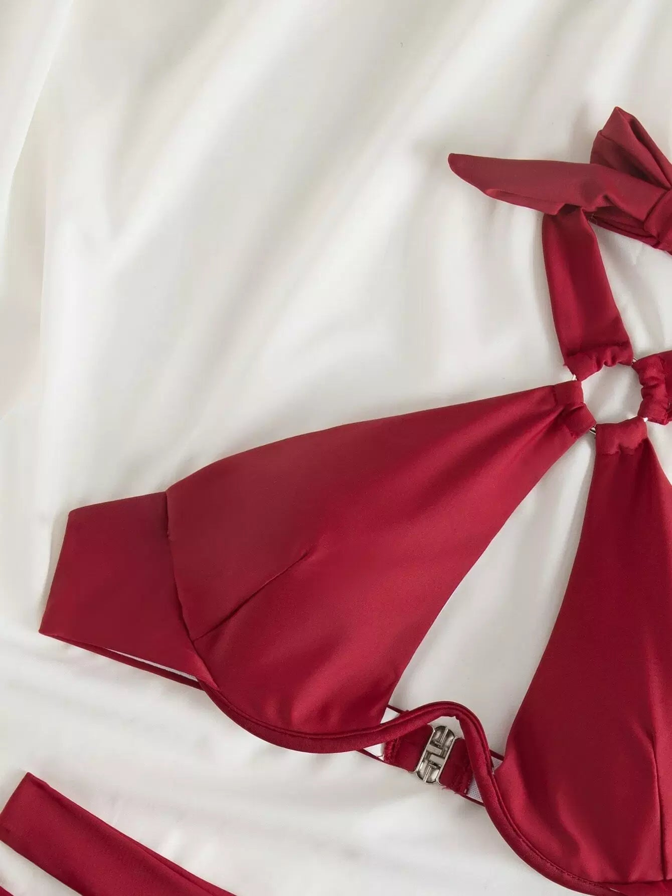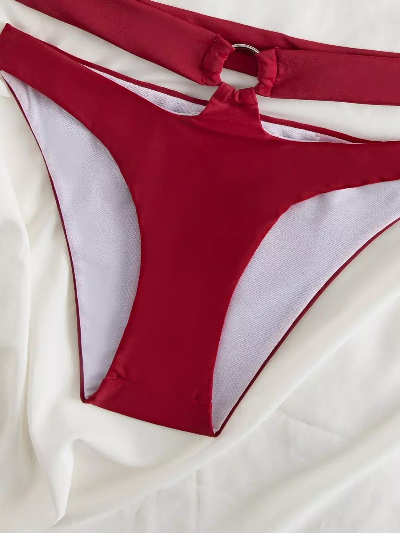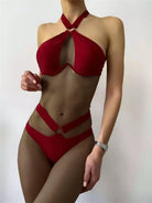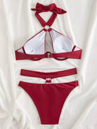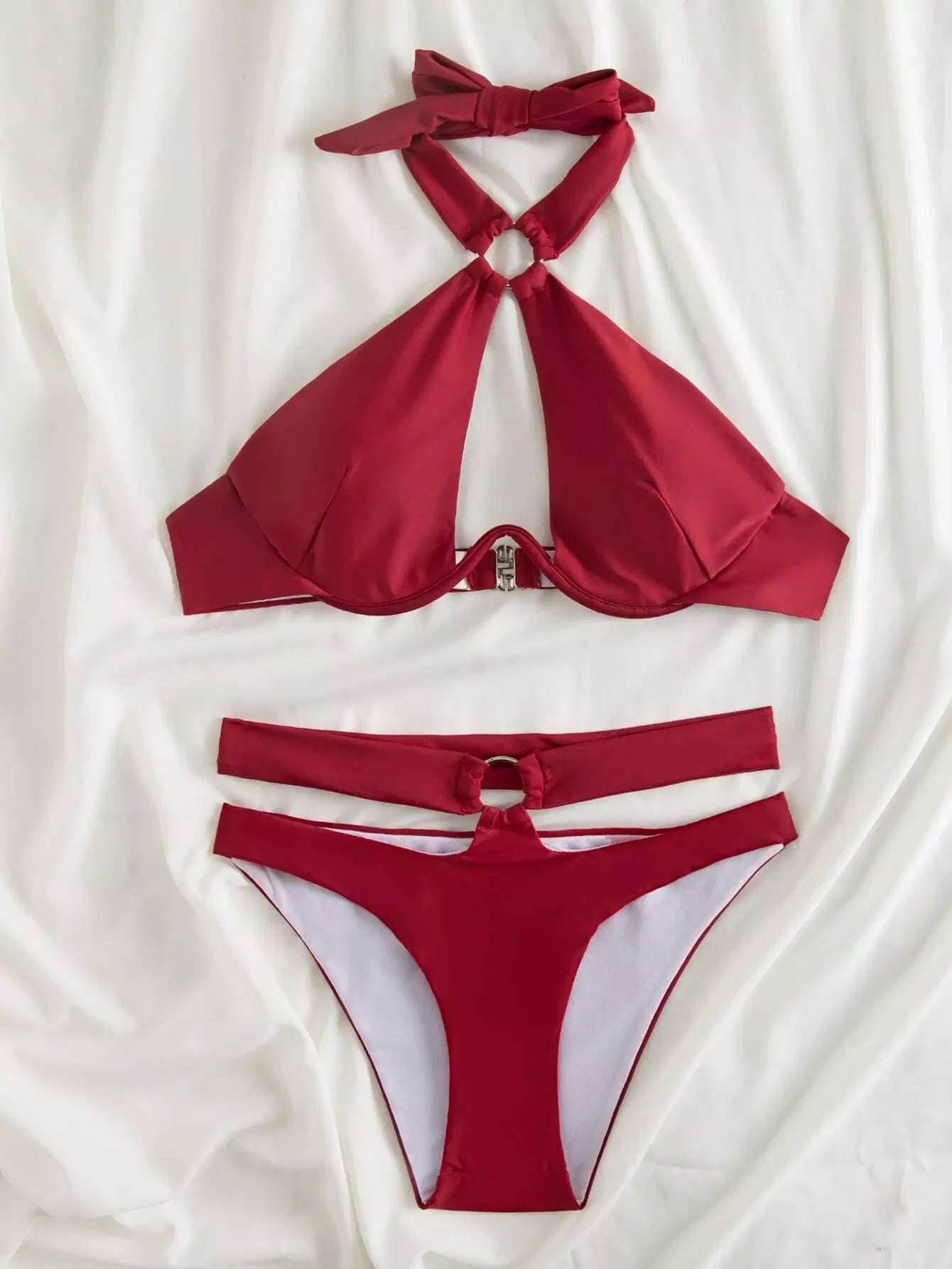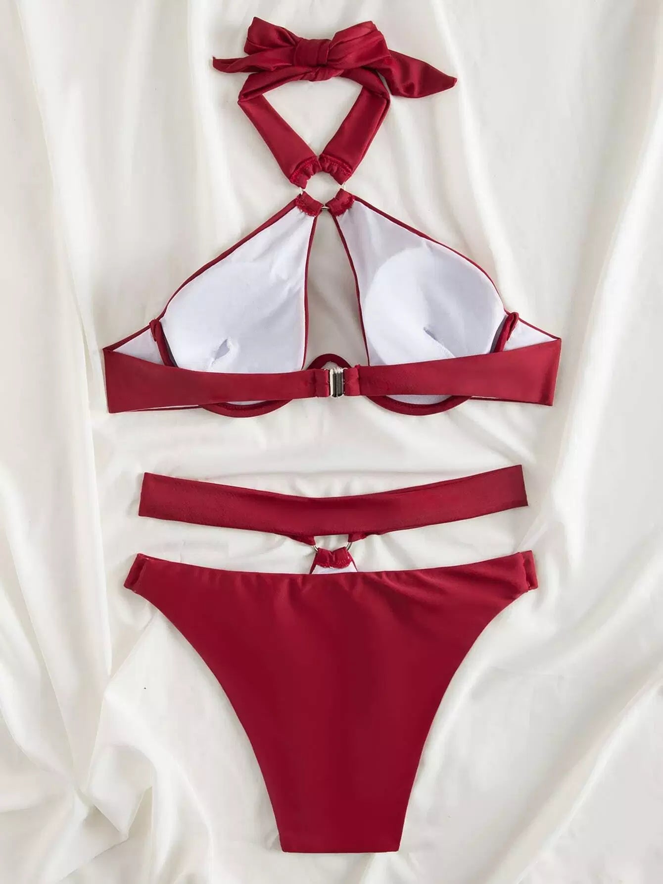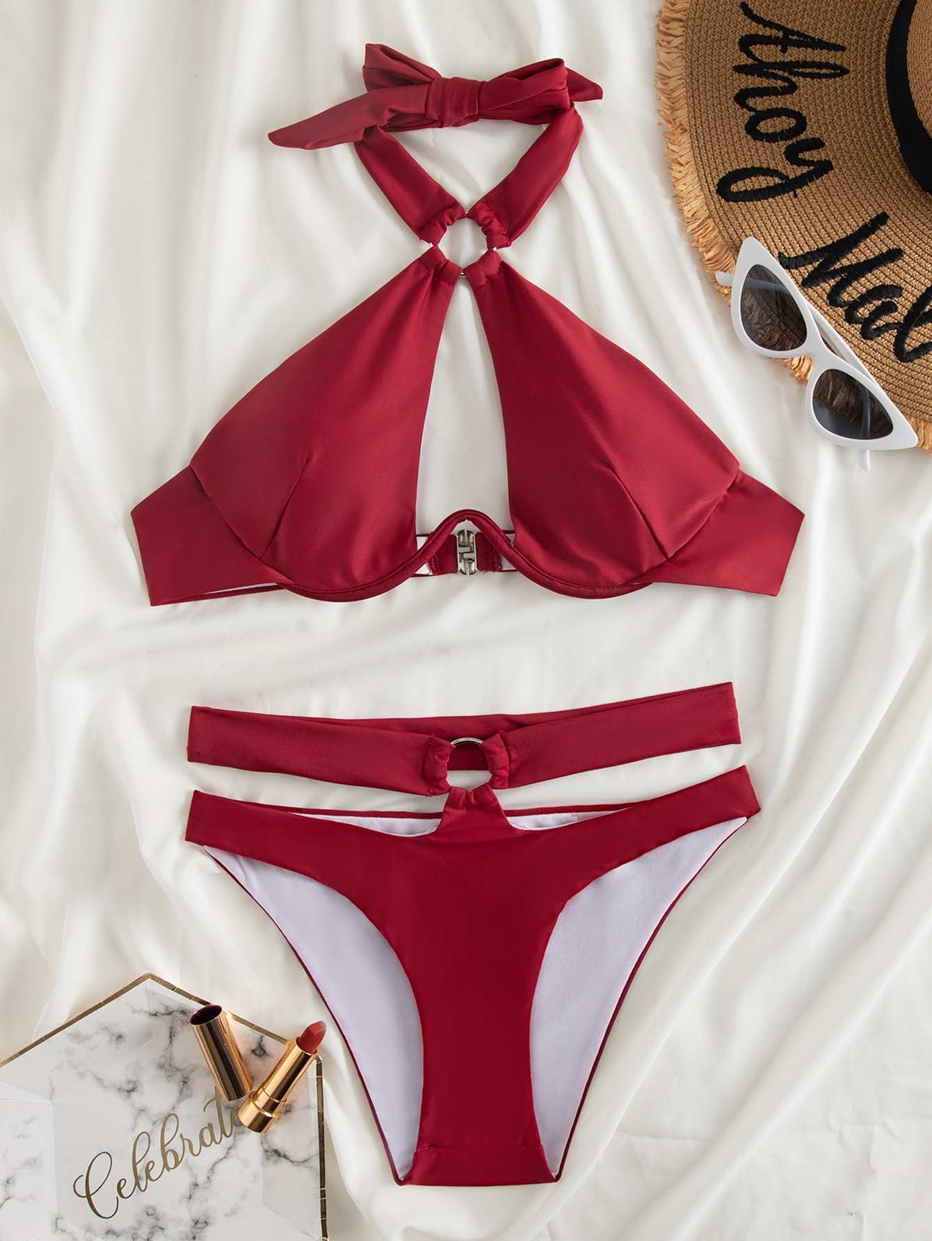 Cut-out Ring Linked Underwire Halter Bikini Swimsuit