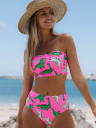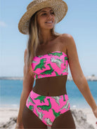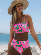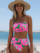 Dinosaur Print Bandeau High Waisted Bikini Swimsuit