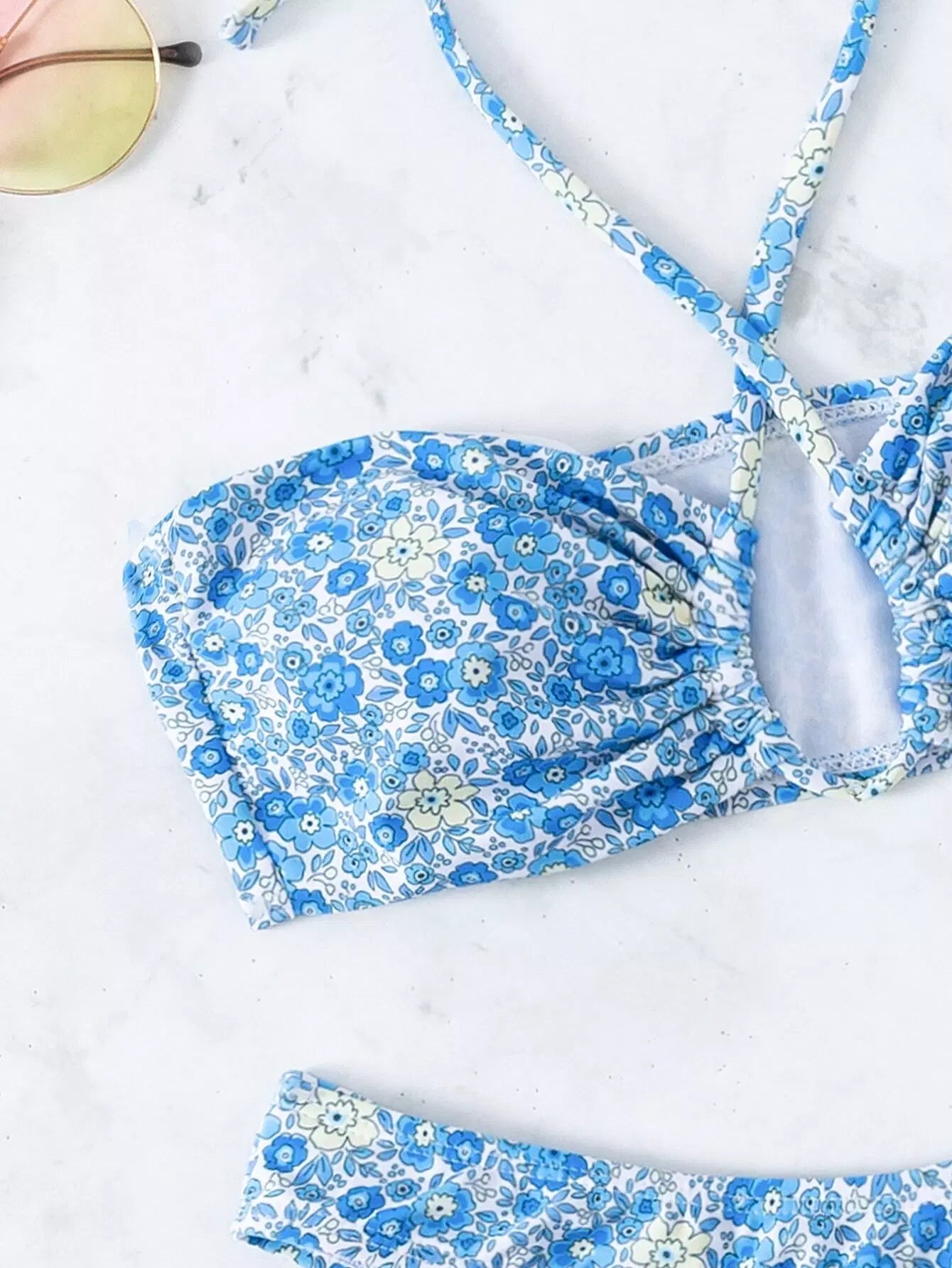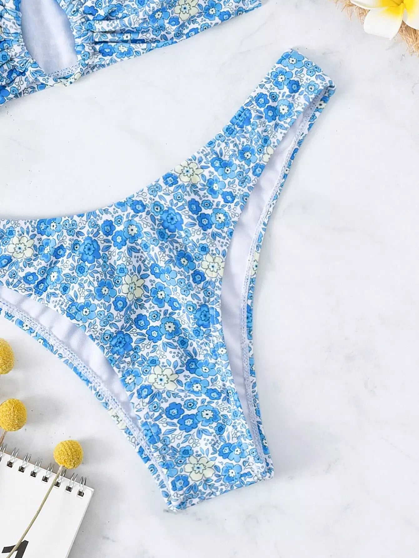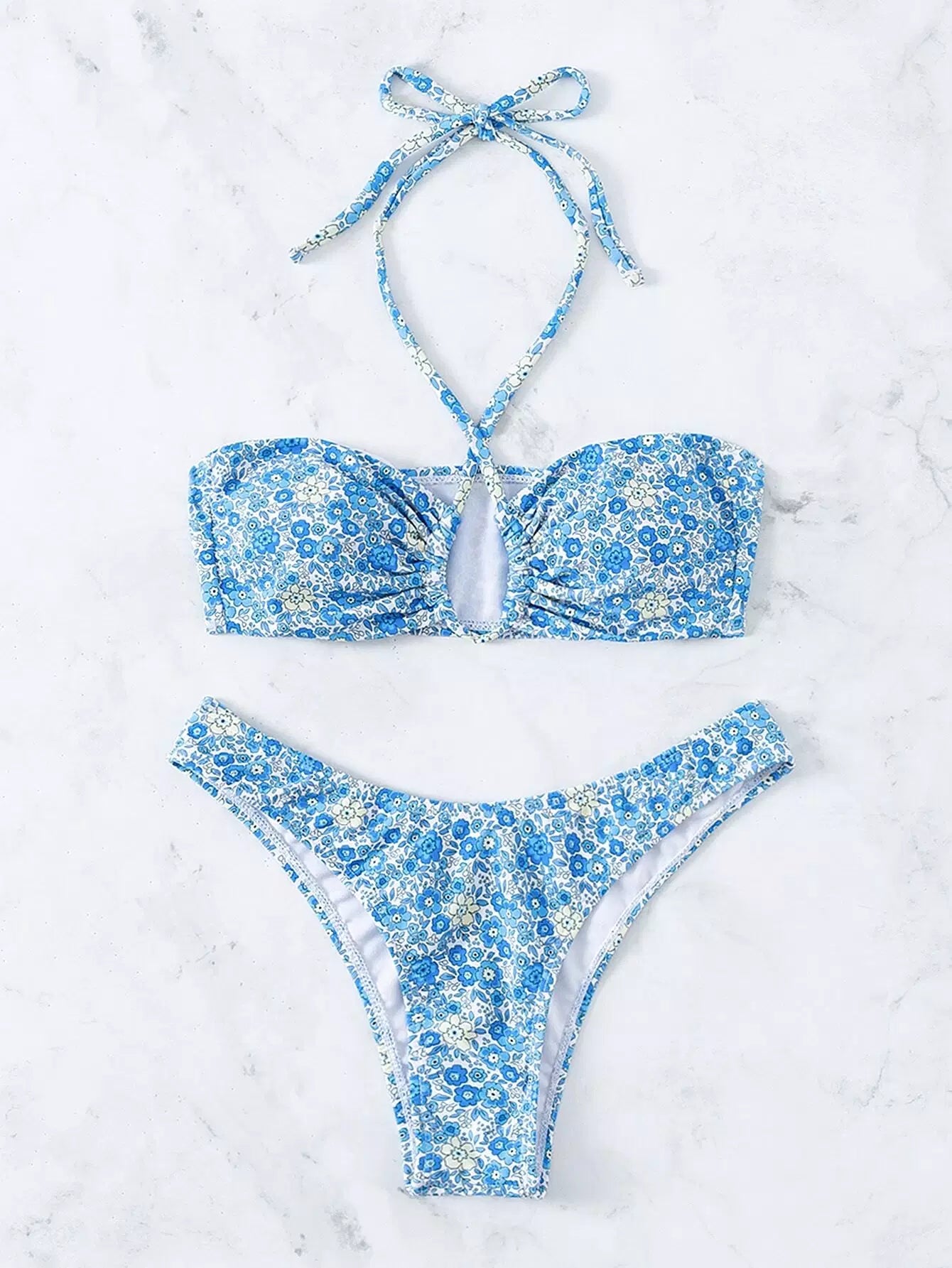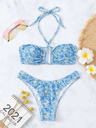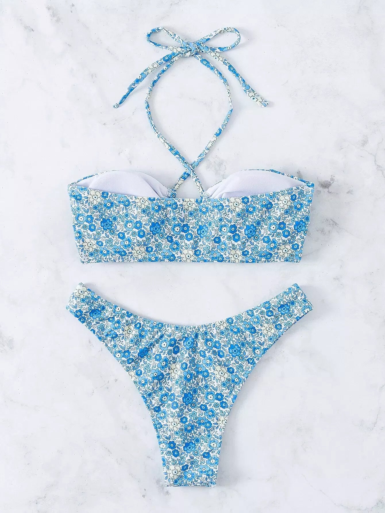 Ditsy Floral Criss Cross Halter Bikini Swimsuit