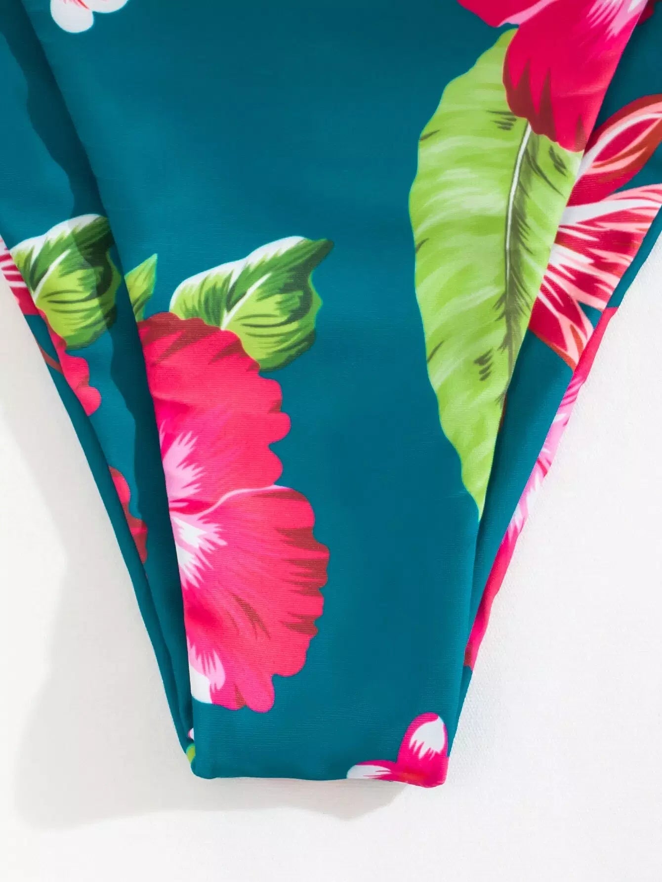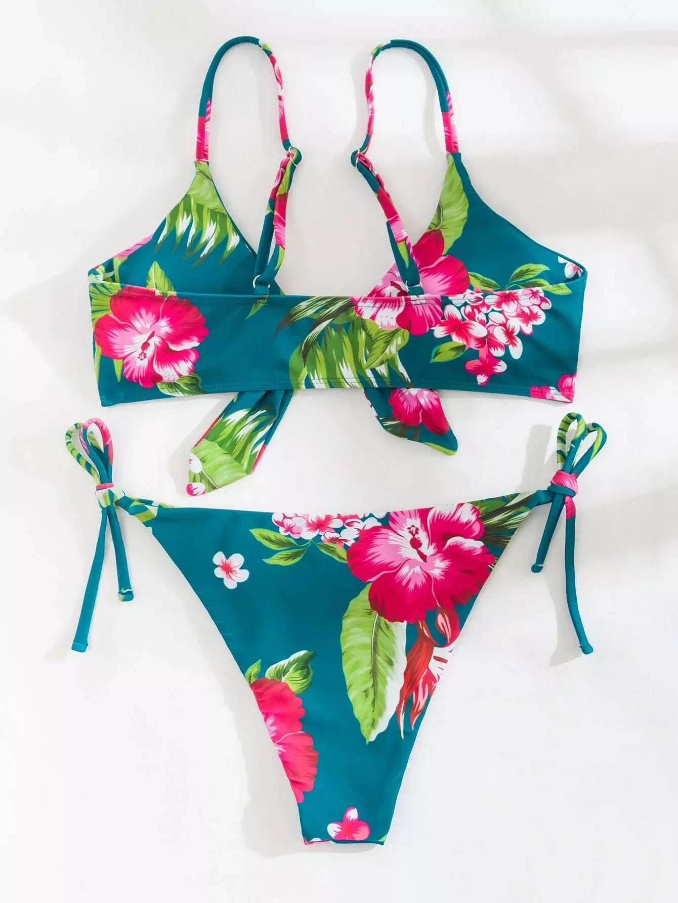 Women - Floral & Tropical Self Tie Bikini Swimsuit