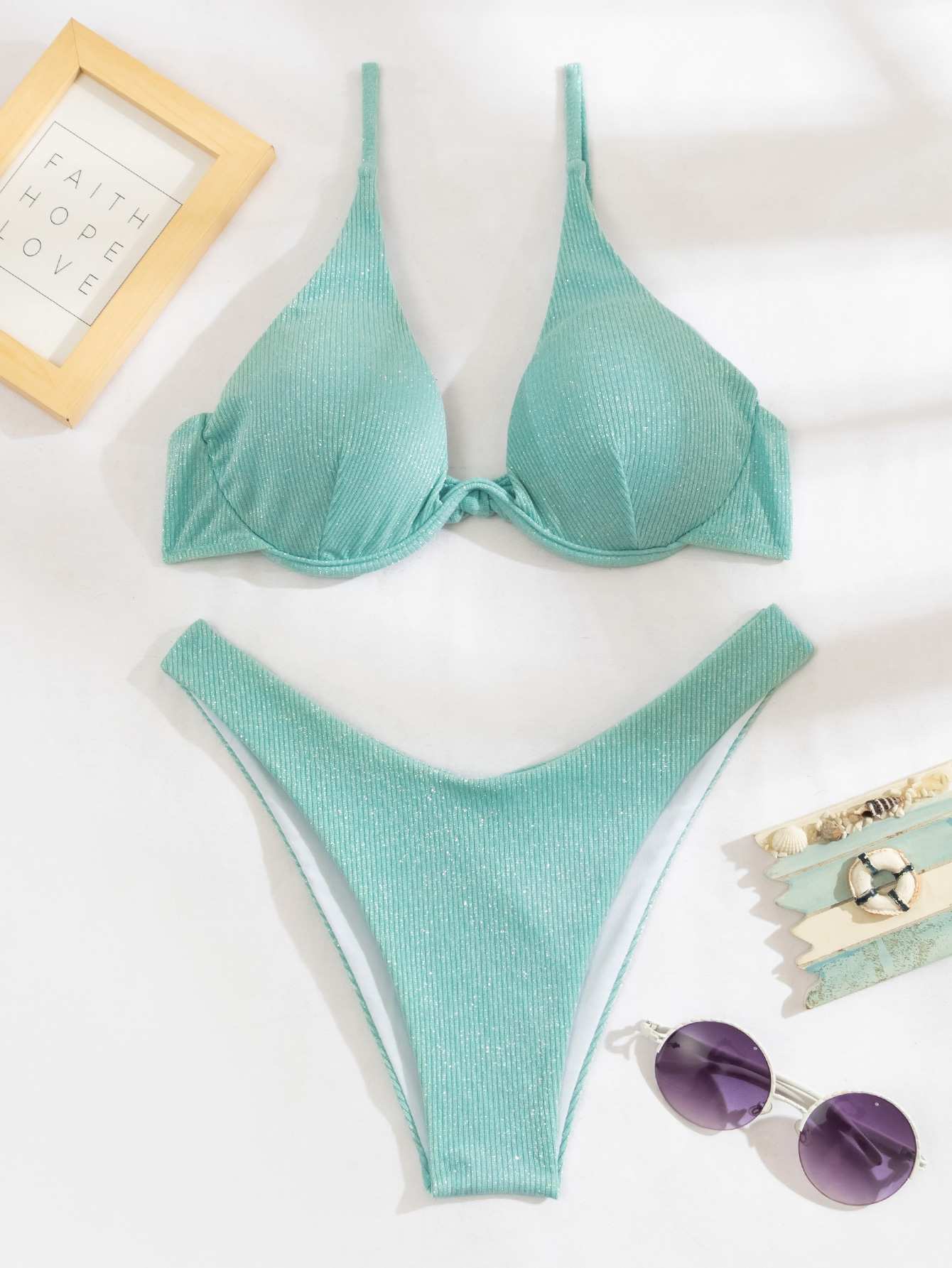 Glitter Underwire High Cut Bikini Swimsuit