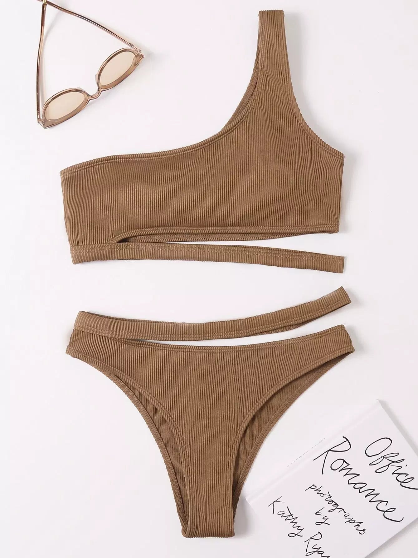 Women - One Shoulder Cut-out Bikini Swimsuit