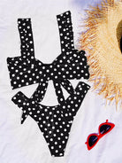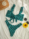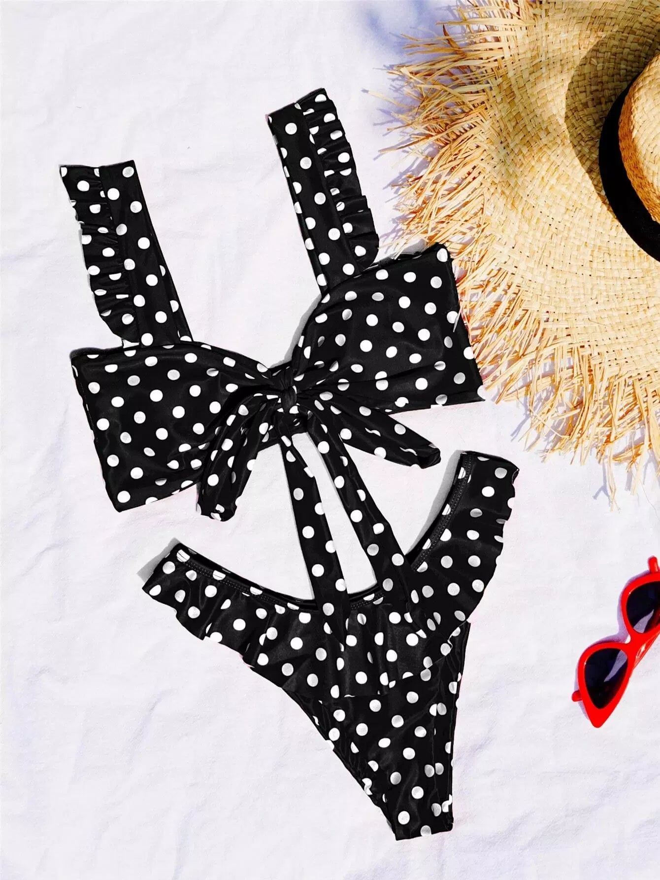 Polka Dot Ruffle Knot Front Bikini Swimsuit