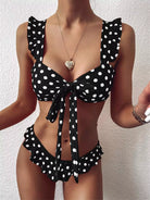 Women - Polka Dot Ruffle Knot Front Bikini Swimsuit