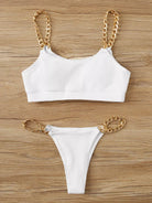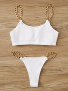 Rib-Knit Chain Detail Triangle Tanga Bikini Swimsuit