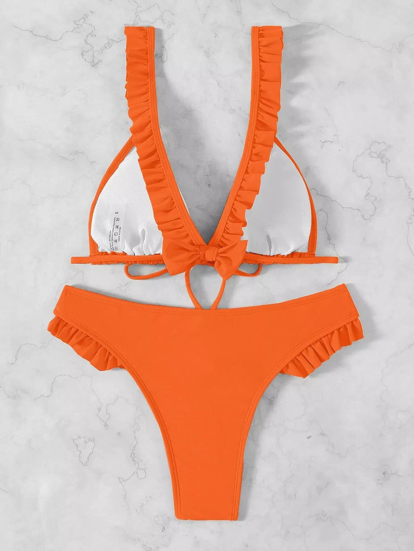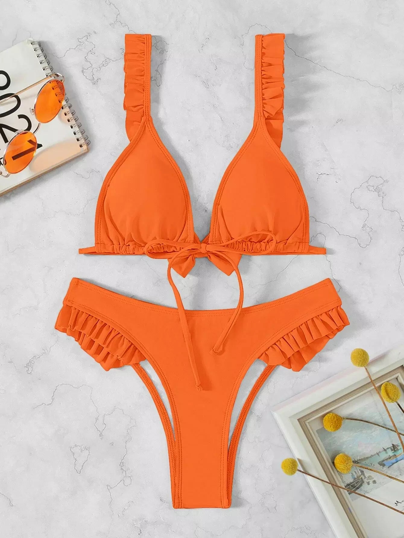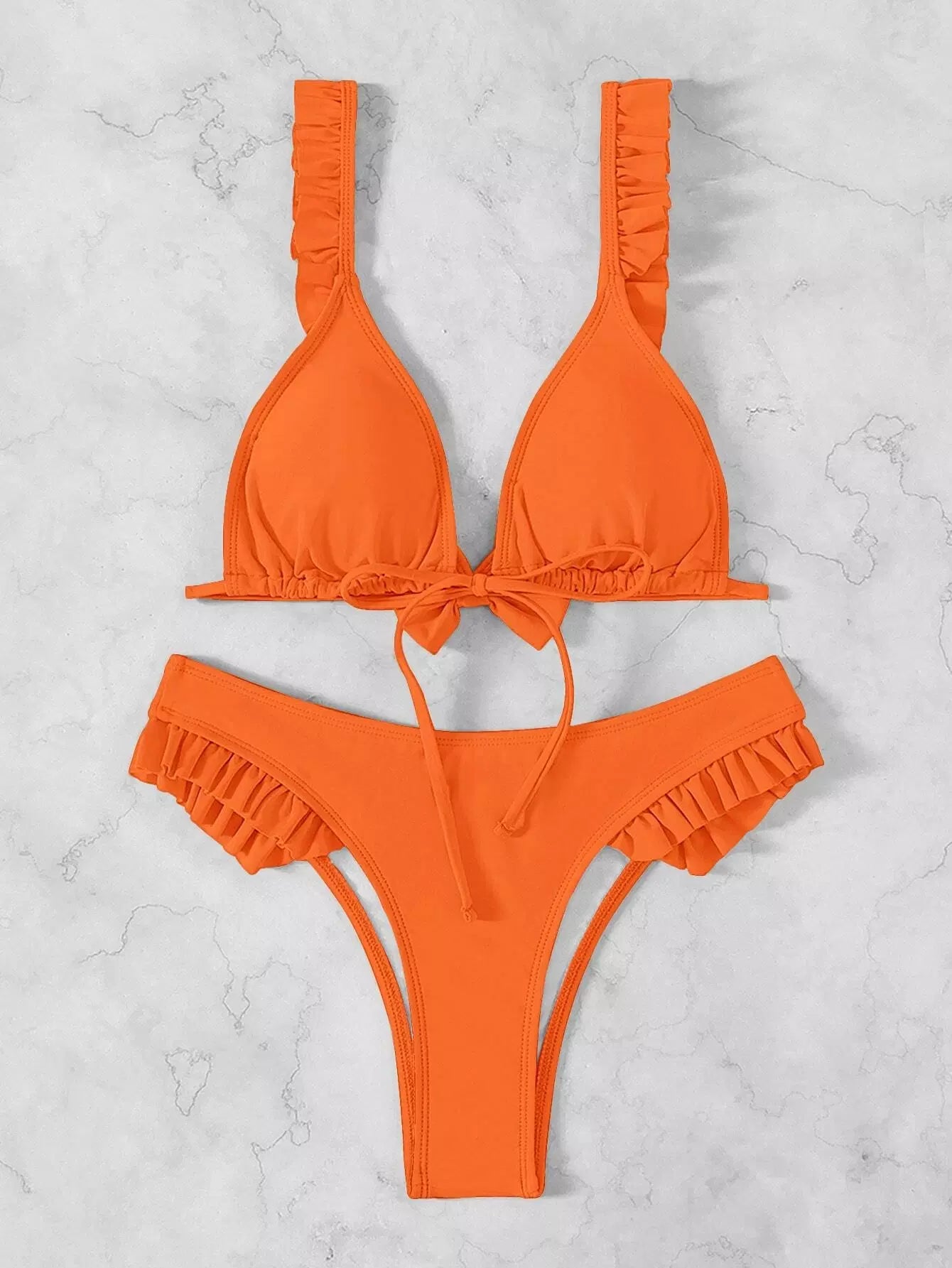 Ruffle Trim Tie Front Bikini Swimsuit