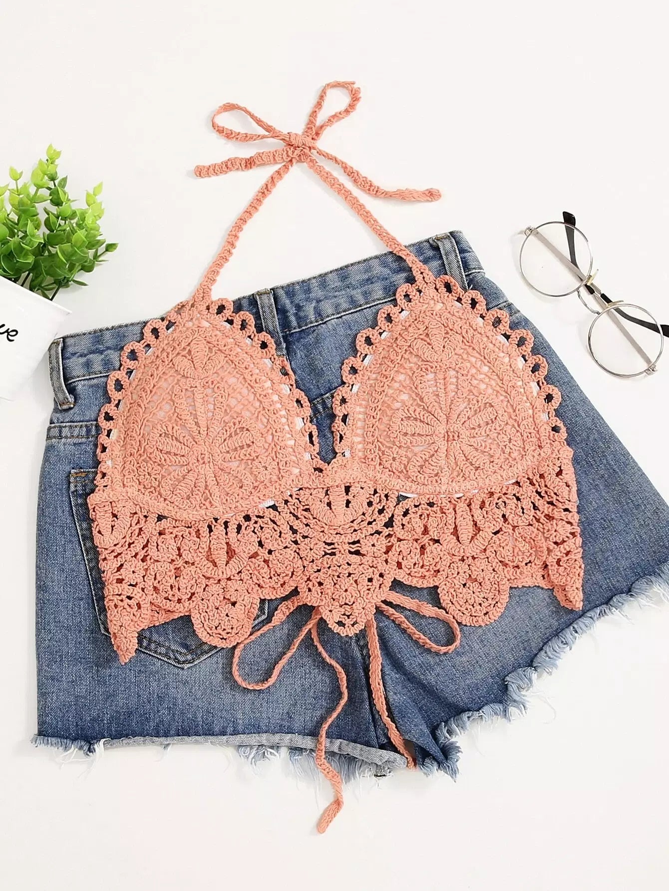 Tie Backless Crochet Halter Top